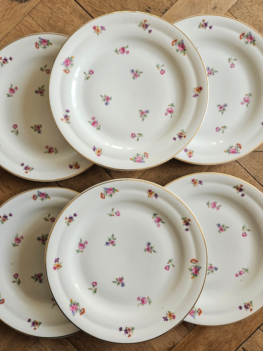 Assiettes plates vintage en porcelaine, petites fleurs