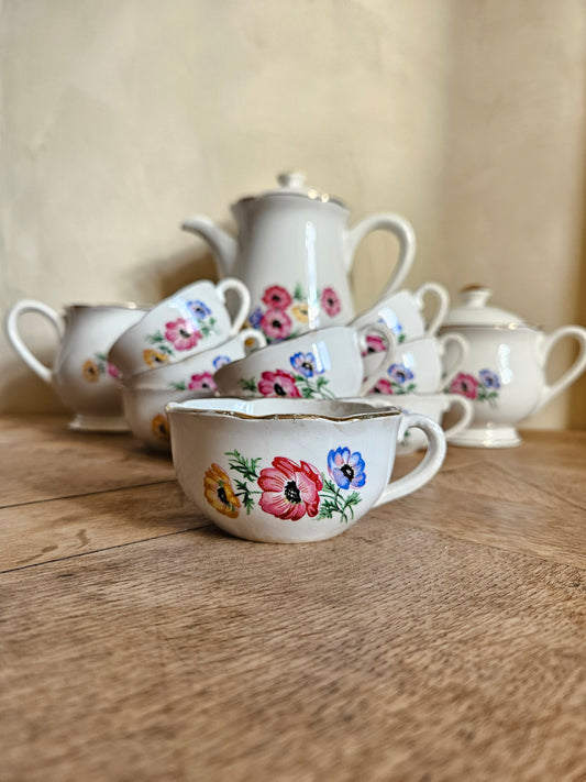 Service à café vintage, décor fleuri