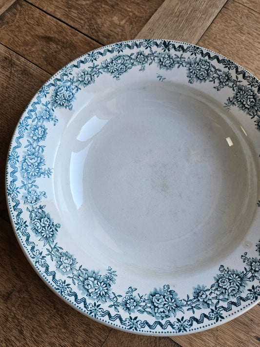 Assiettes creuses dépareillées, mint et fleurs