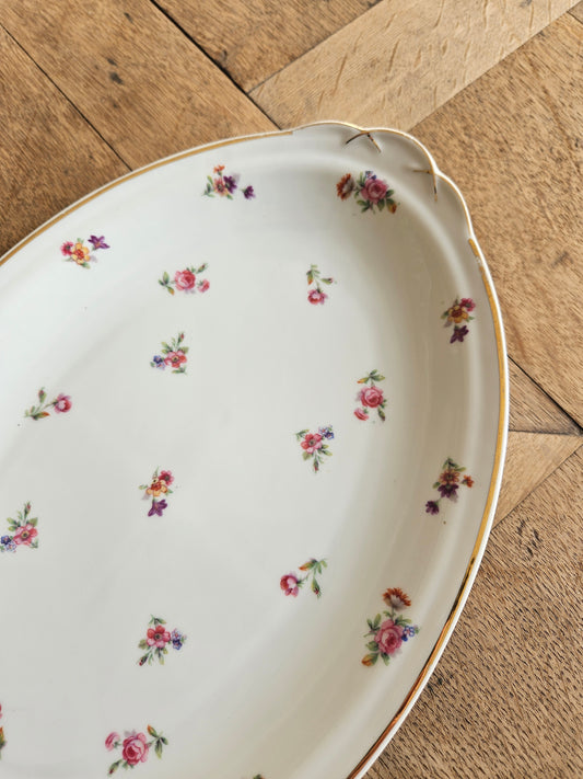 Plat ovale vintage en porcelaine, petites fleurs