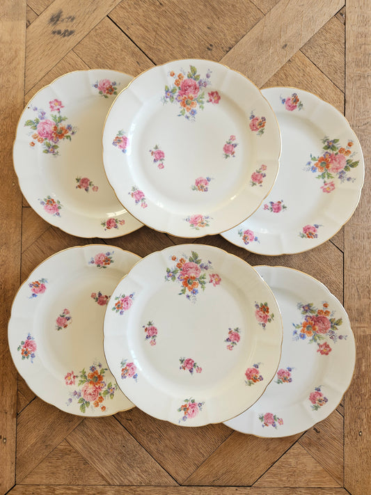 Assiettes plates vintage en porcelaine, bouquets de fleurs