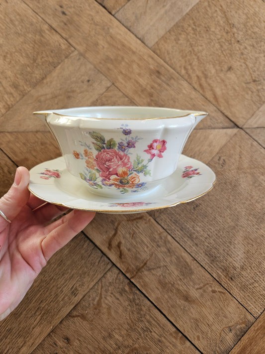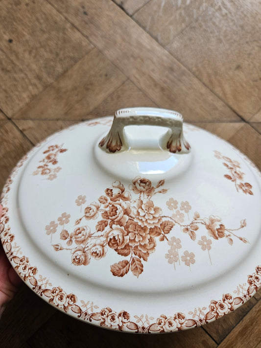 Légumier vintage en porcelaine, bouquets de fleurs