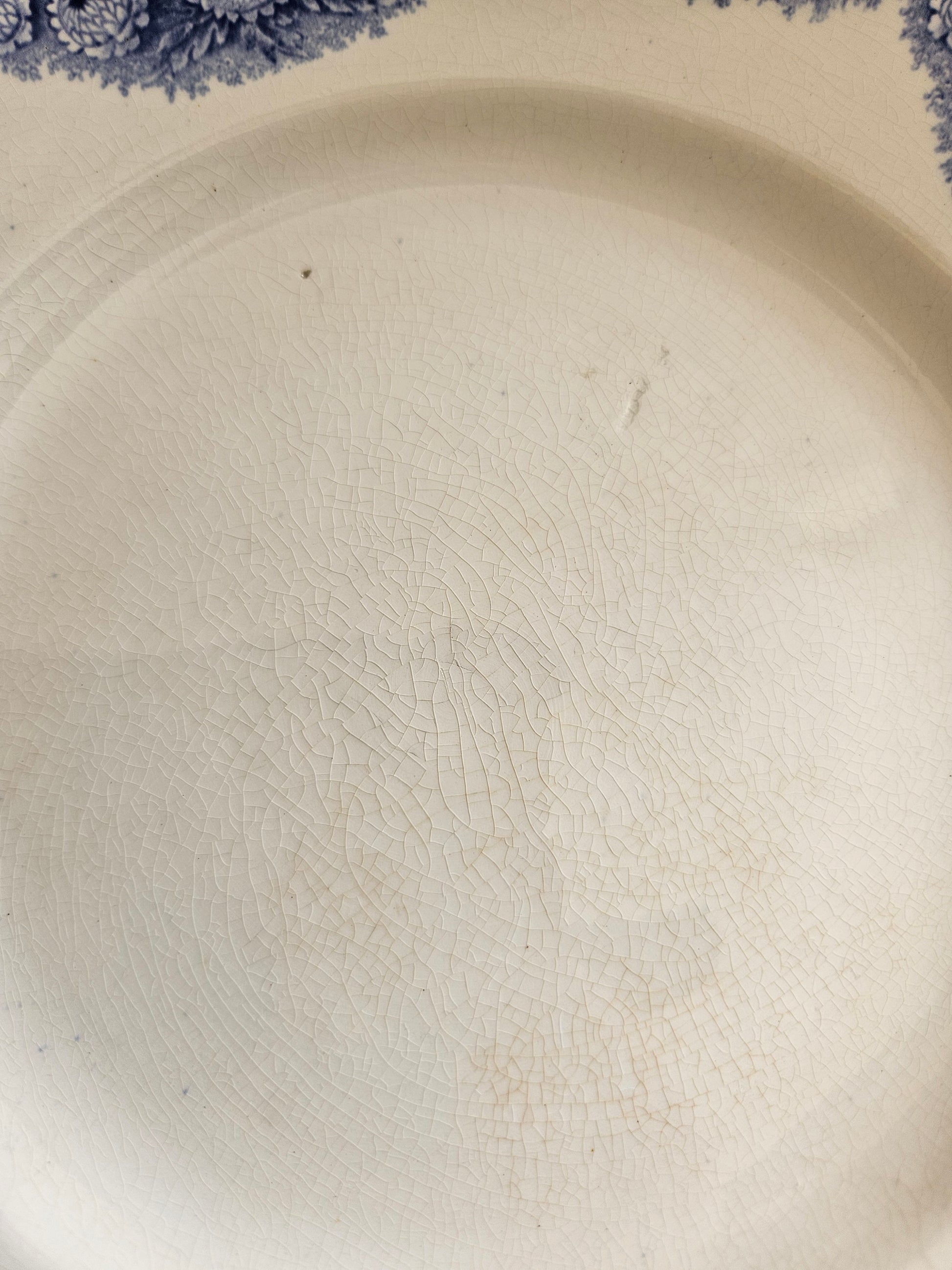 Terre de fer. Décor fleuri bleu.