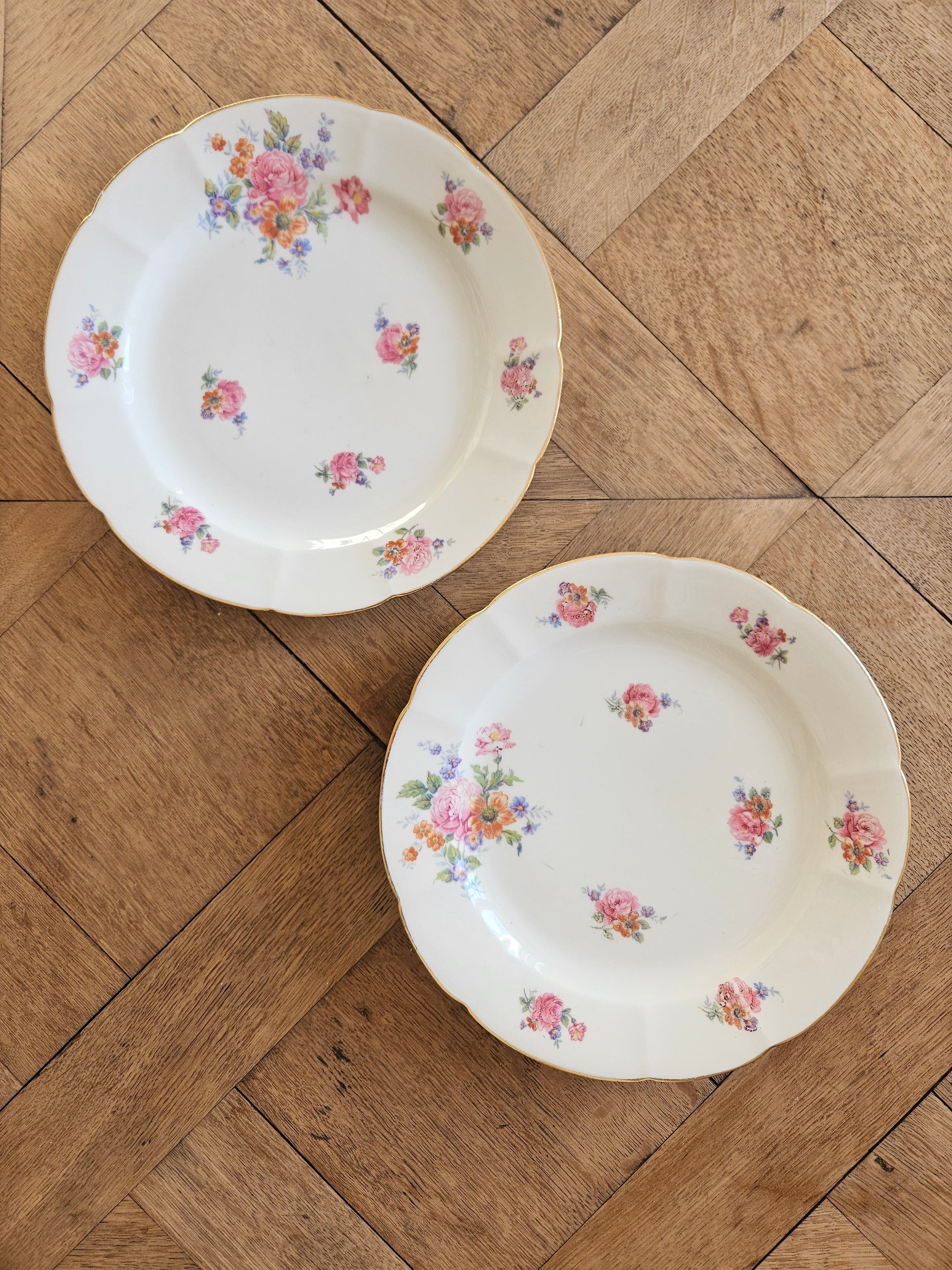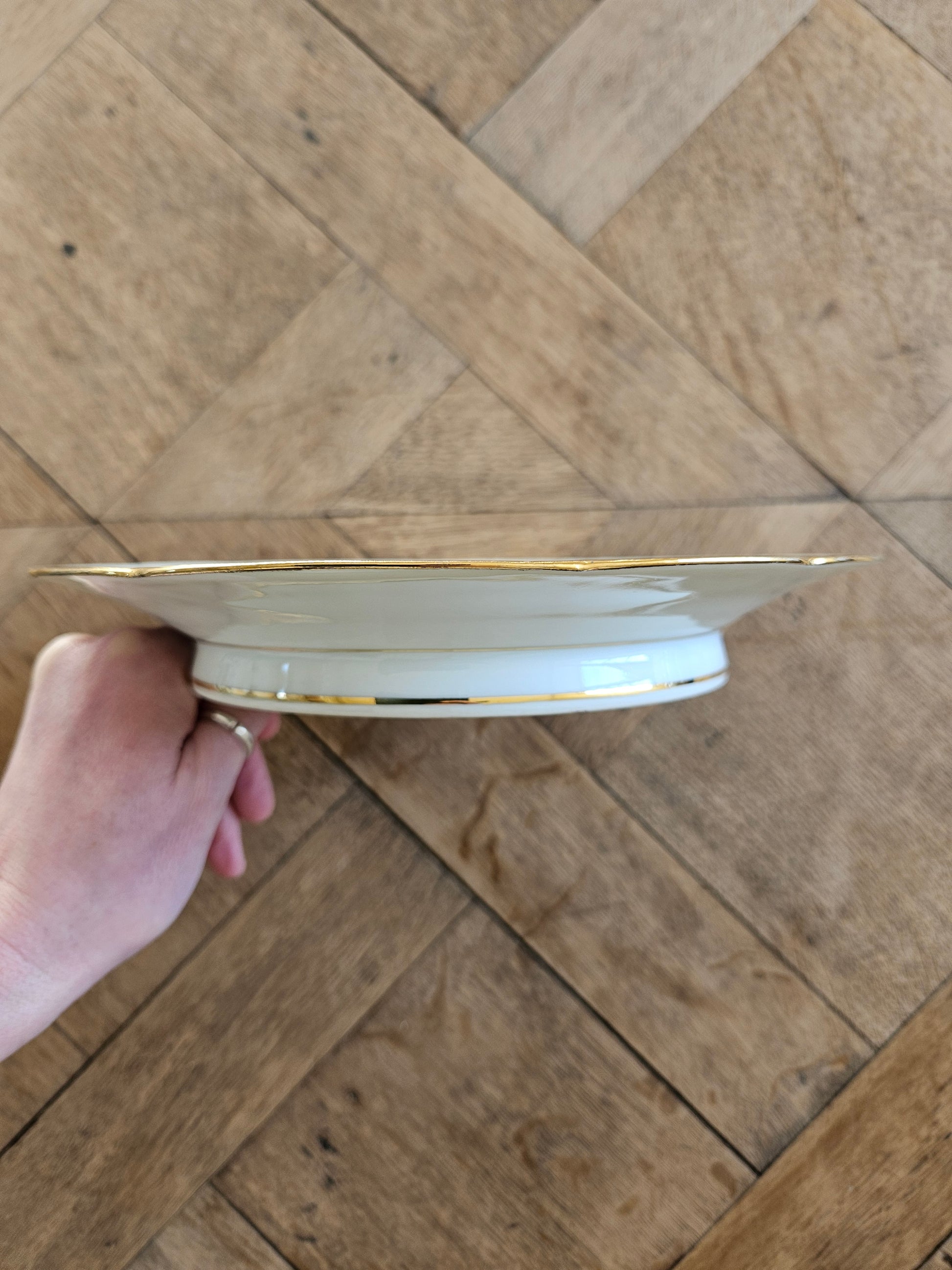 Assiette sur pied vintage en porcelaine, bouquets de fleurs