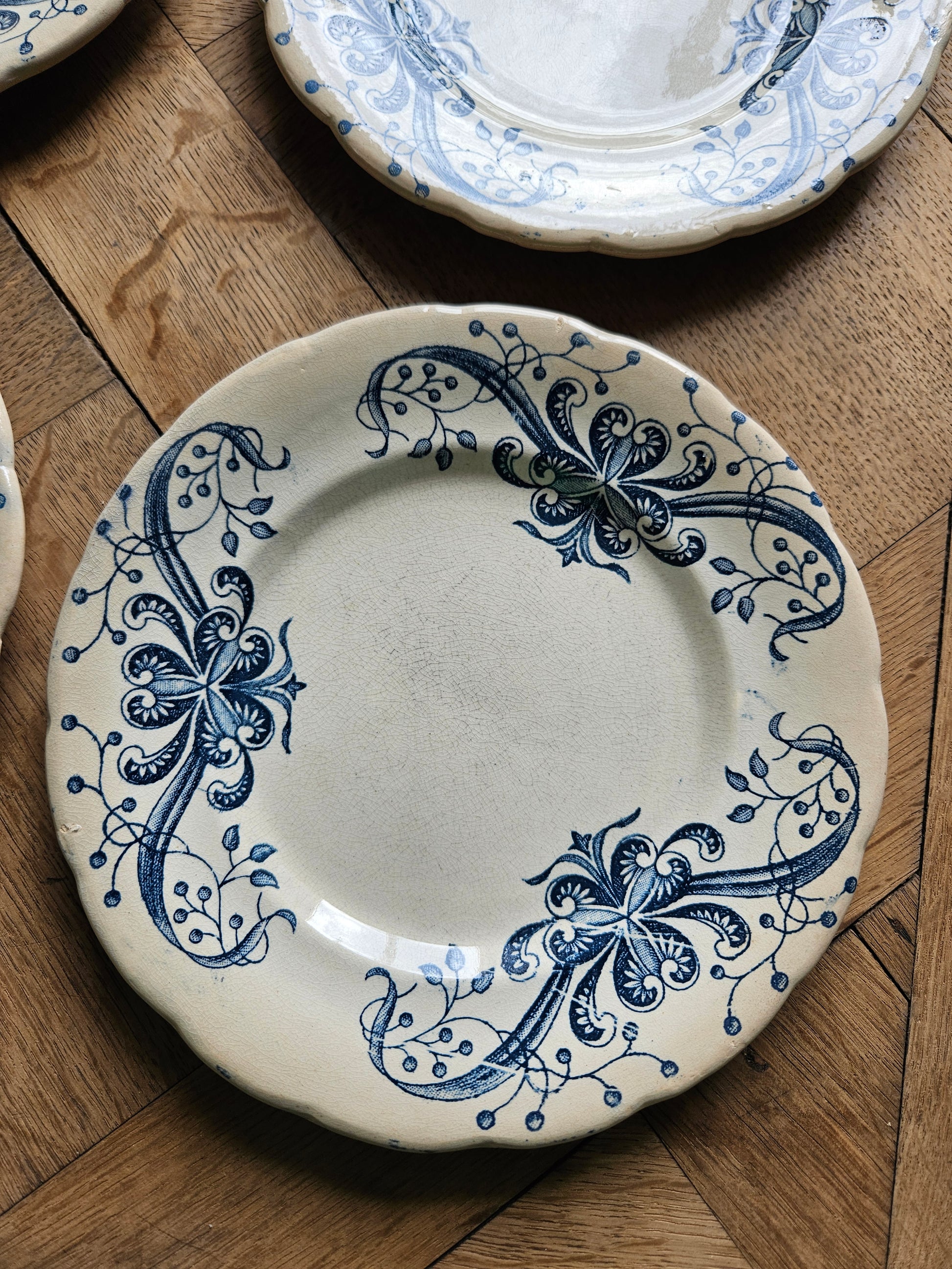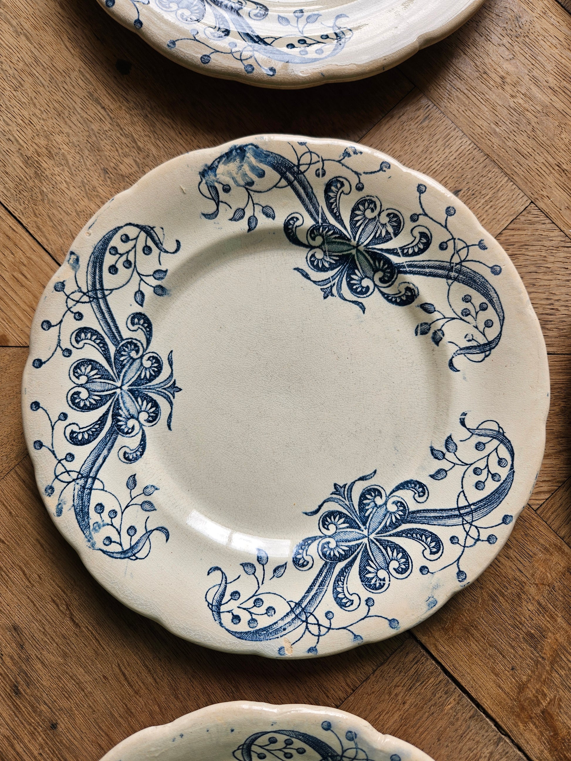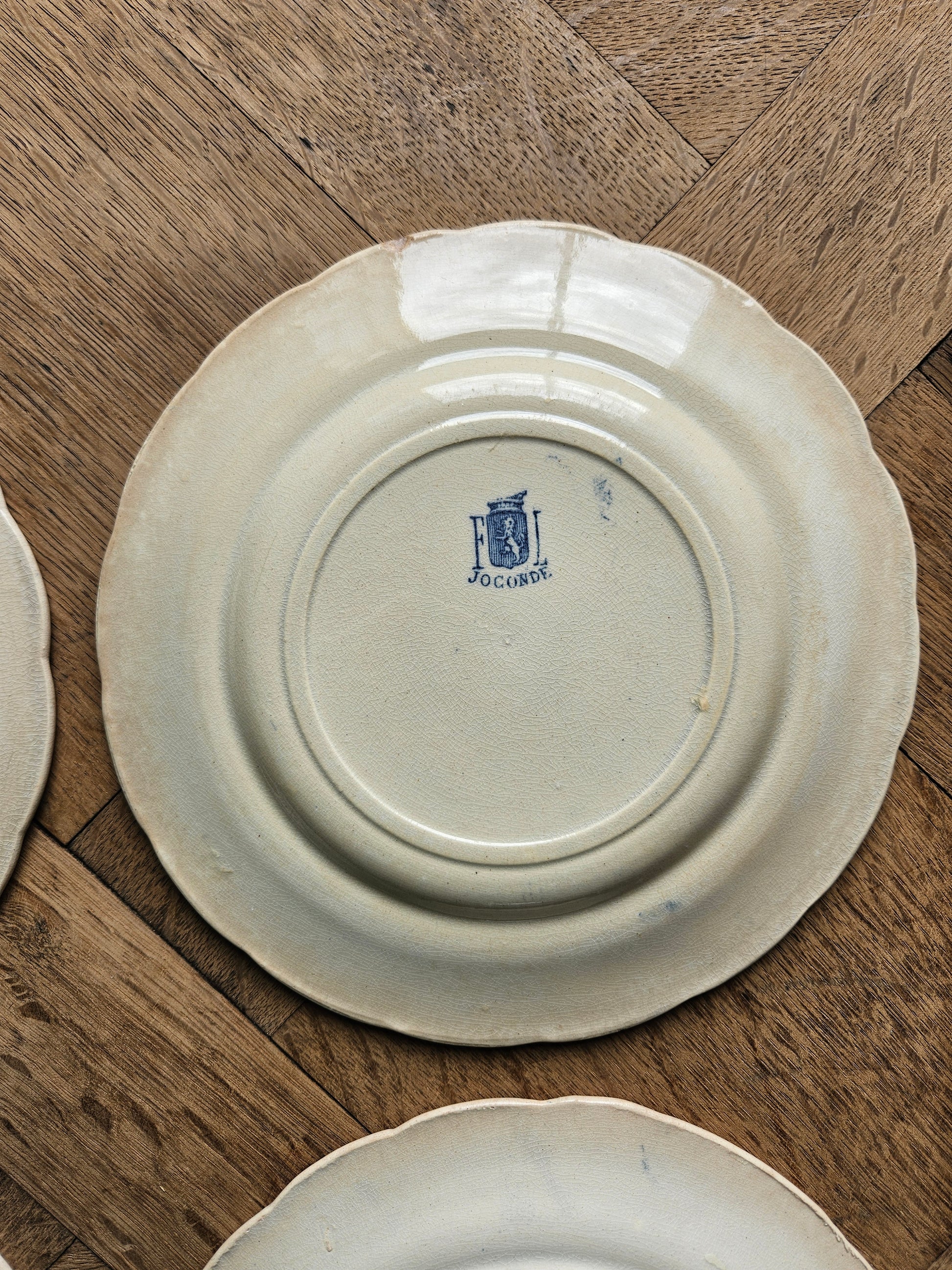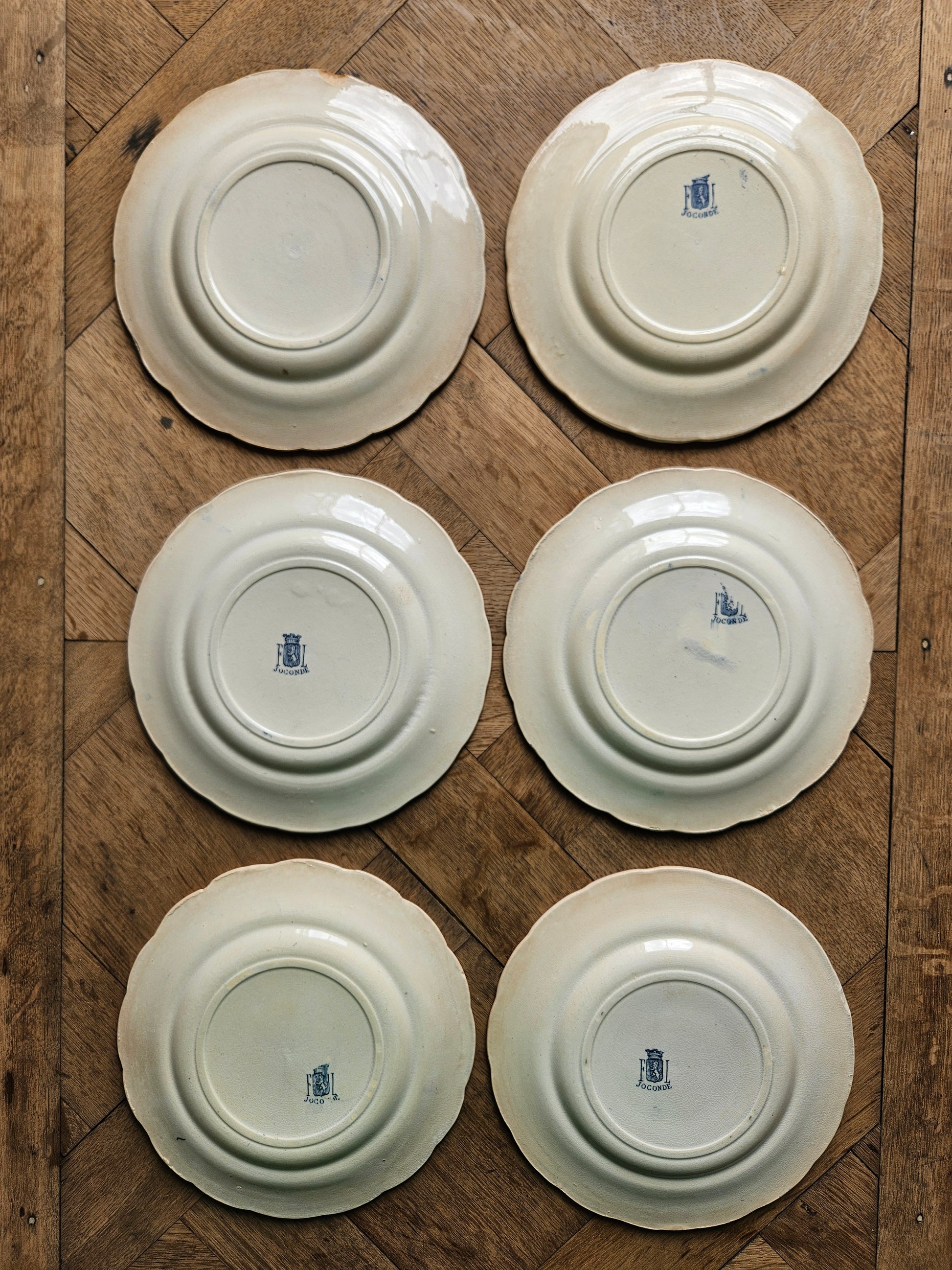 Lot de 6 assiettes à dessert anciennes de la Faïencerie de Lyon, modèle Joconde.