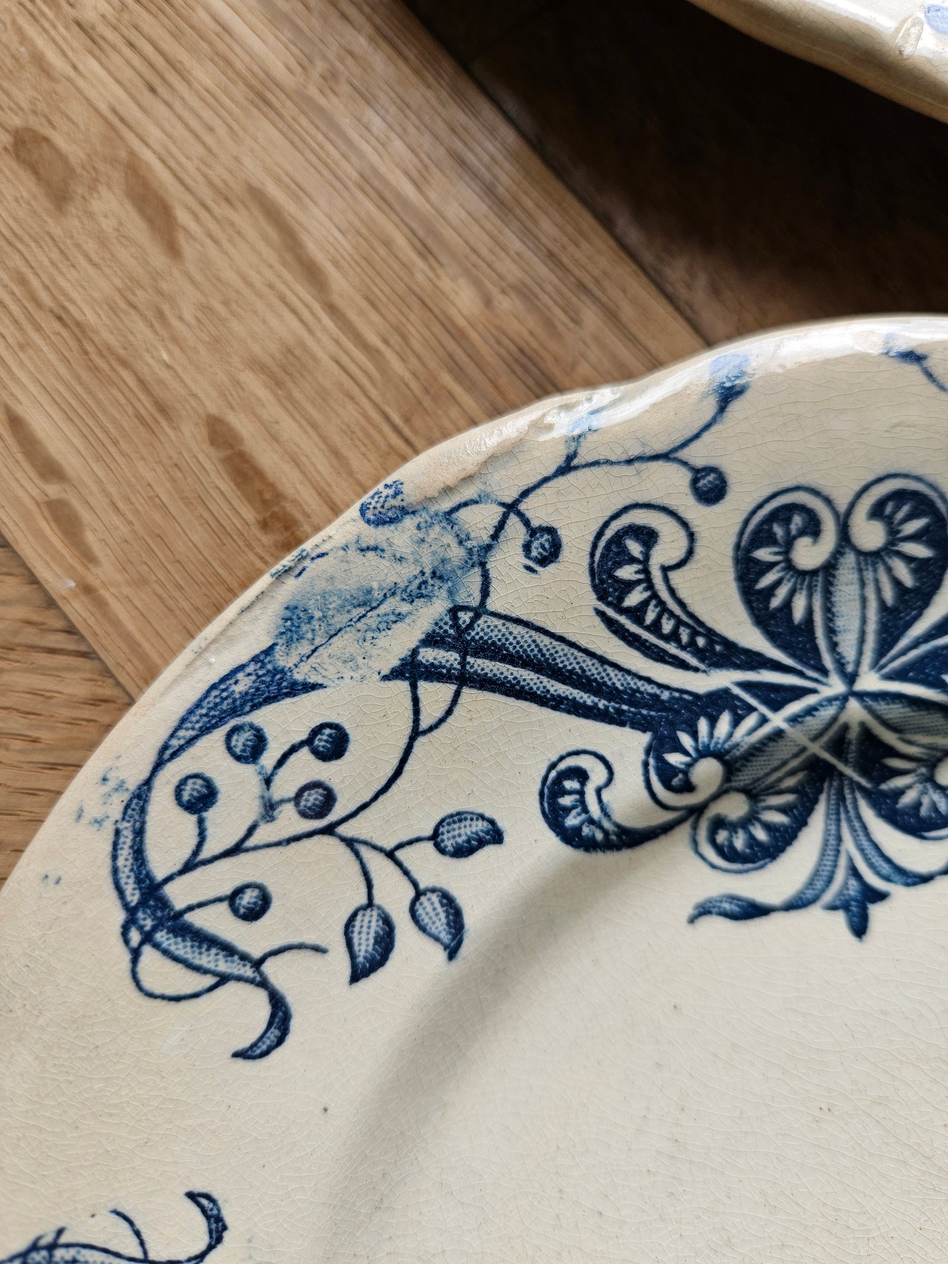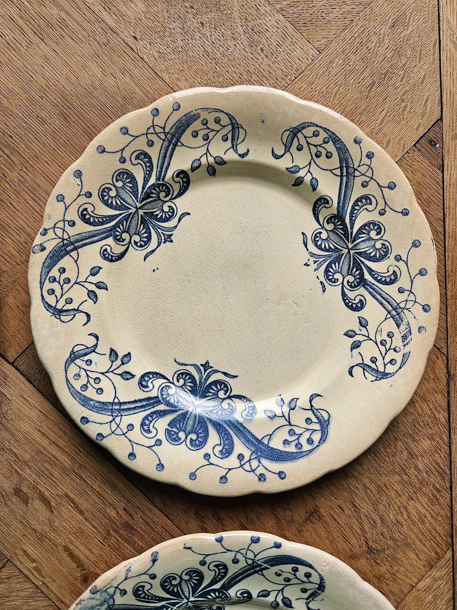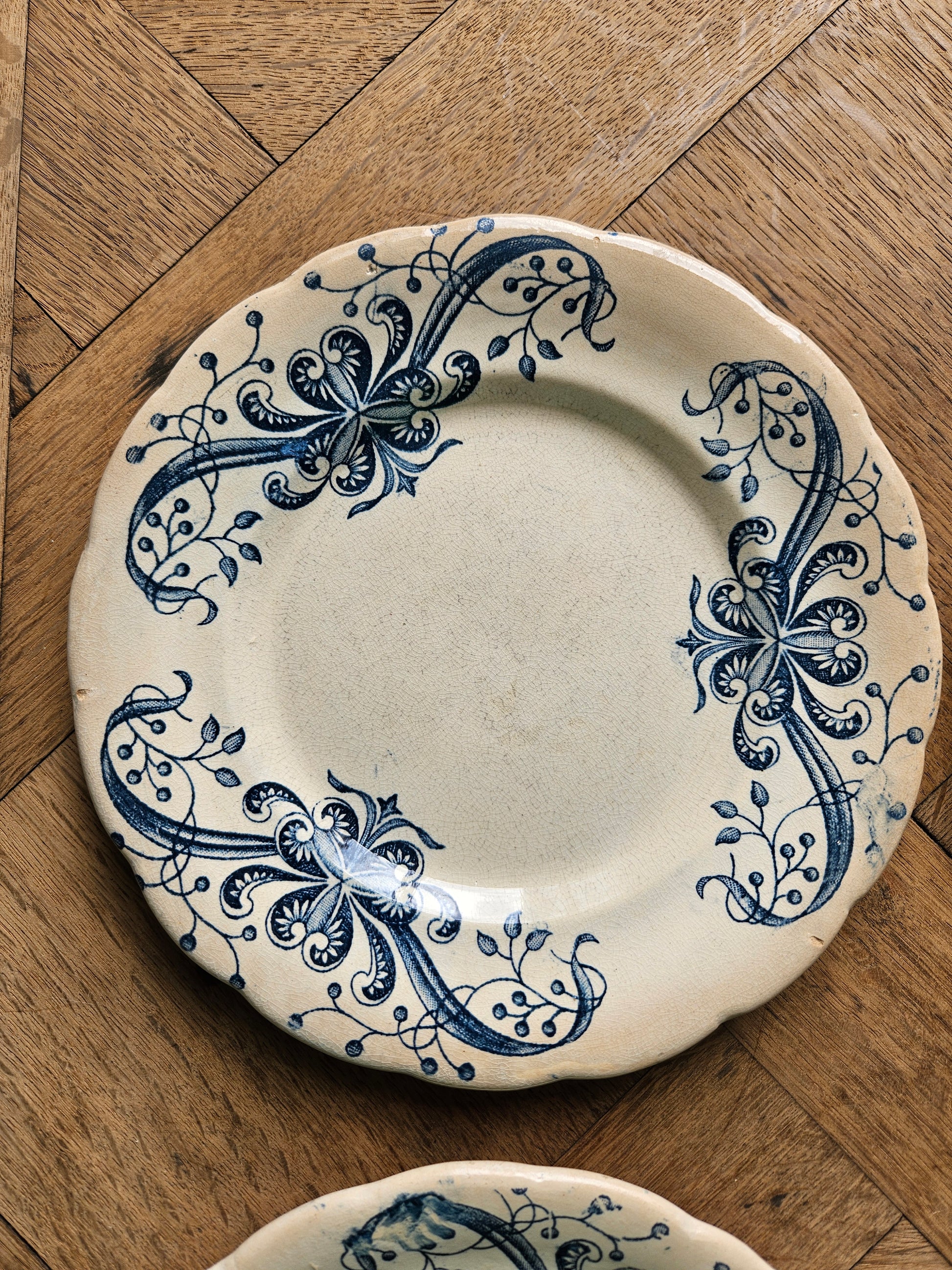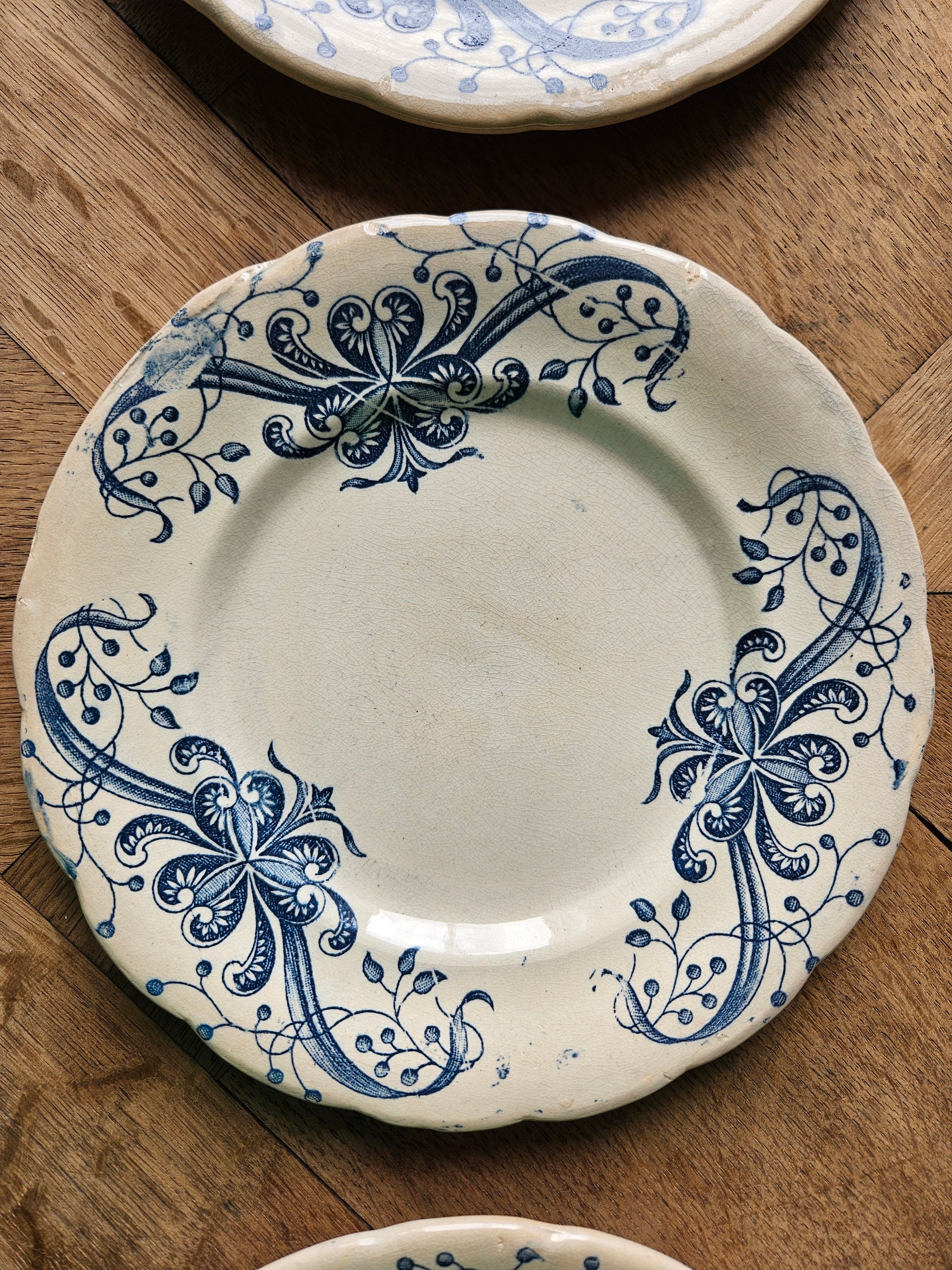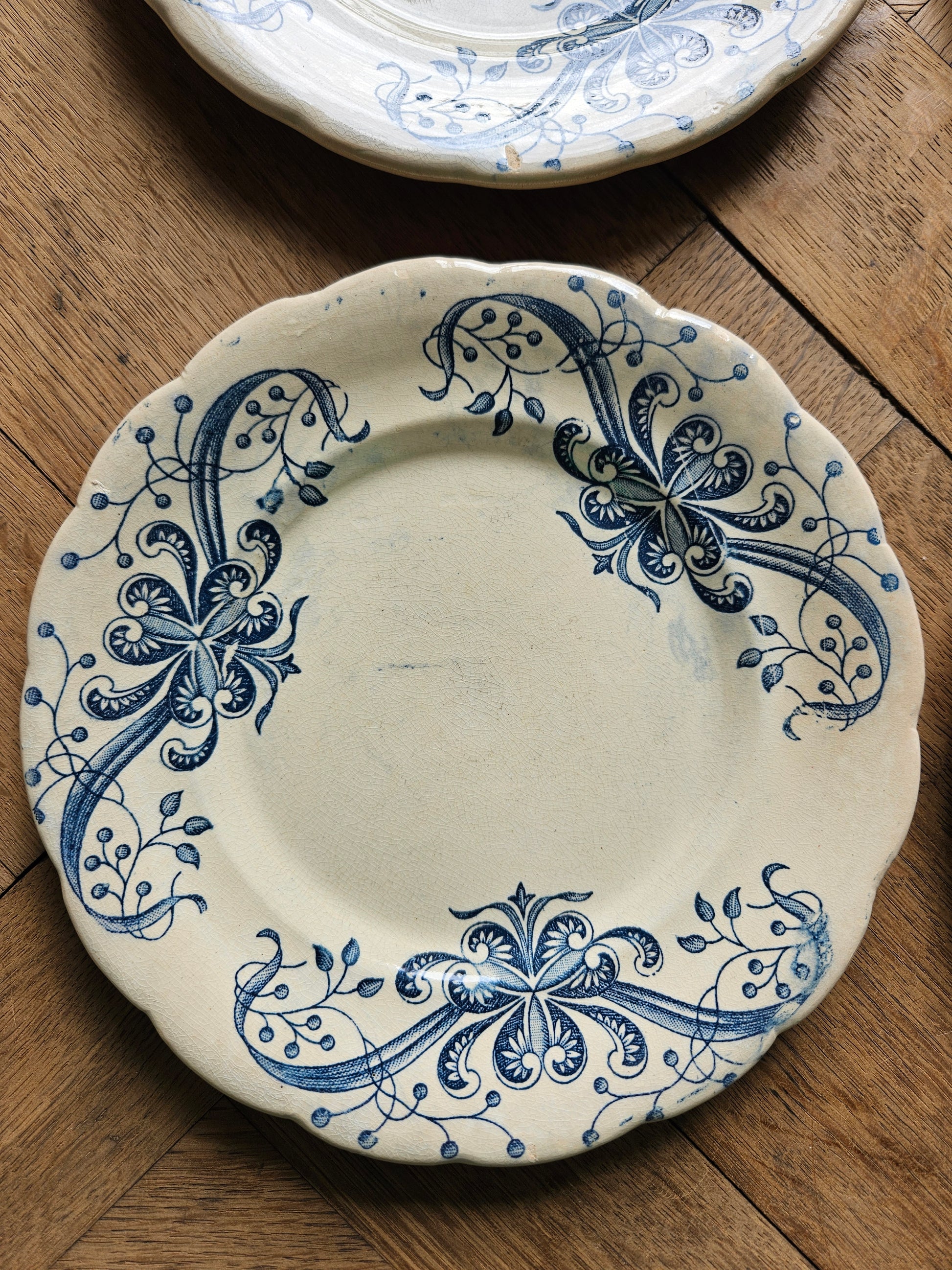 Lot de 6 assiettes à dessert anciennes de la Faïencerie de Lyon, modèle Joconde.