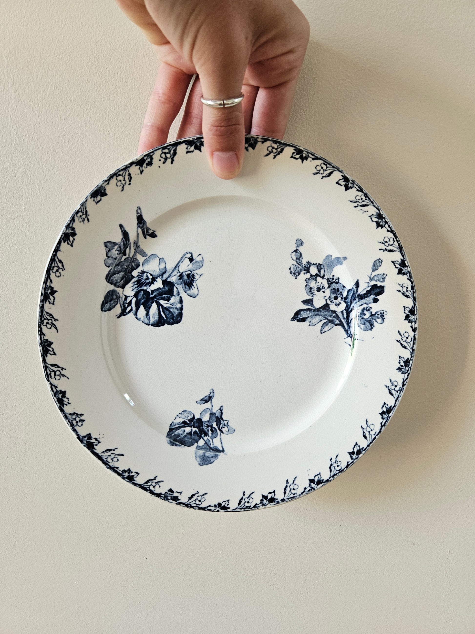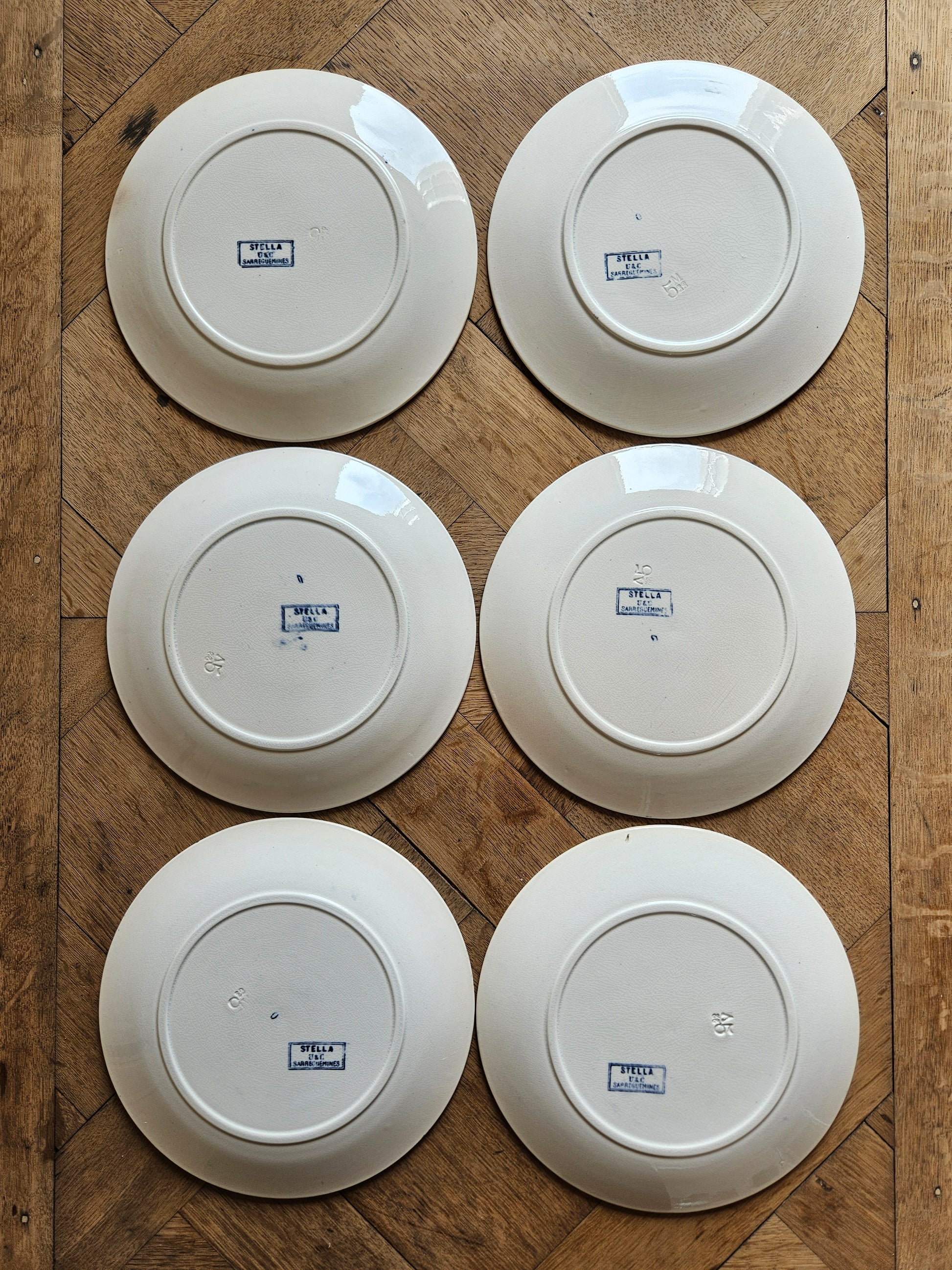 Lot de 6 assiettes à dessert anciennes U&C Sarreguemines, modèle Stella.