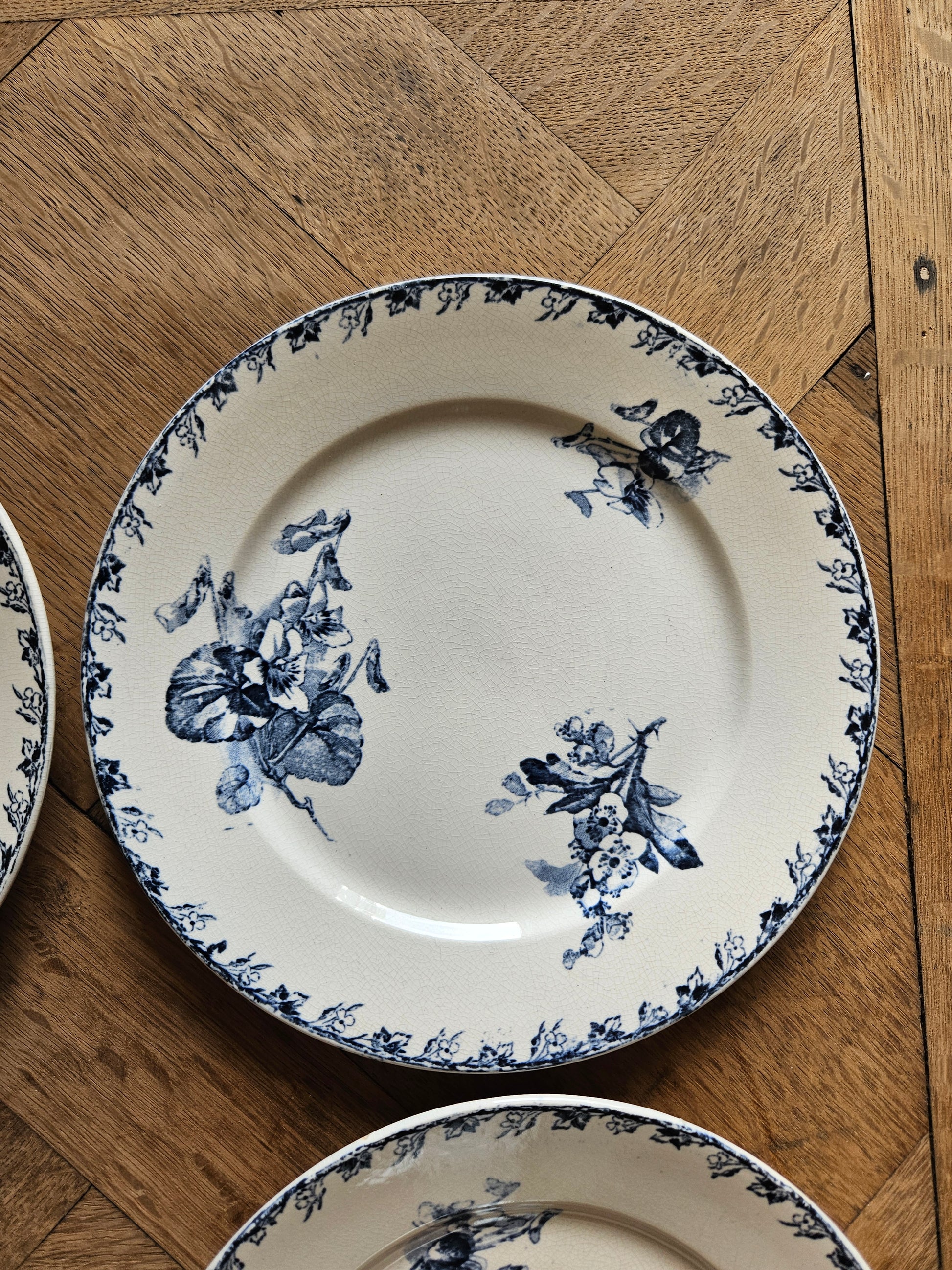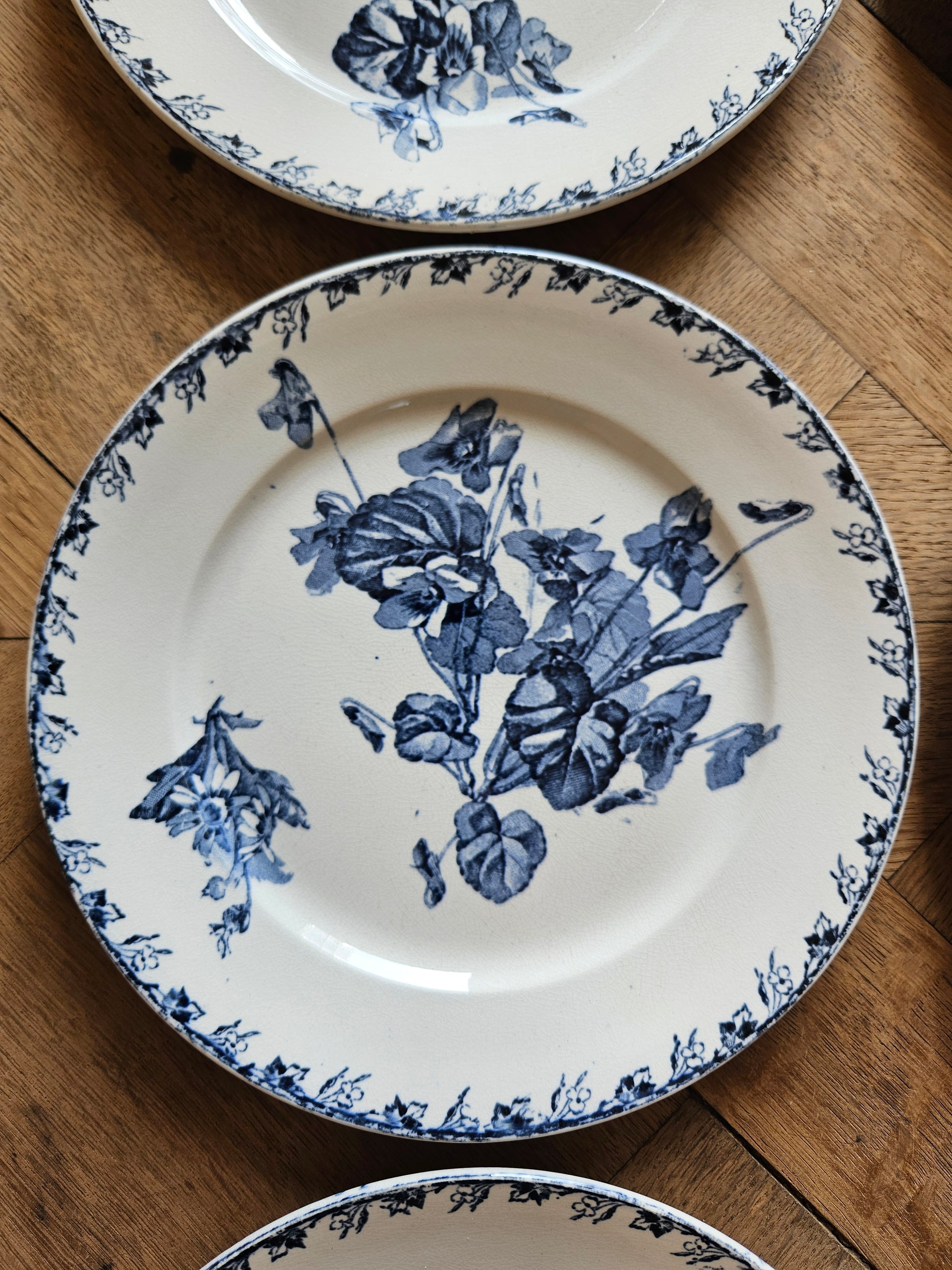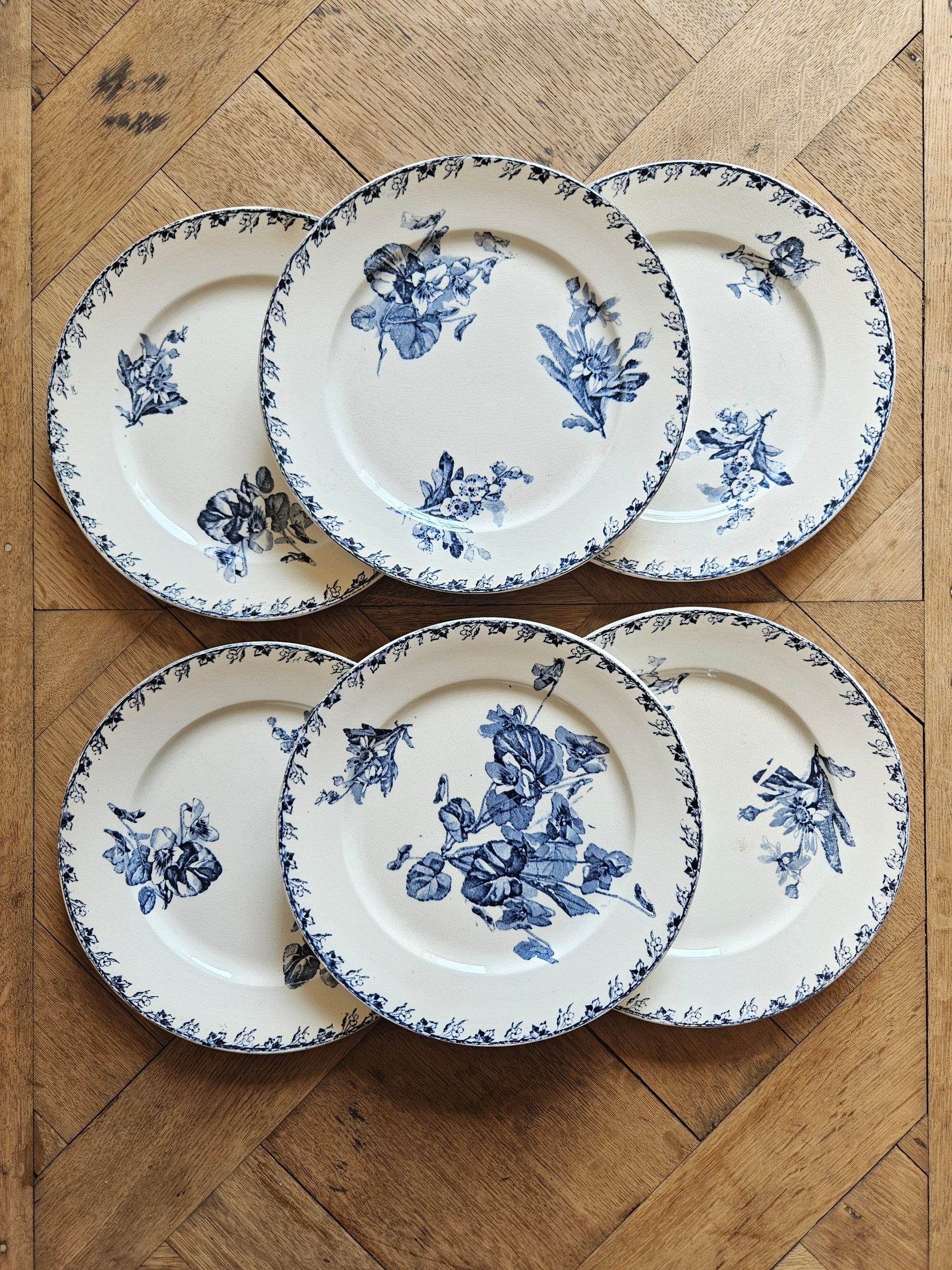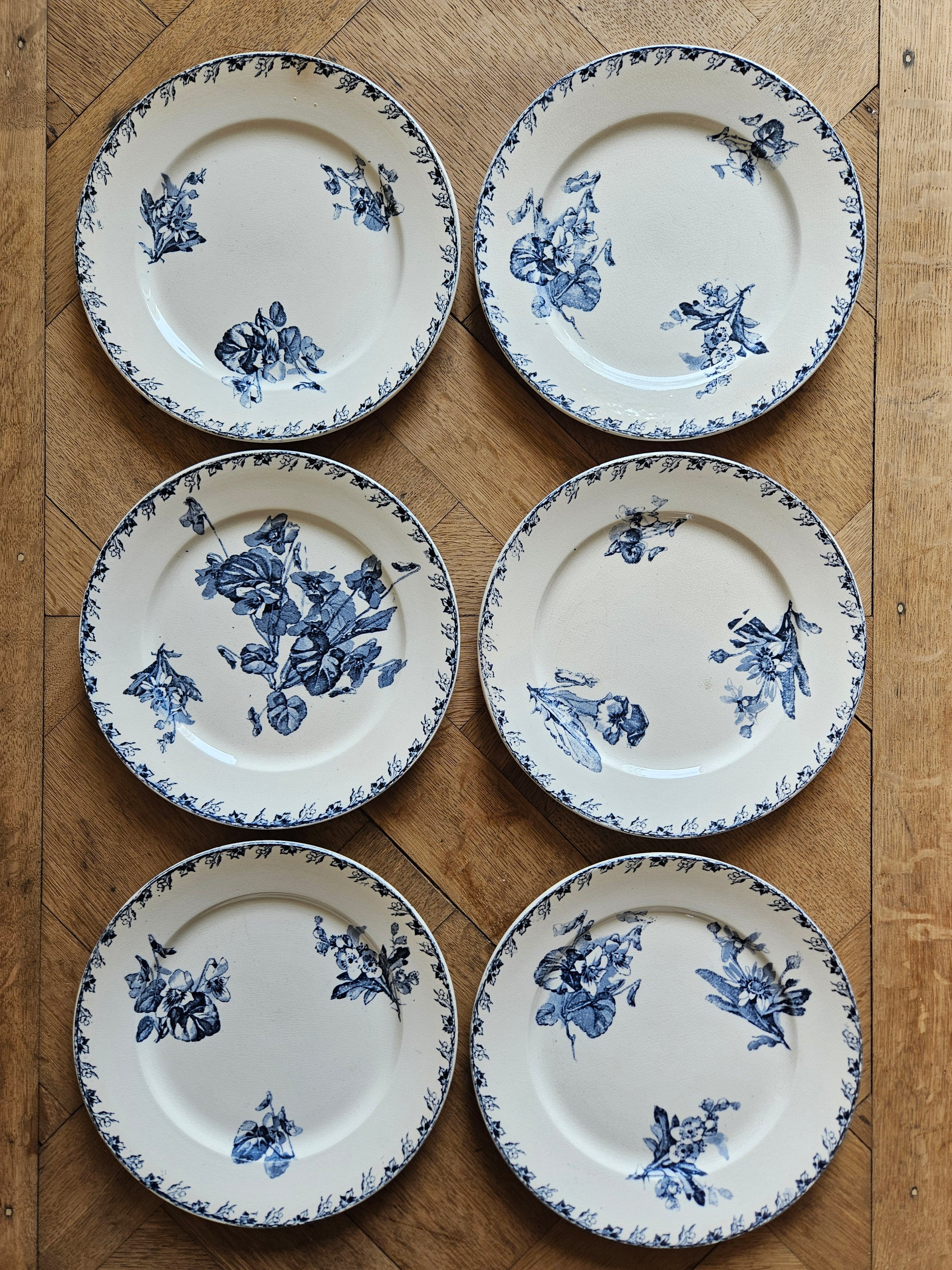 Un second lot de 6 assiettes à dessert (plus patinées) est disponible sur demande.