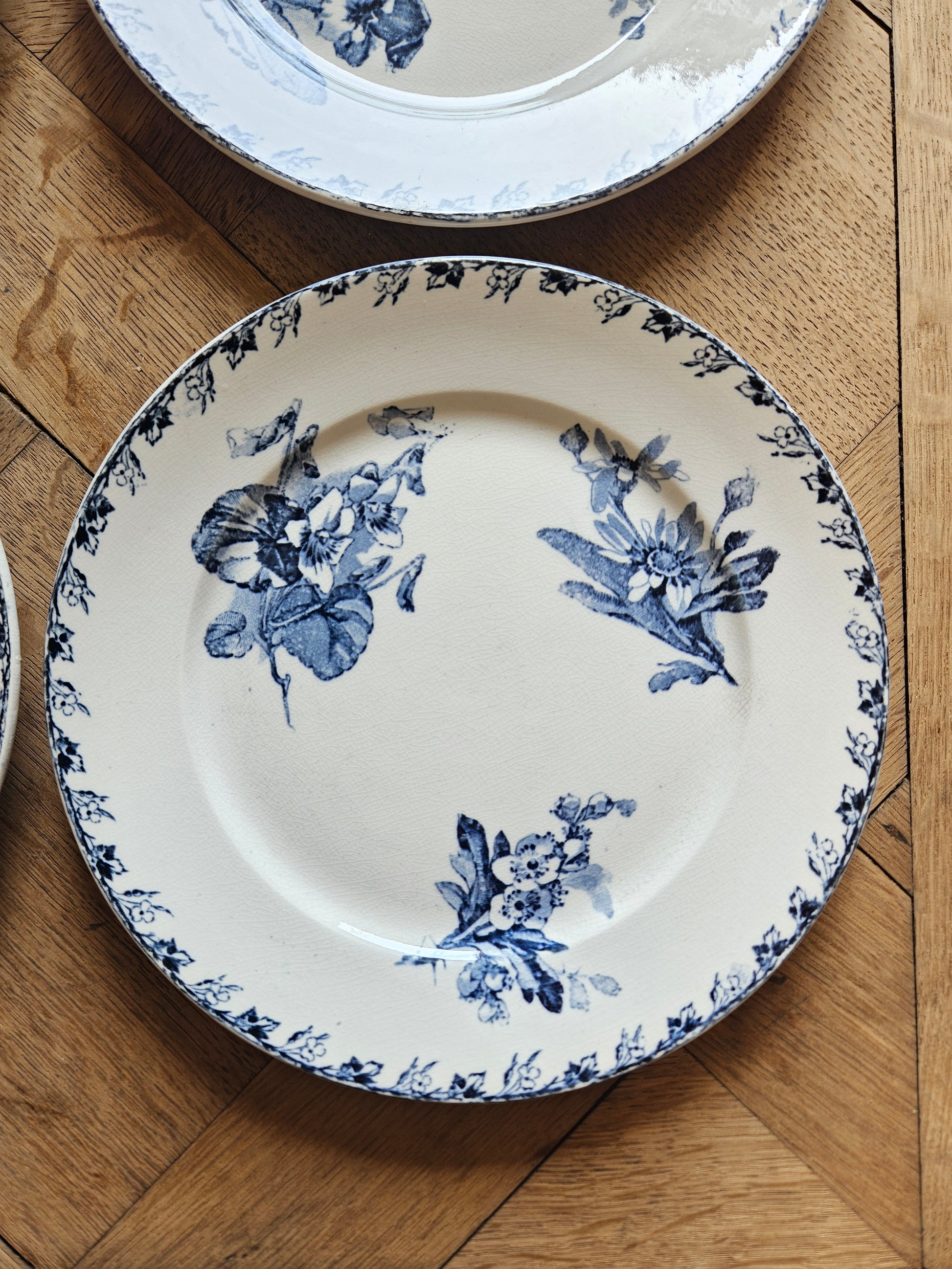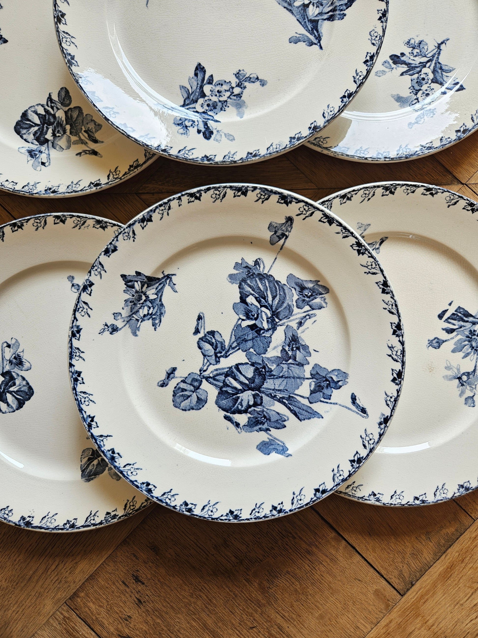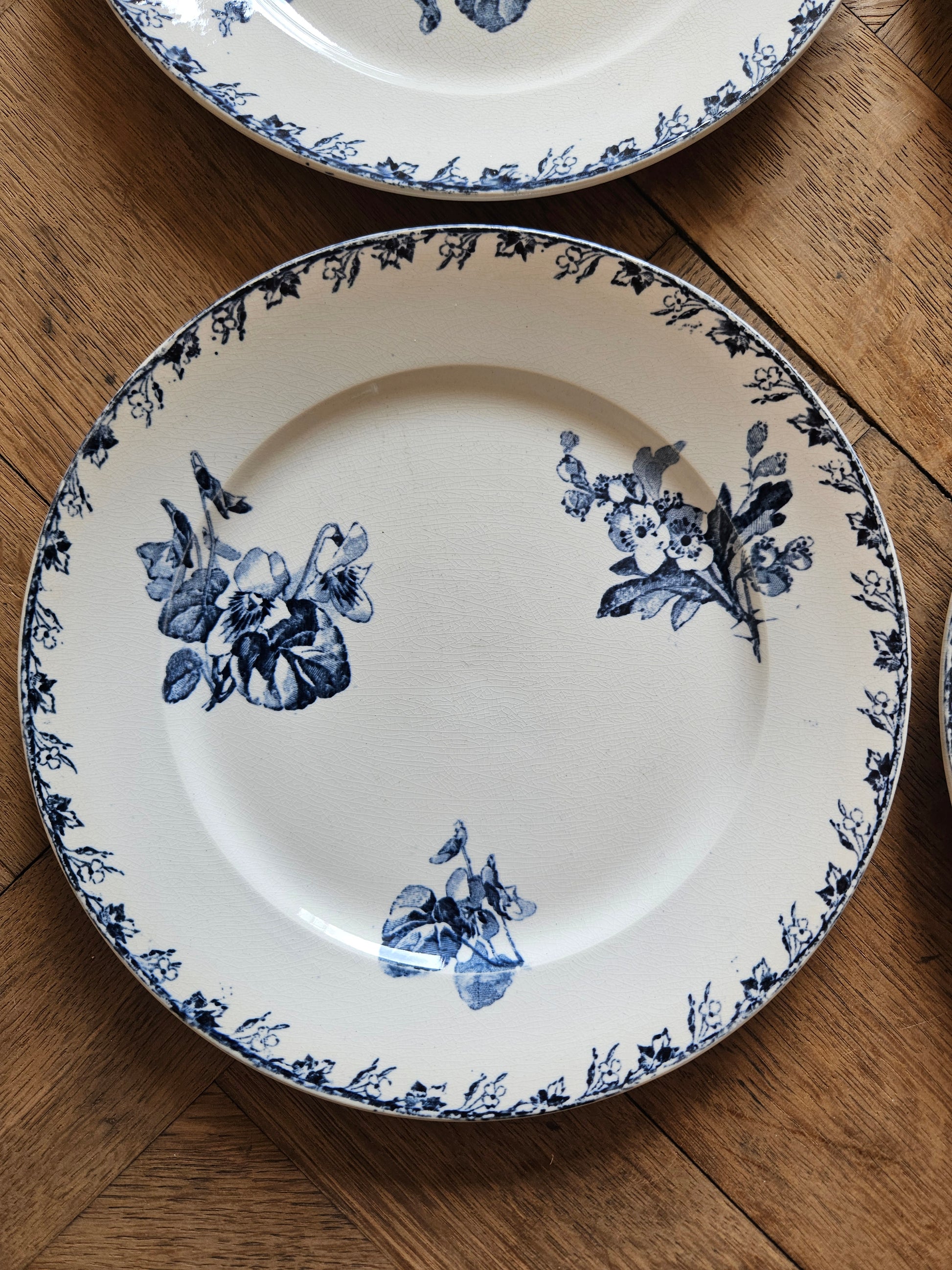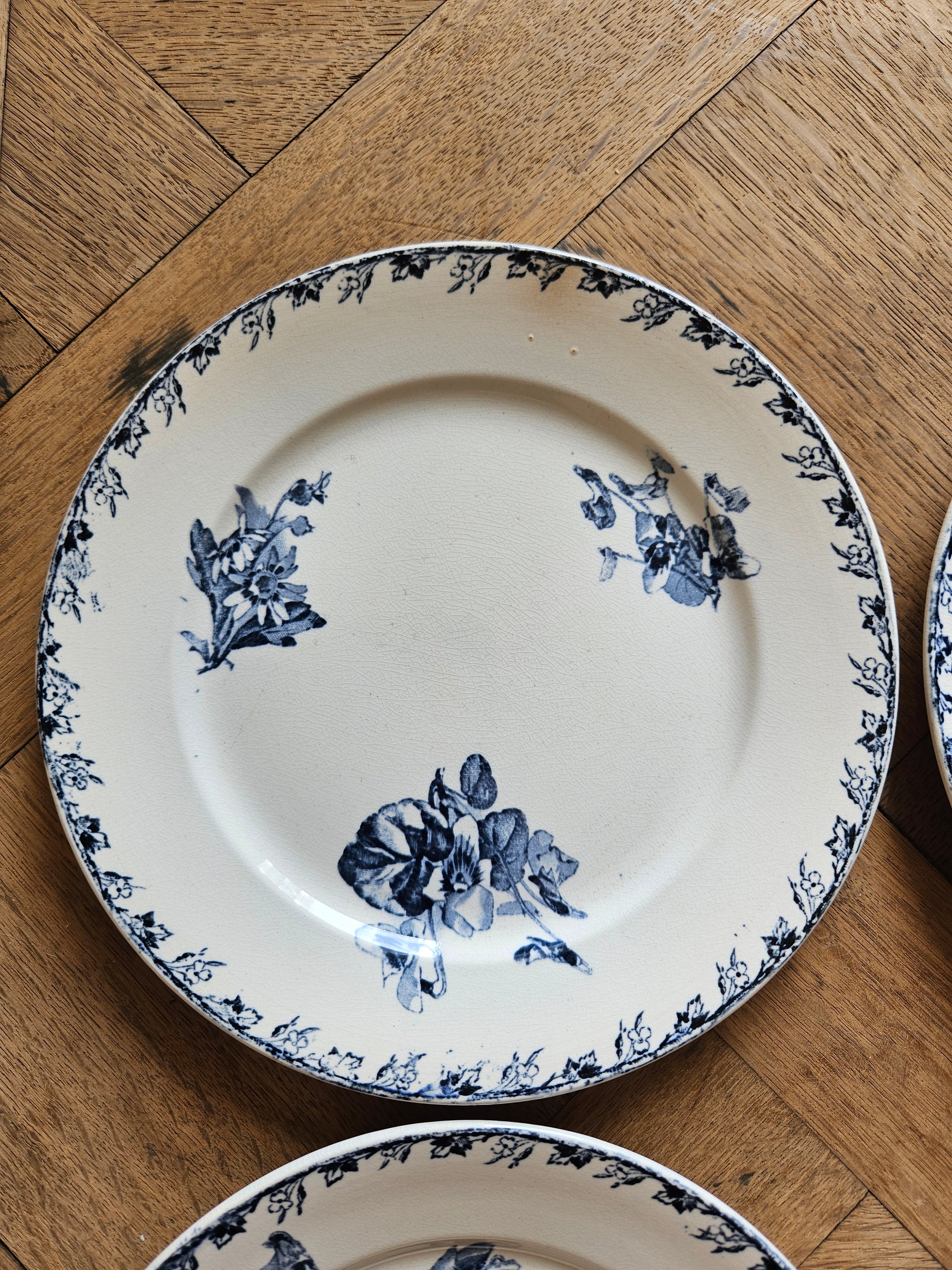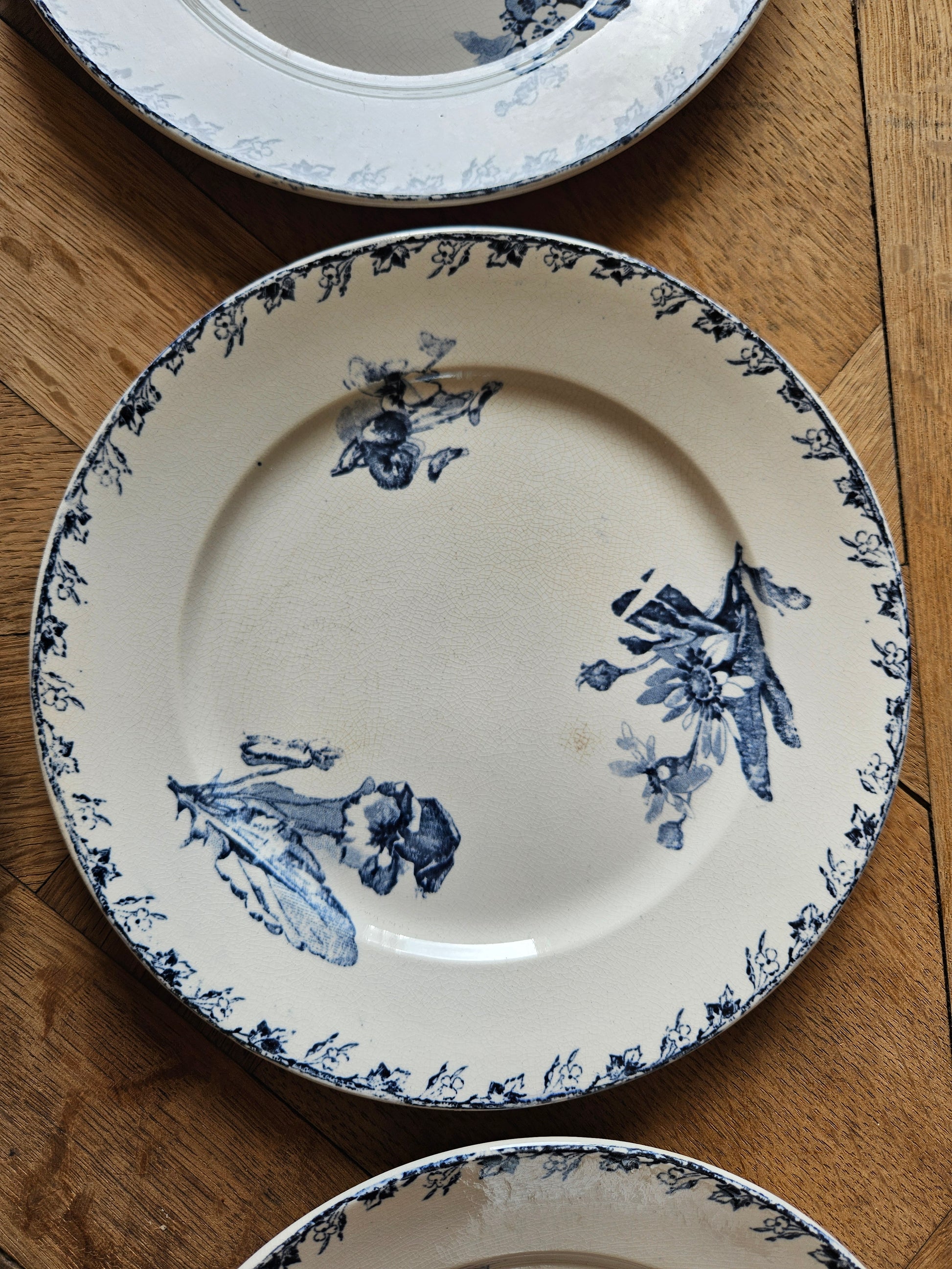 Un second lot de 6 assiettes à dessert (plus patinées) est disponible sur demande.