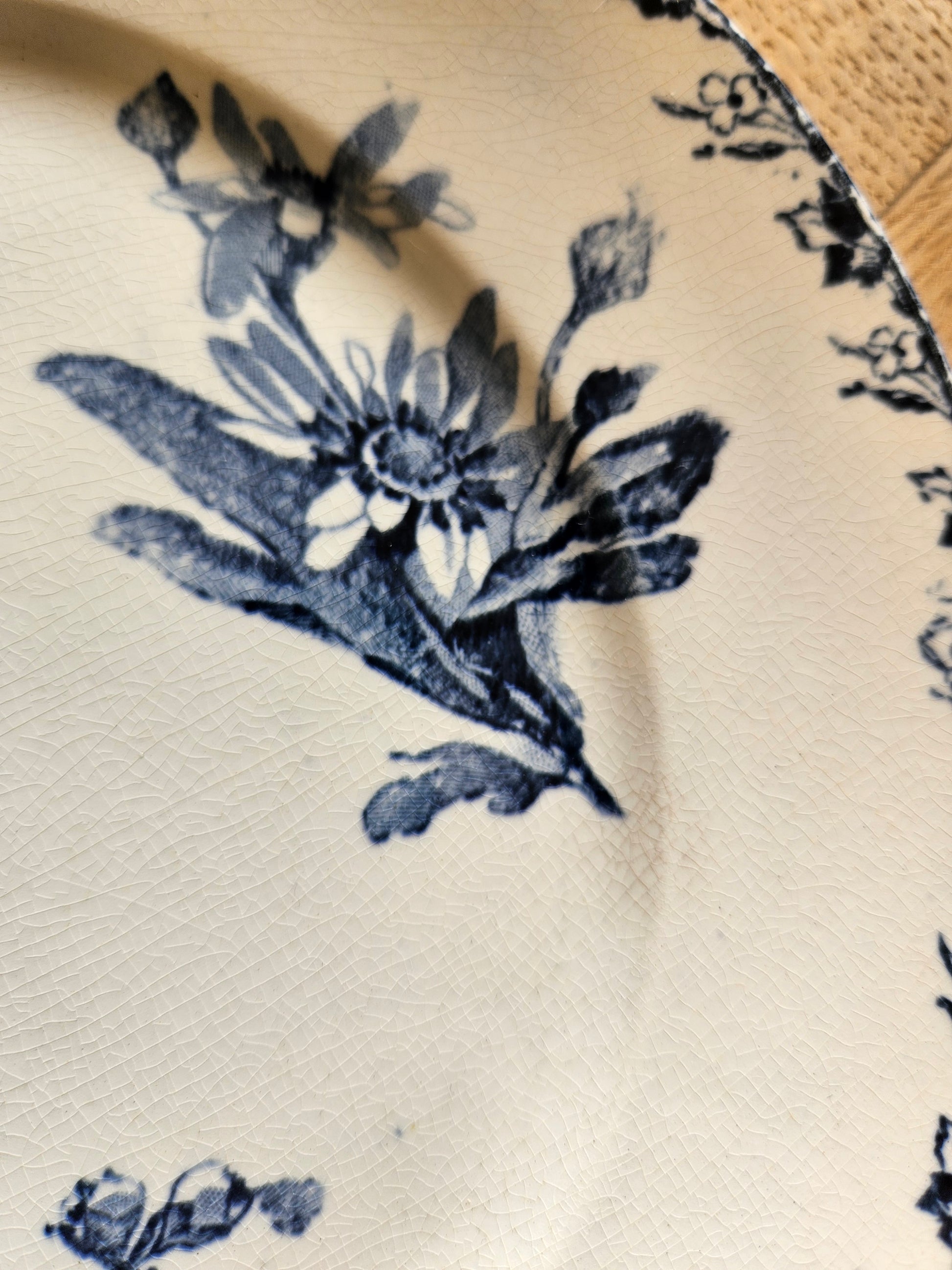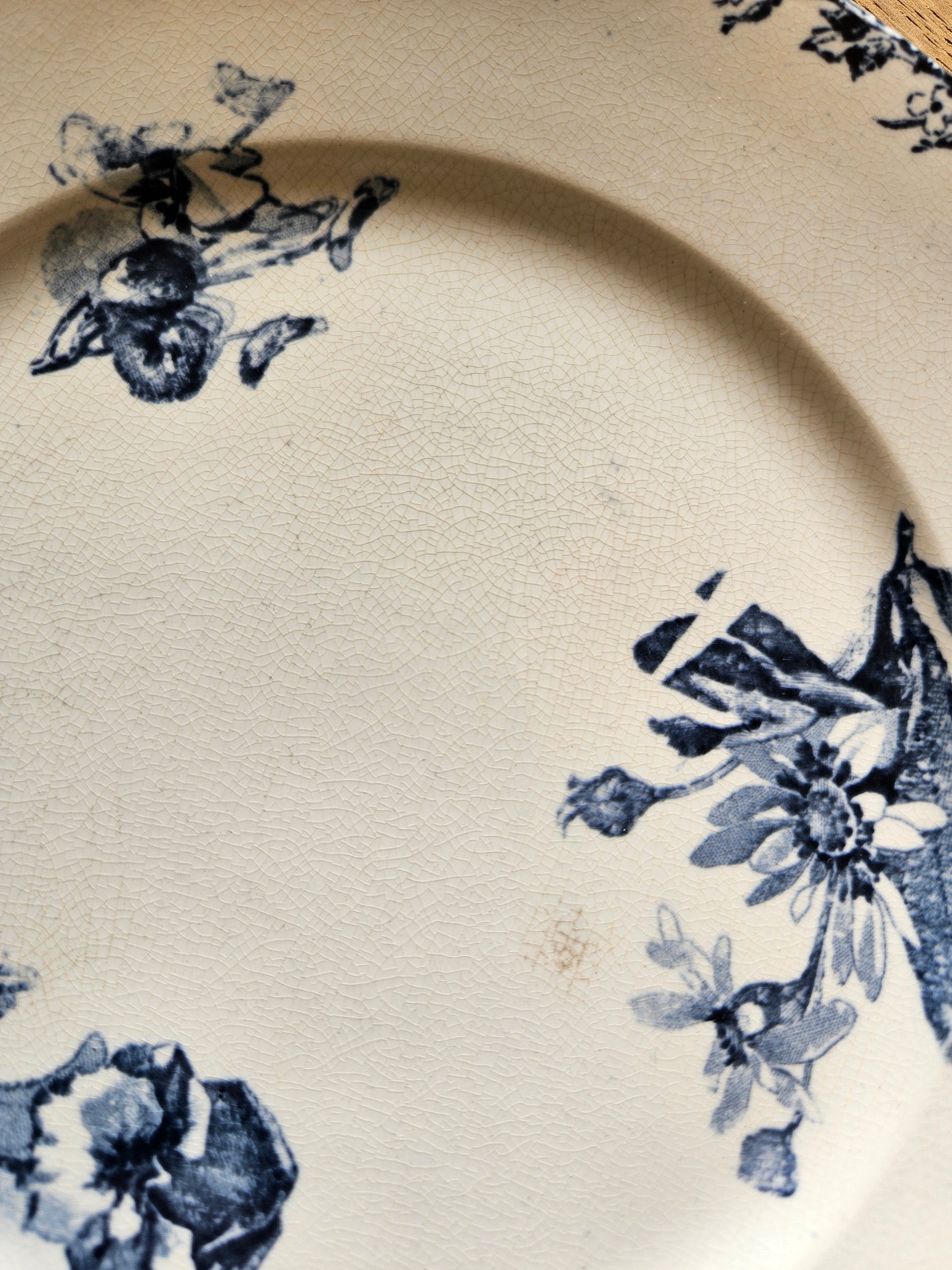 Terre de fer. Décor fleuri bleu foncé (plusieurs motifs différents).