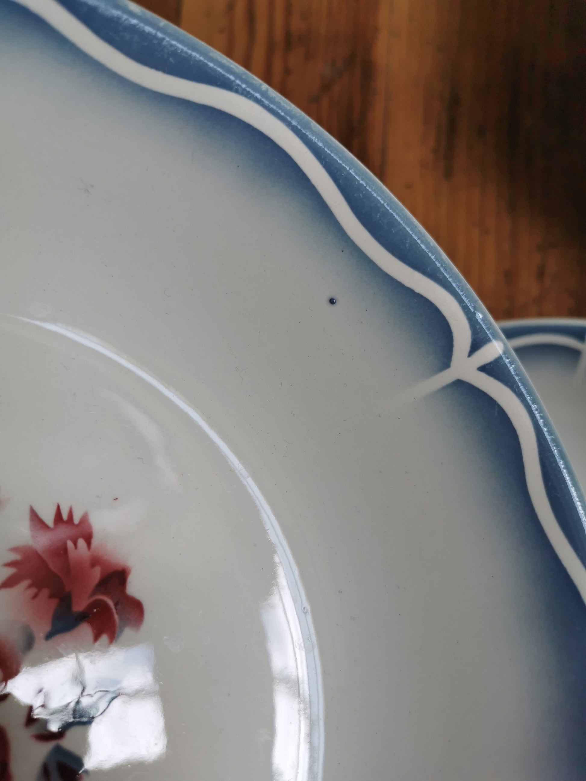 Lot de 4 assiettes creuses calottes vintage Digoin, modèle Nina Rosa.