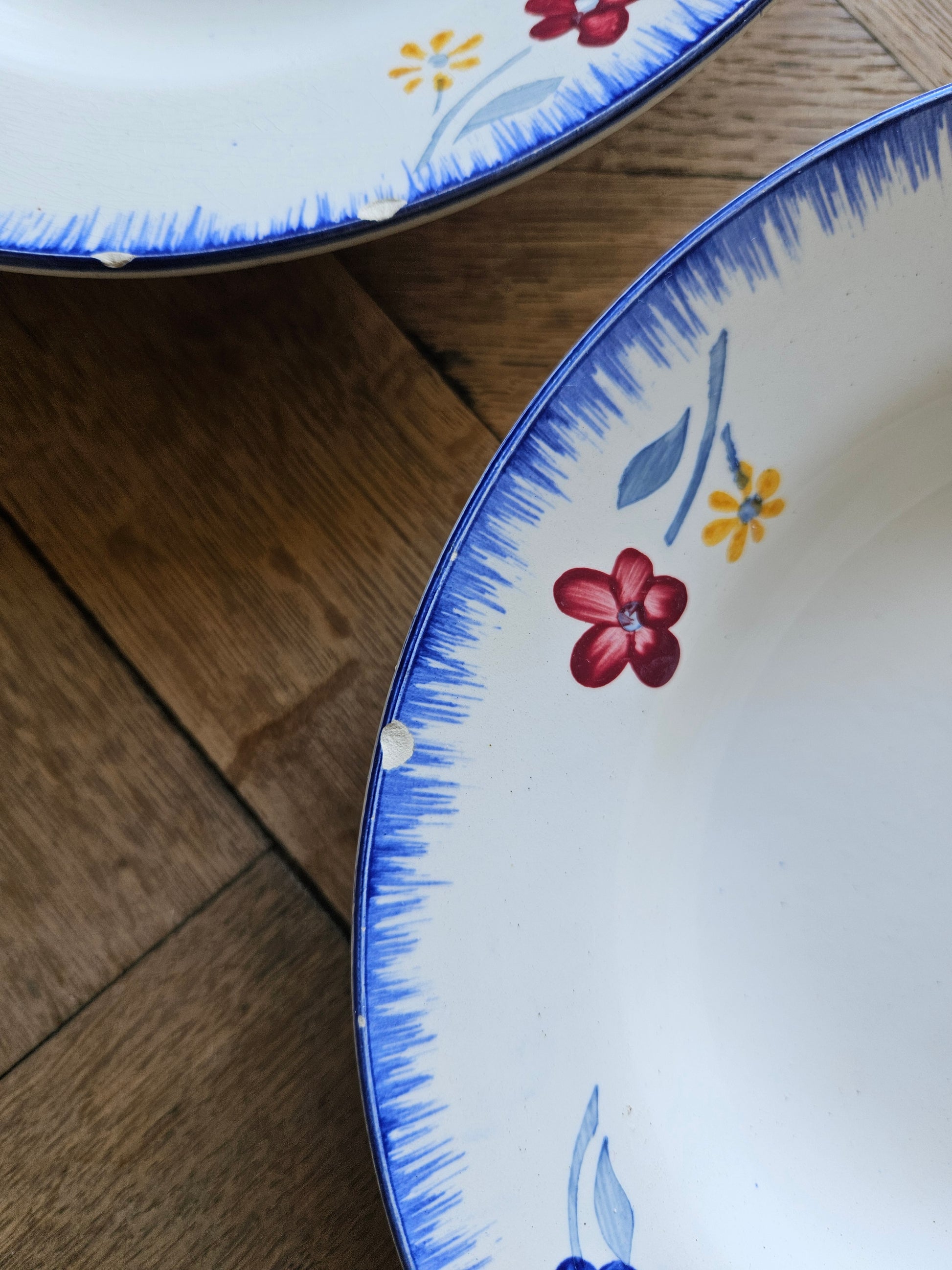 Lot de 2 assiettes creuses anciennes Digoin, modèle Mary-Lou.