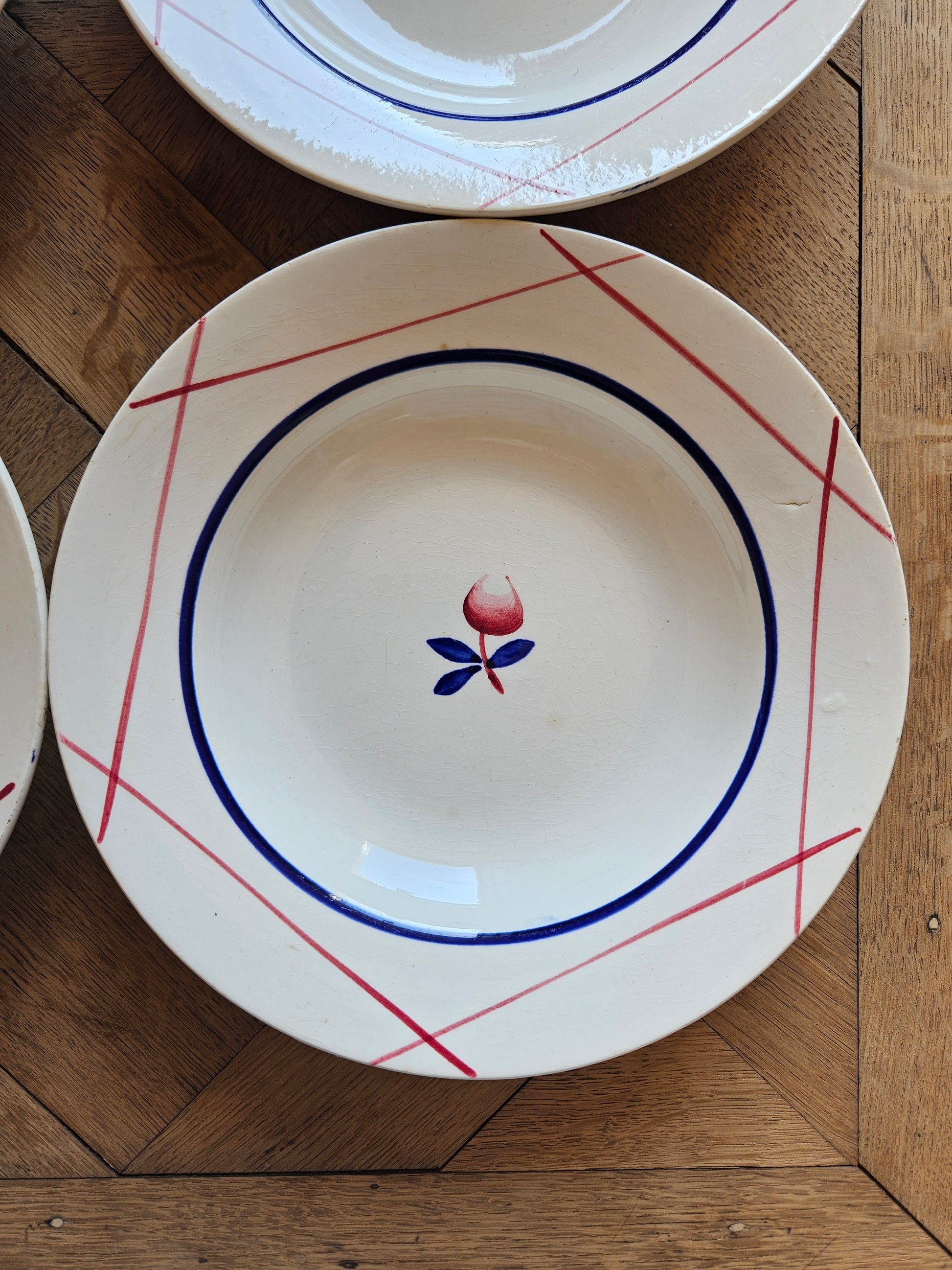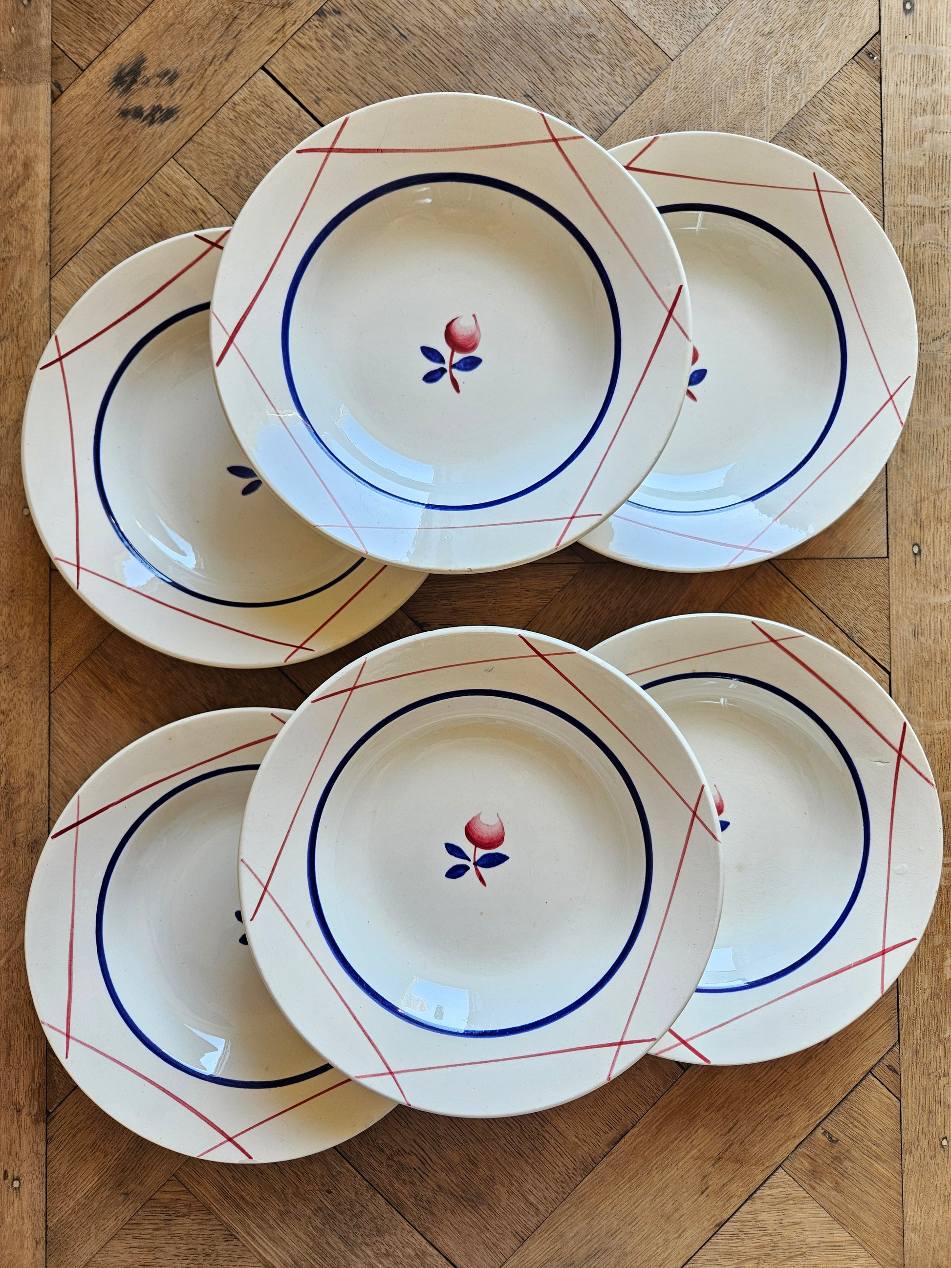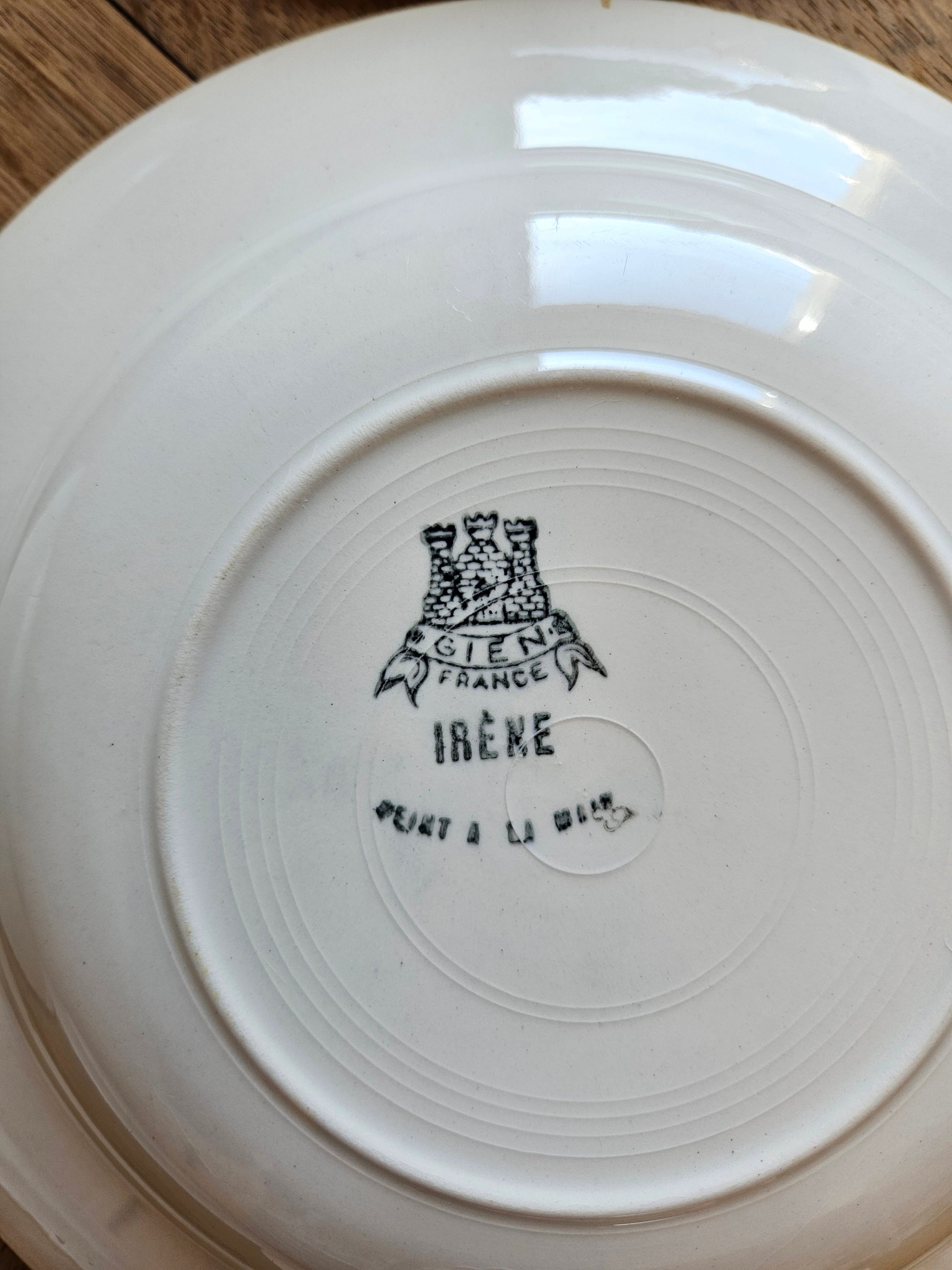Lot de 6 assiettes creuses vintage Gien, modèle Irène.