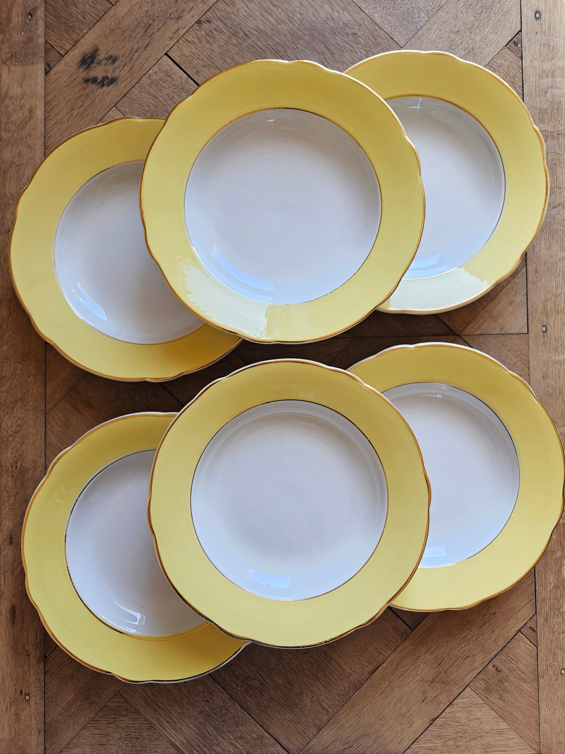 Lot de 6 assiettes creuses vintage K&G Lunéville, modèle Jonquille.