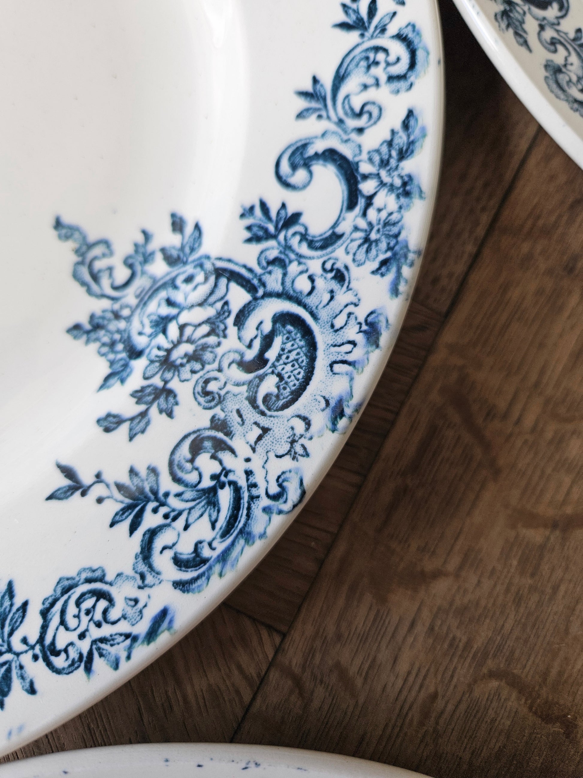 Lot de 6 assiettes plates anciennes Hippolyte Boulenger & Cie, modèle Louis XV.