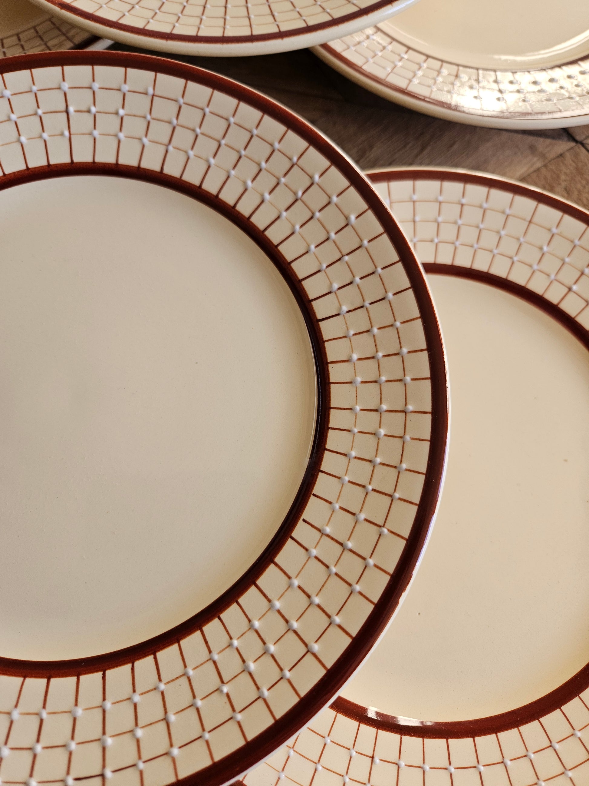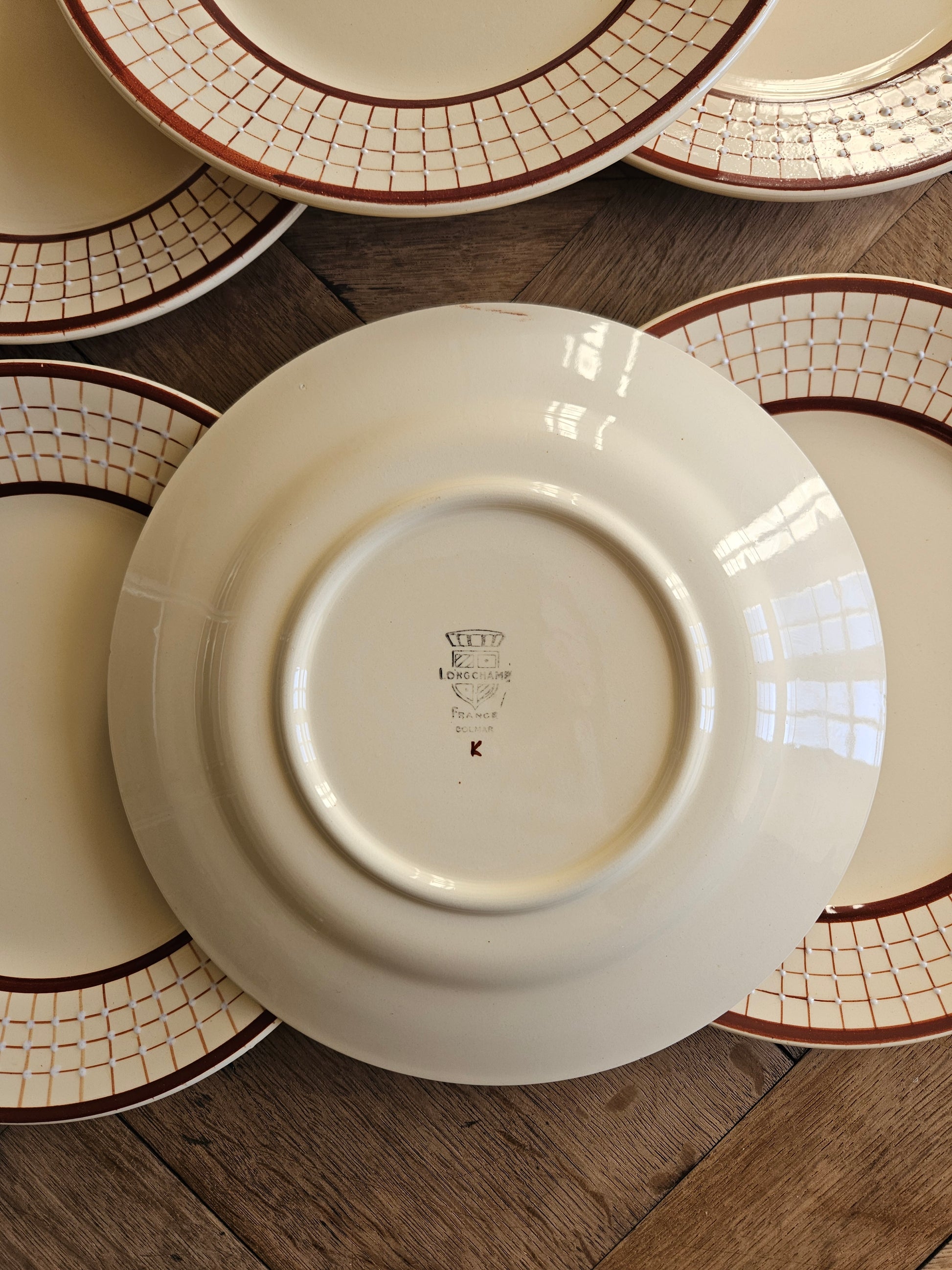 Lot de 6 assiettes plates vintage Longchamp, modèle Colmar.