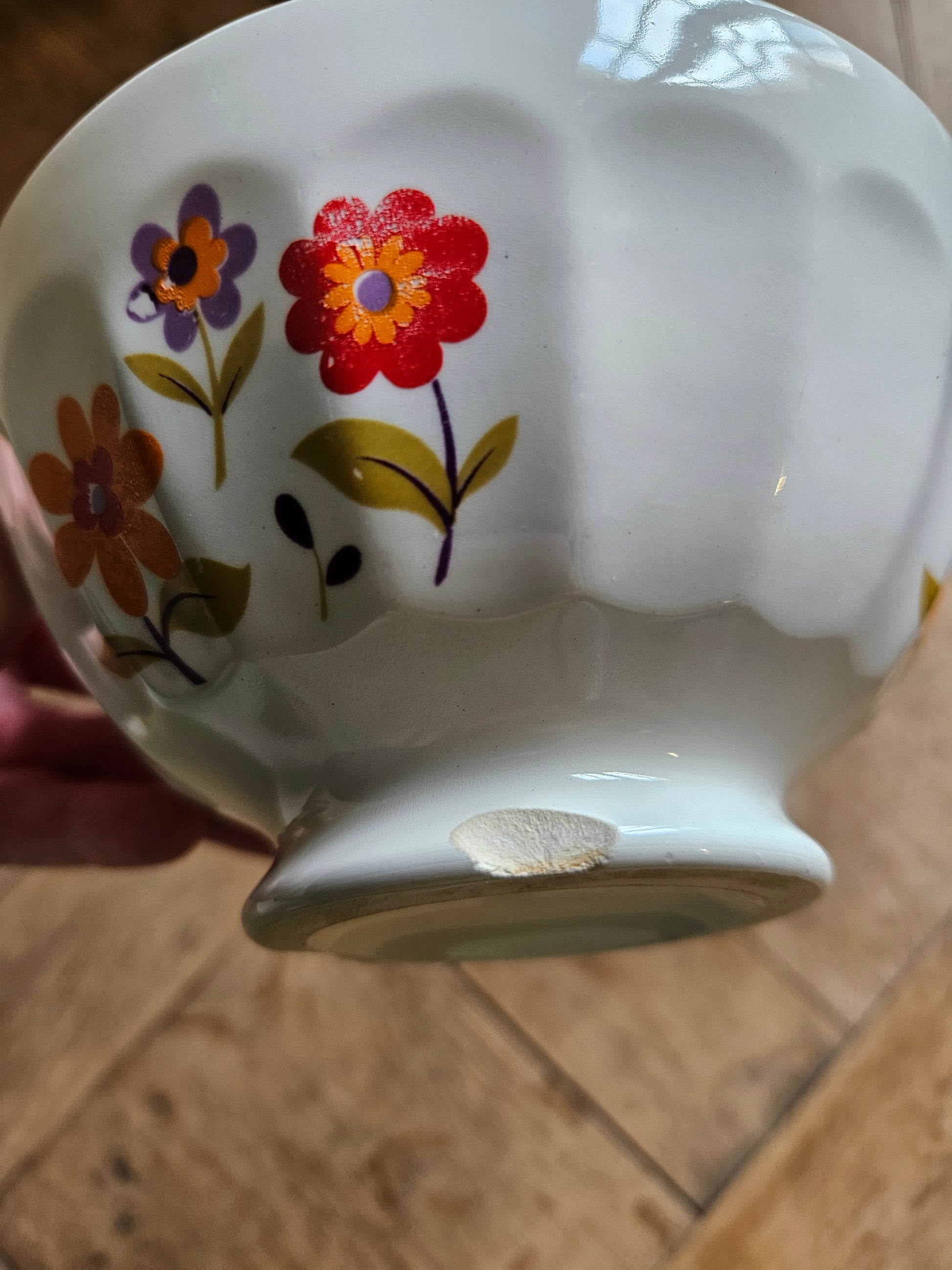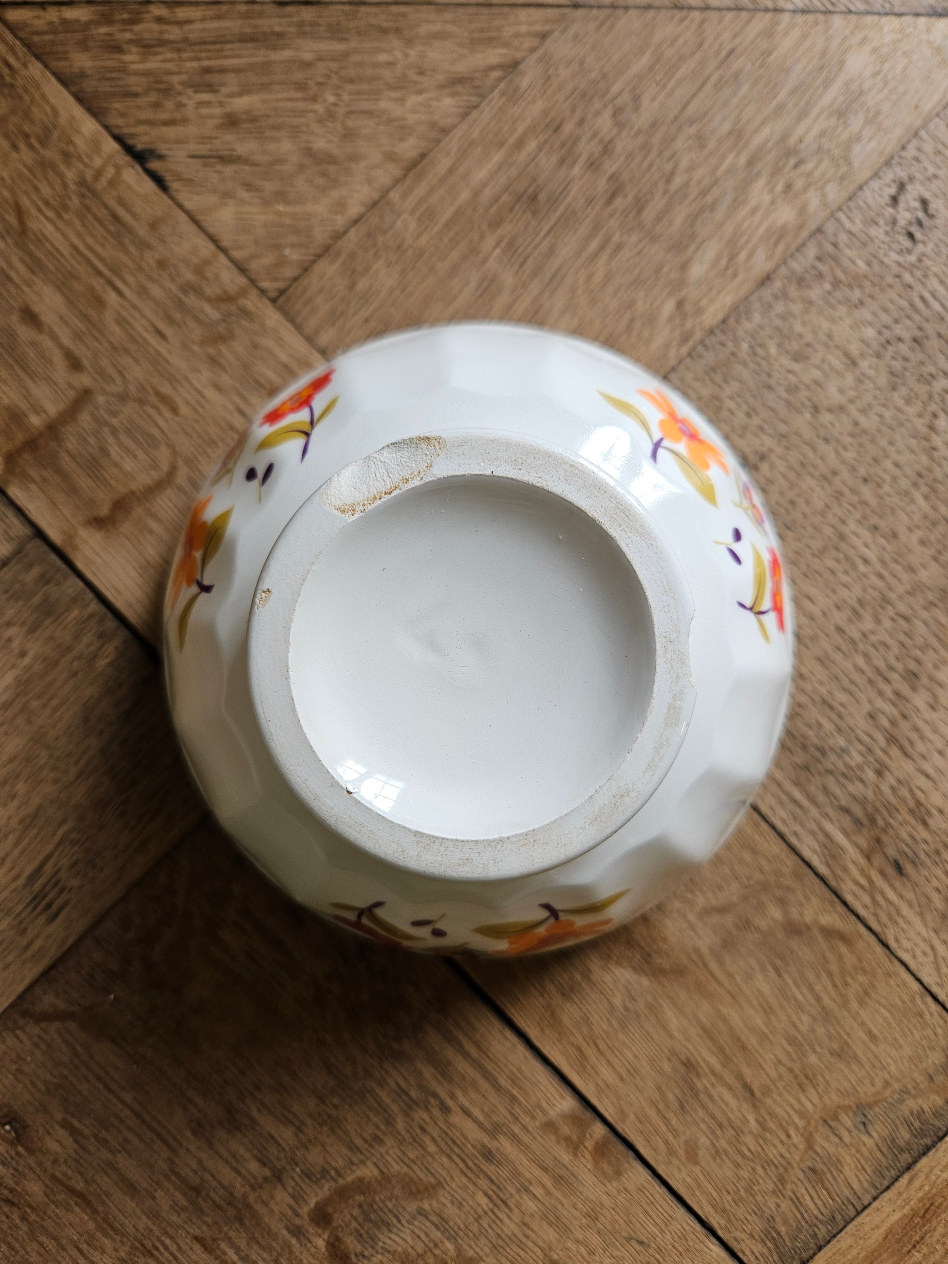 Bol à facettes ancien. Décor de petites fleurs multicolores, style années 70.