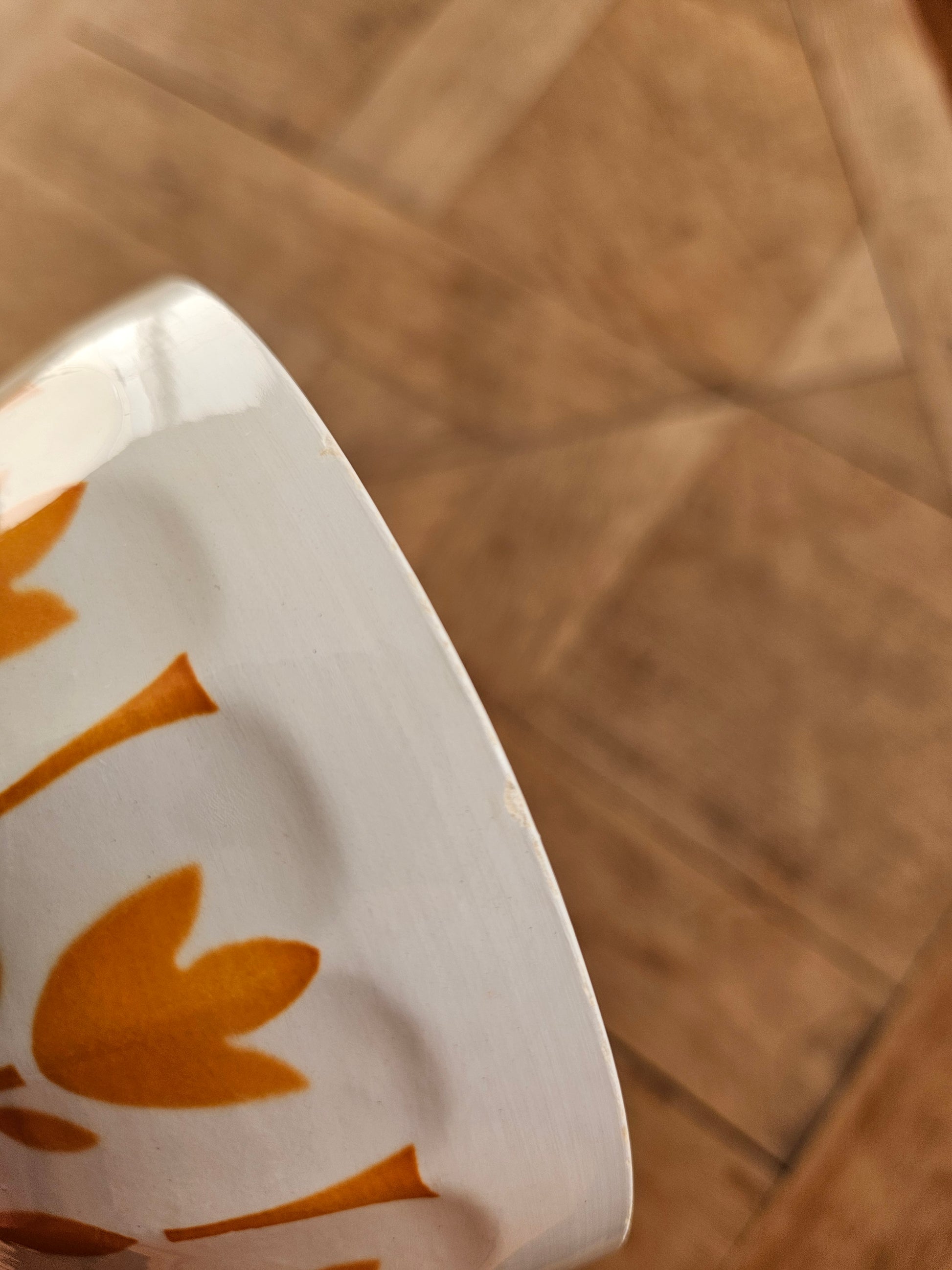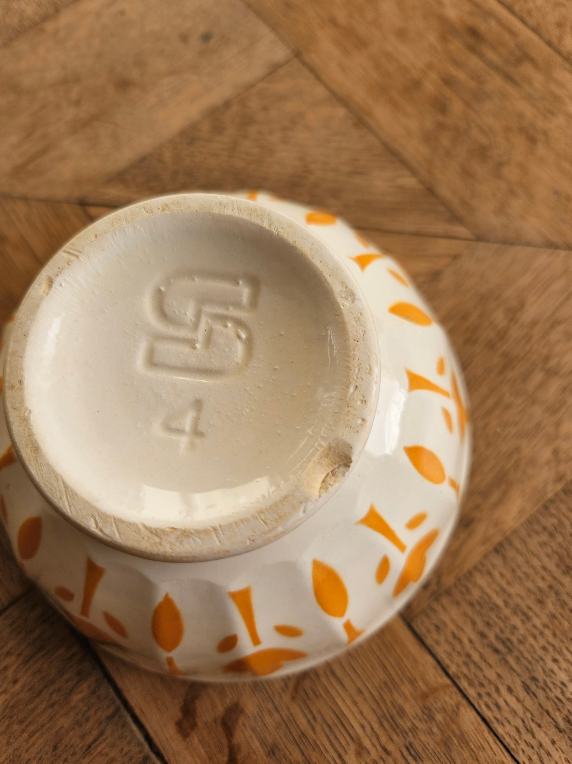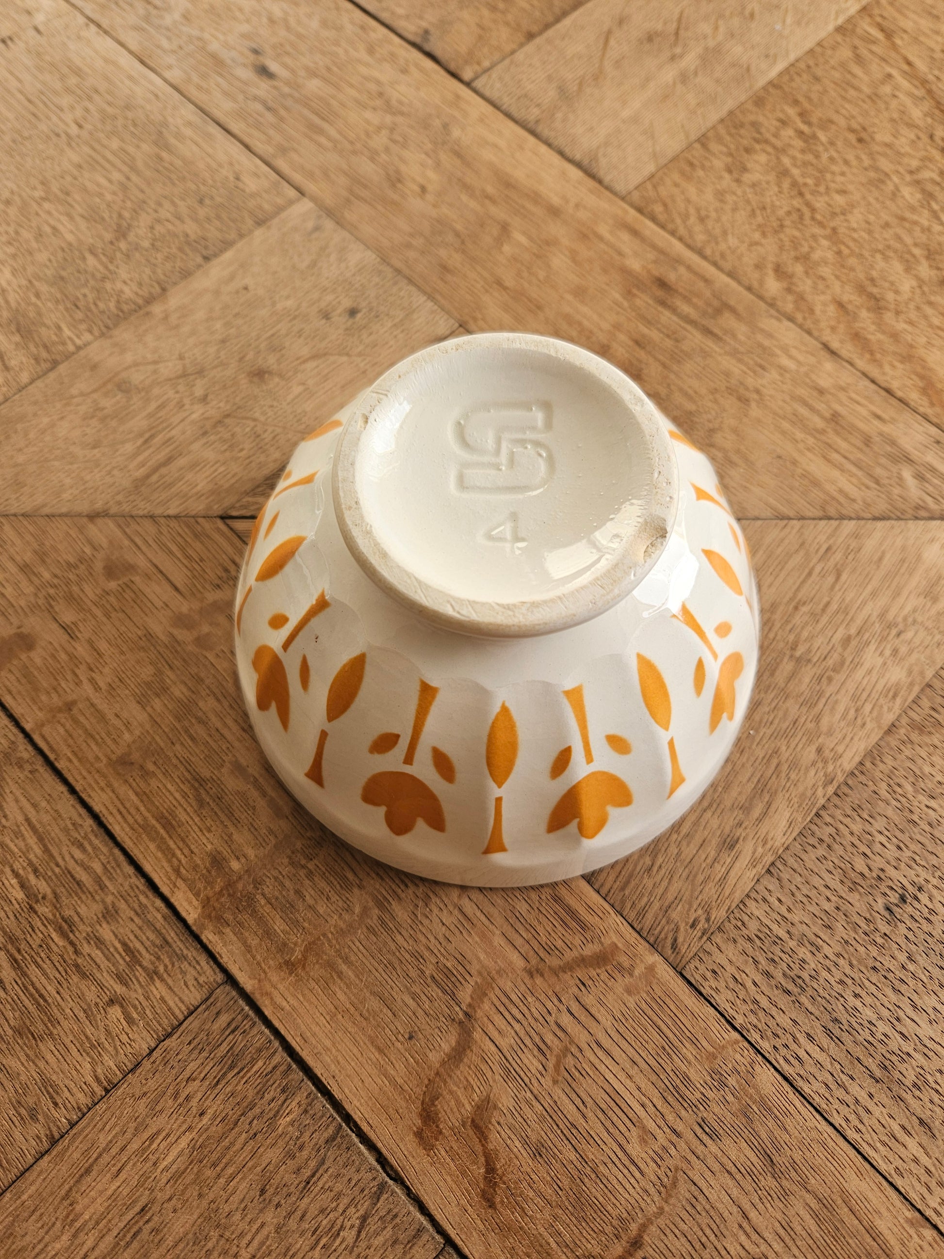 Bol à facettes ancien Sarreguemines. Décor de fleurs jaunes, style tulipes.