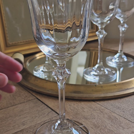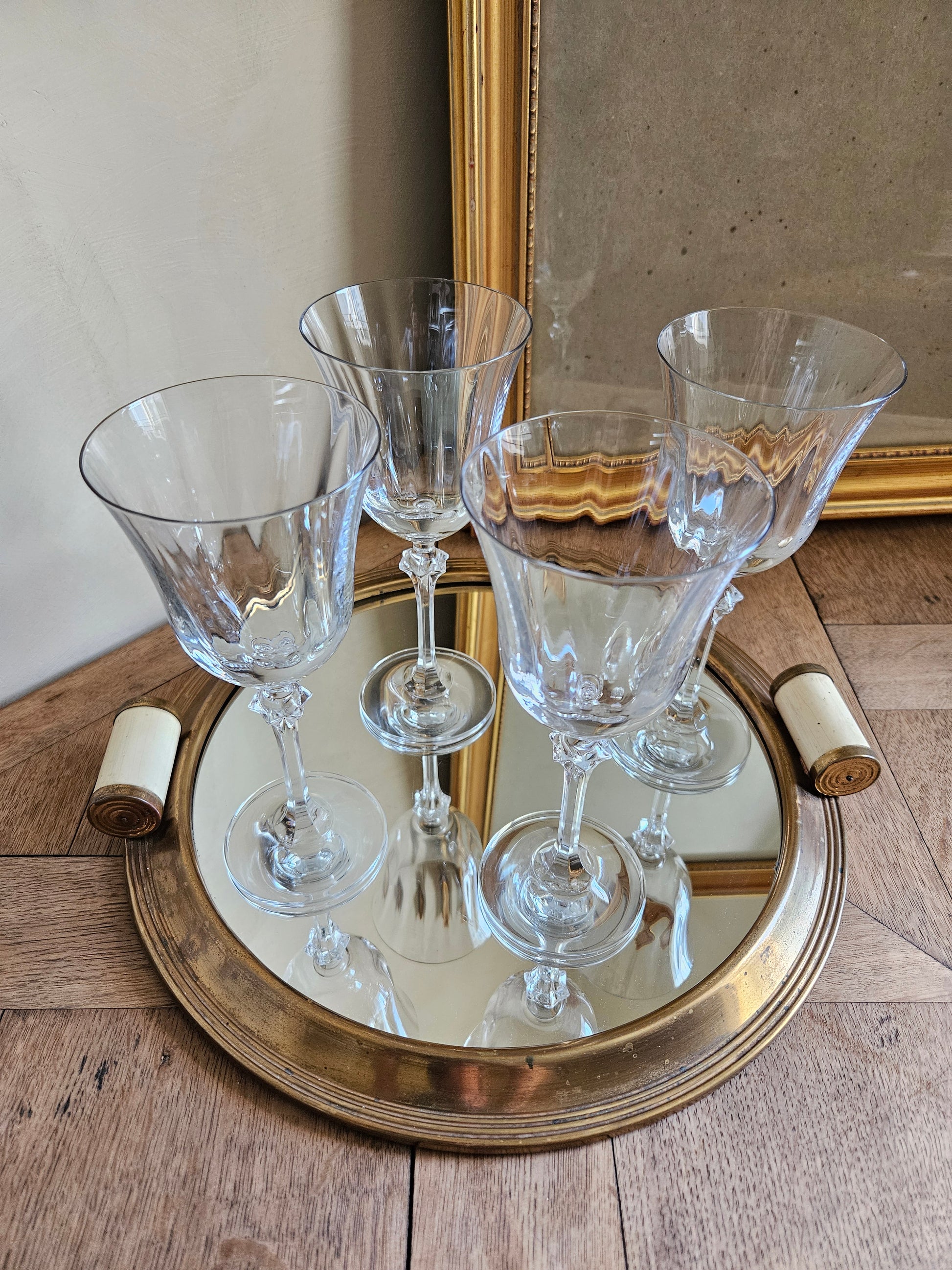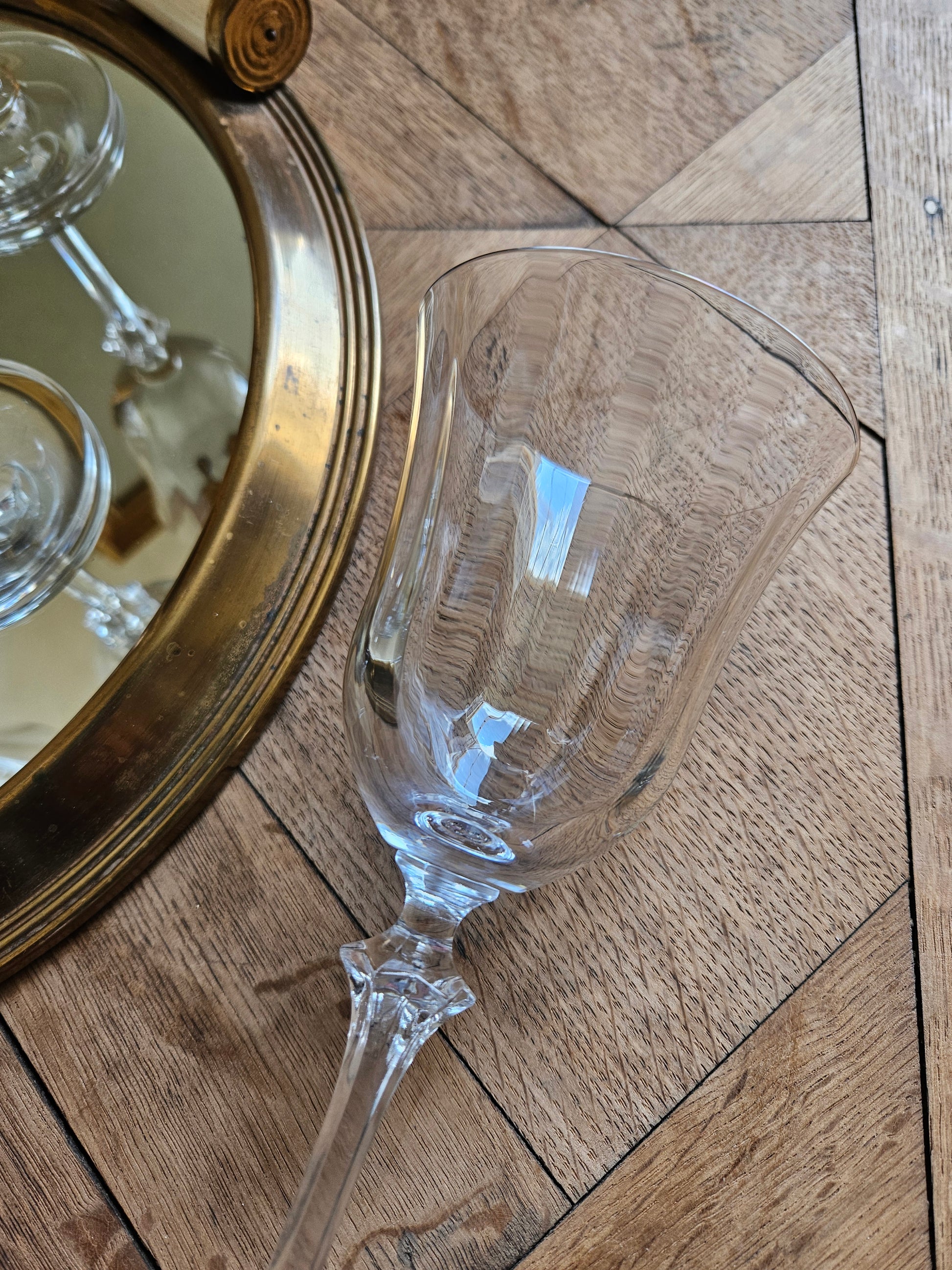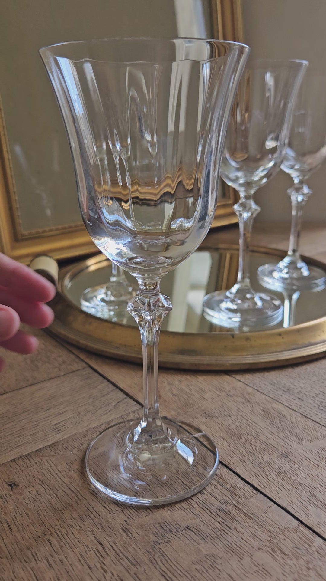 Lot de 4 grands verres à pied, légèrement striés. En verre.