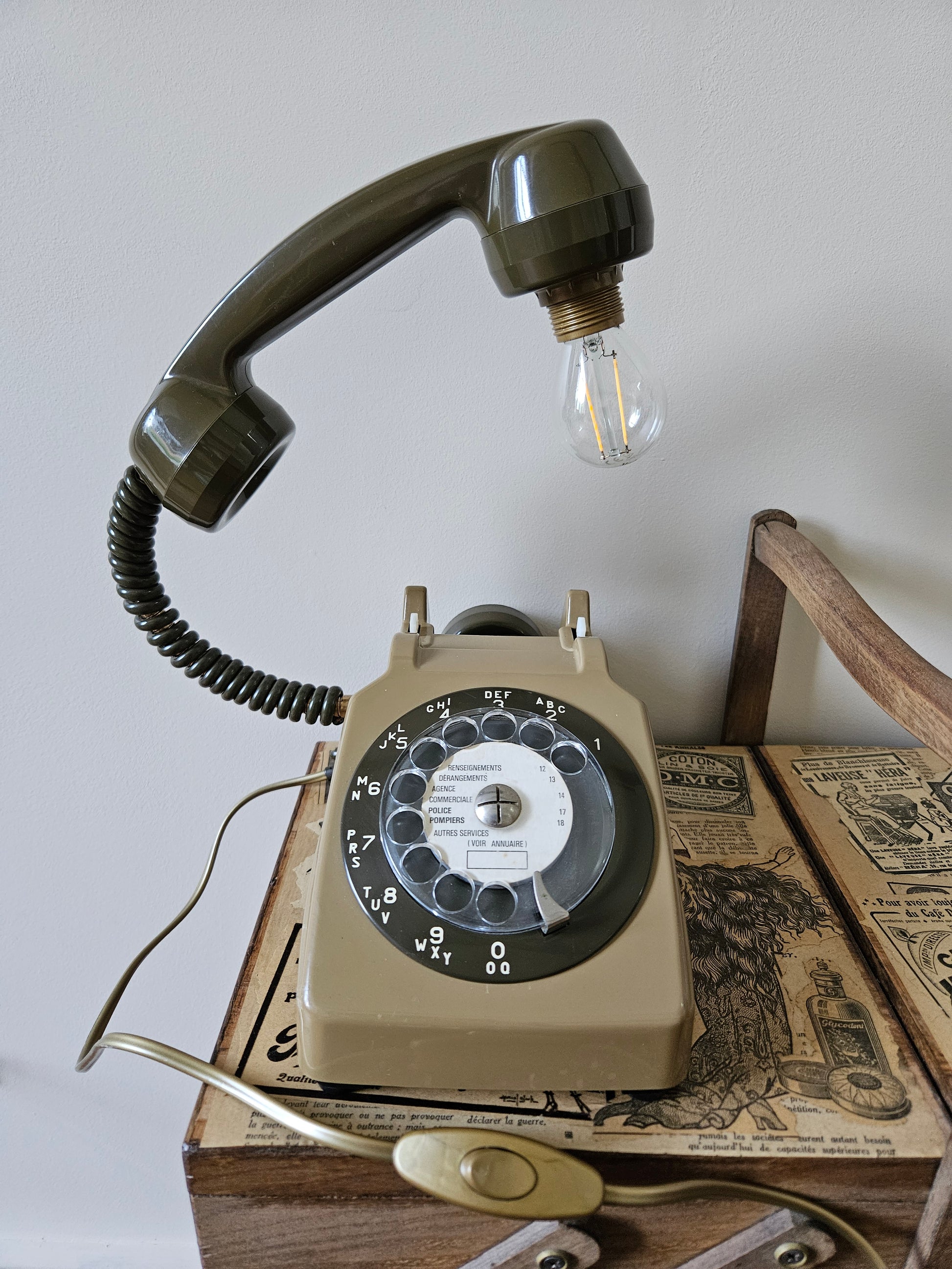 Lampe à poser réalisée à partir d'un téléphone à cadran vintage Socotel S63, des années 70/80.