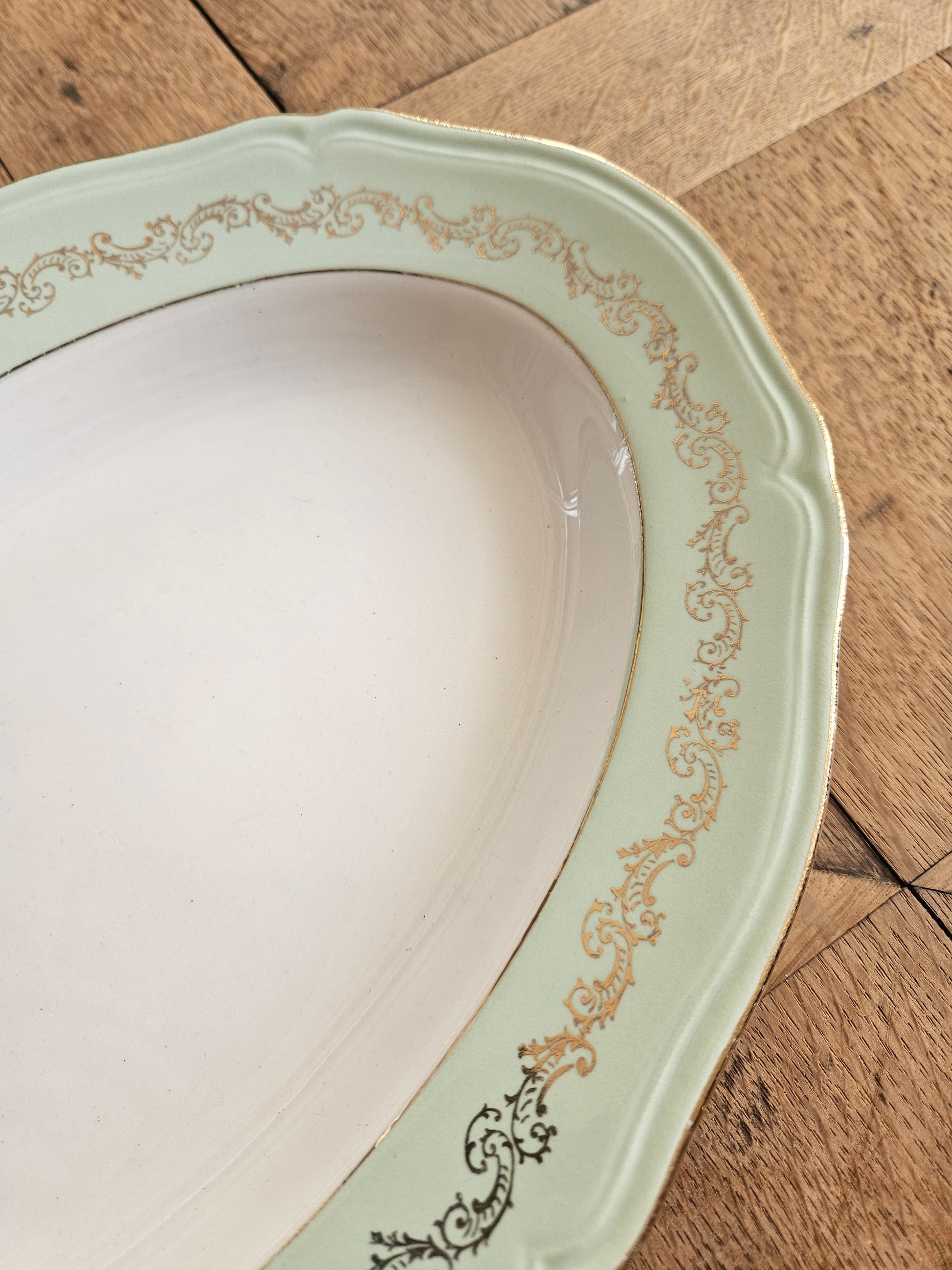 Plat ovale L’Amandinoise, mint et dorure