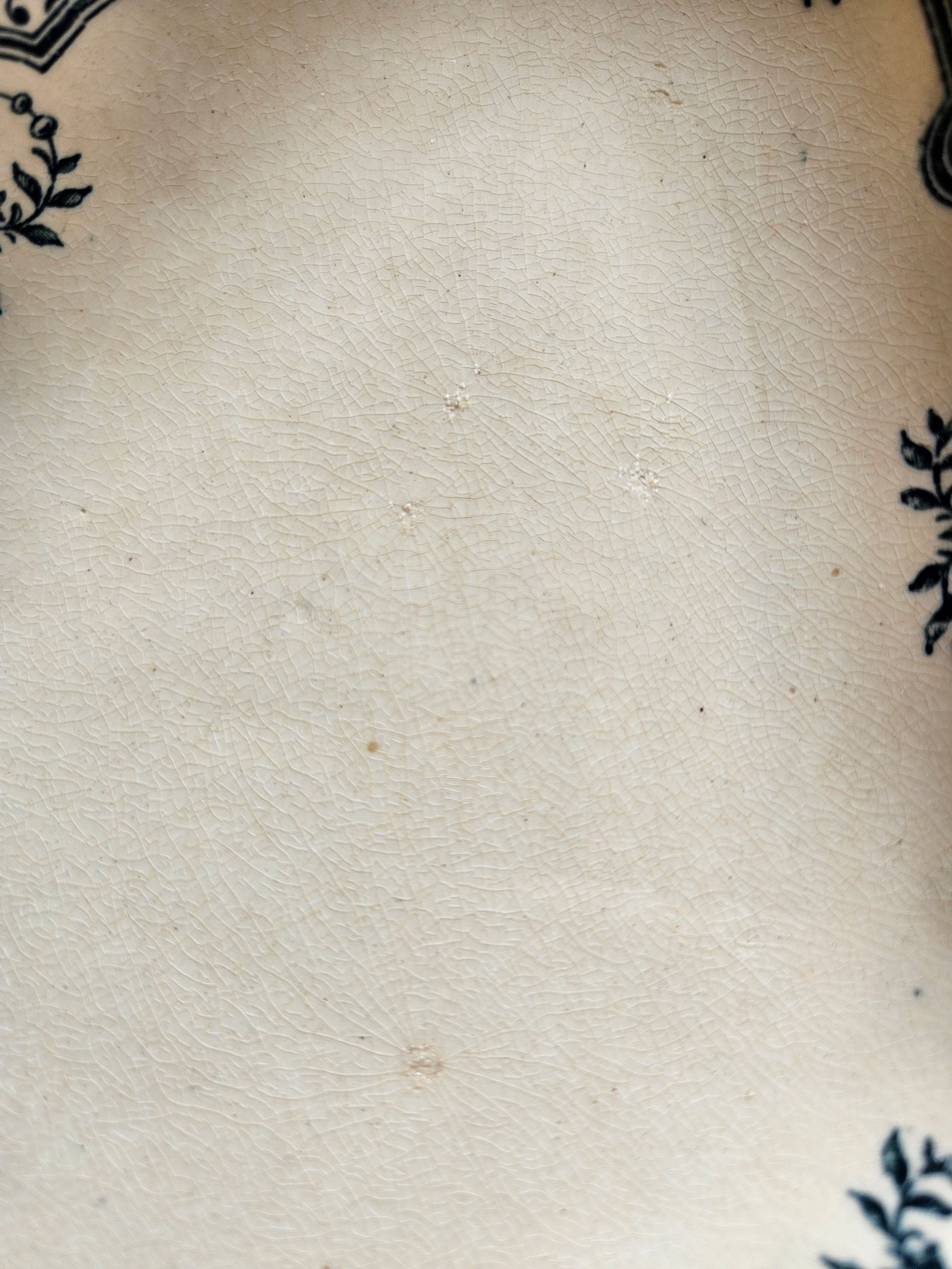 Terre de fer. Décor bleu foncé, fond ivoire.