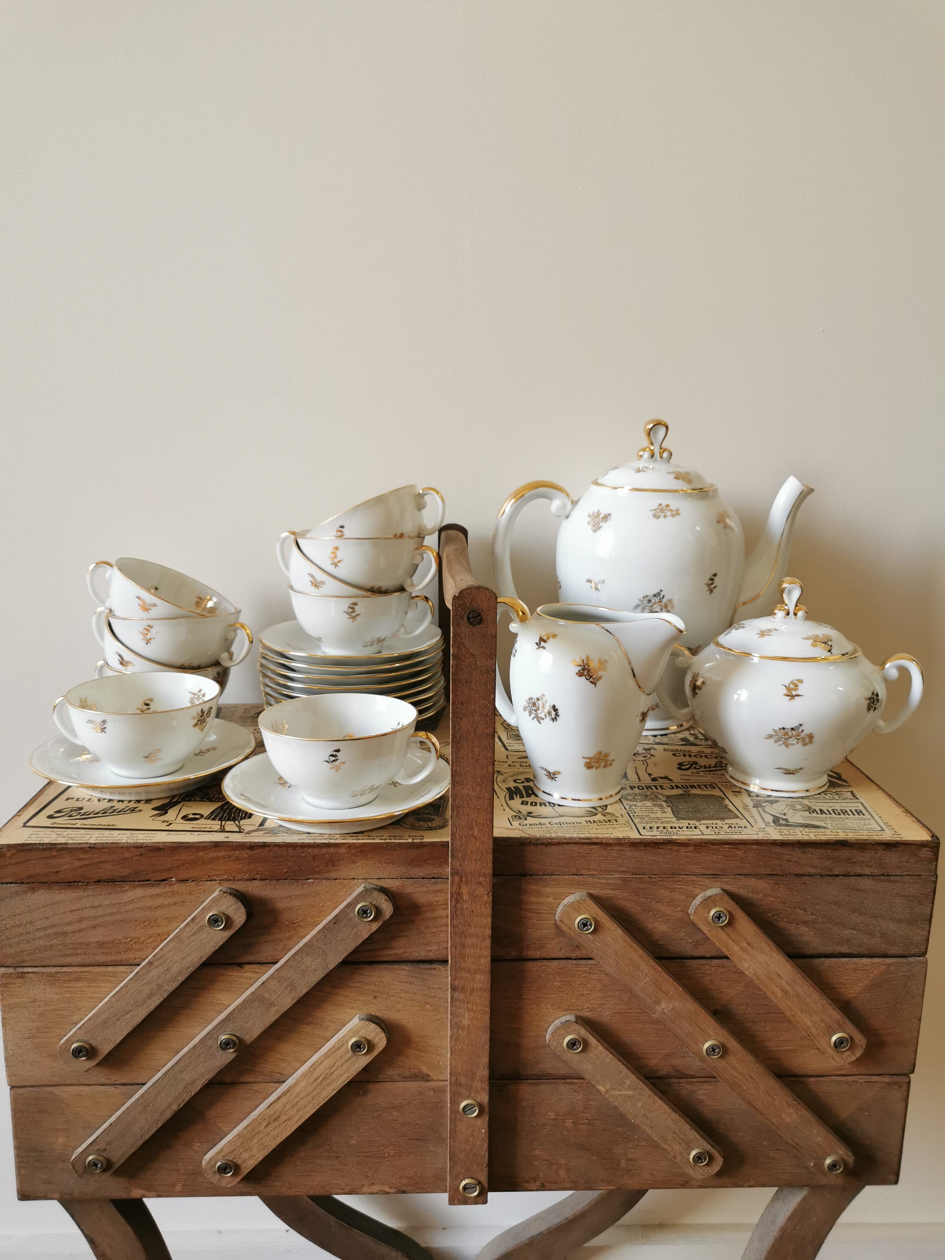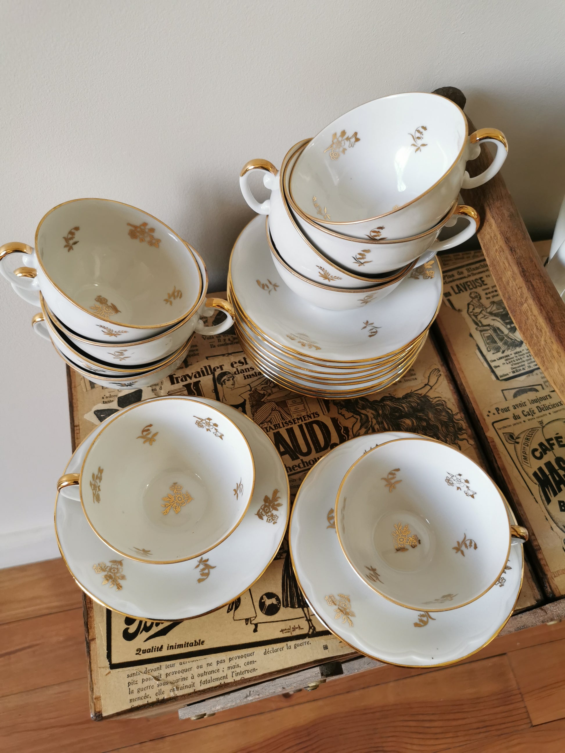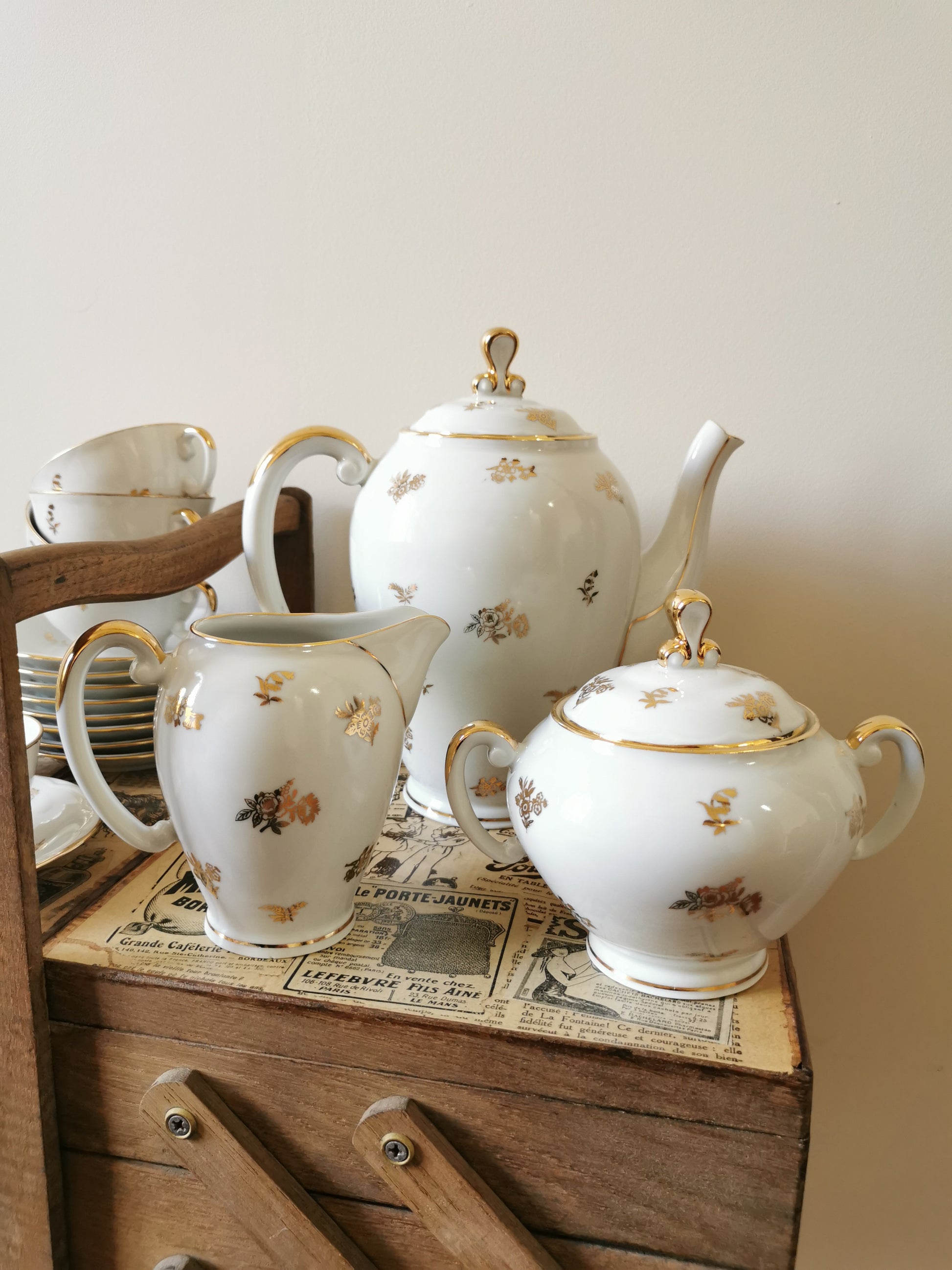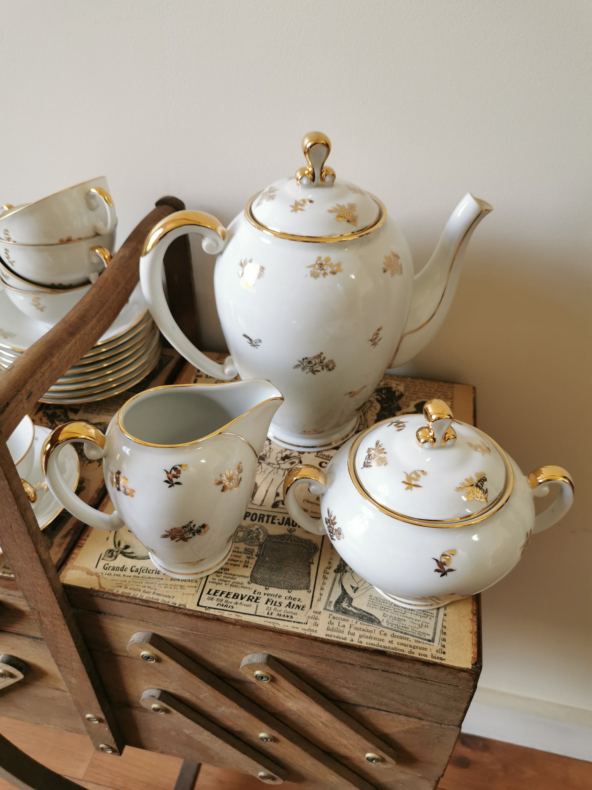 Service à café porcelaine S.F.P, blanc et doré