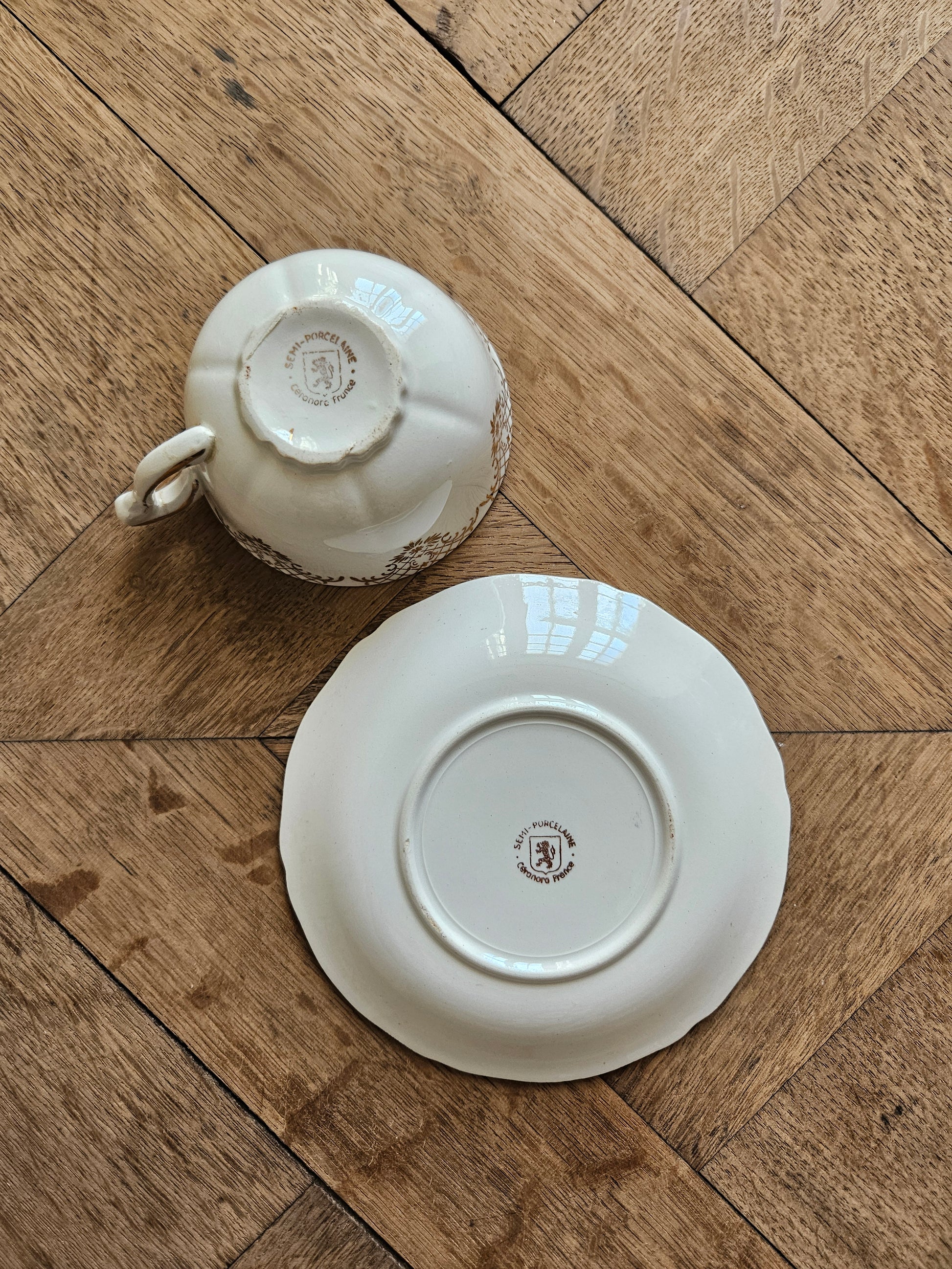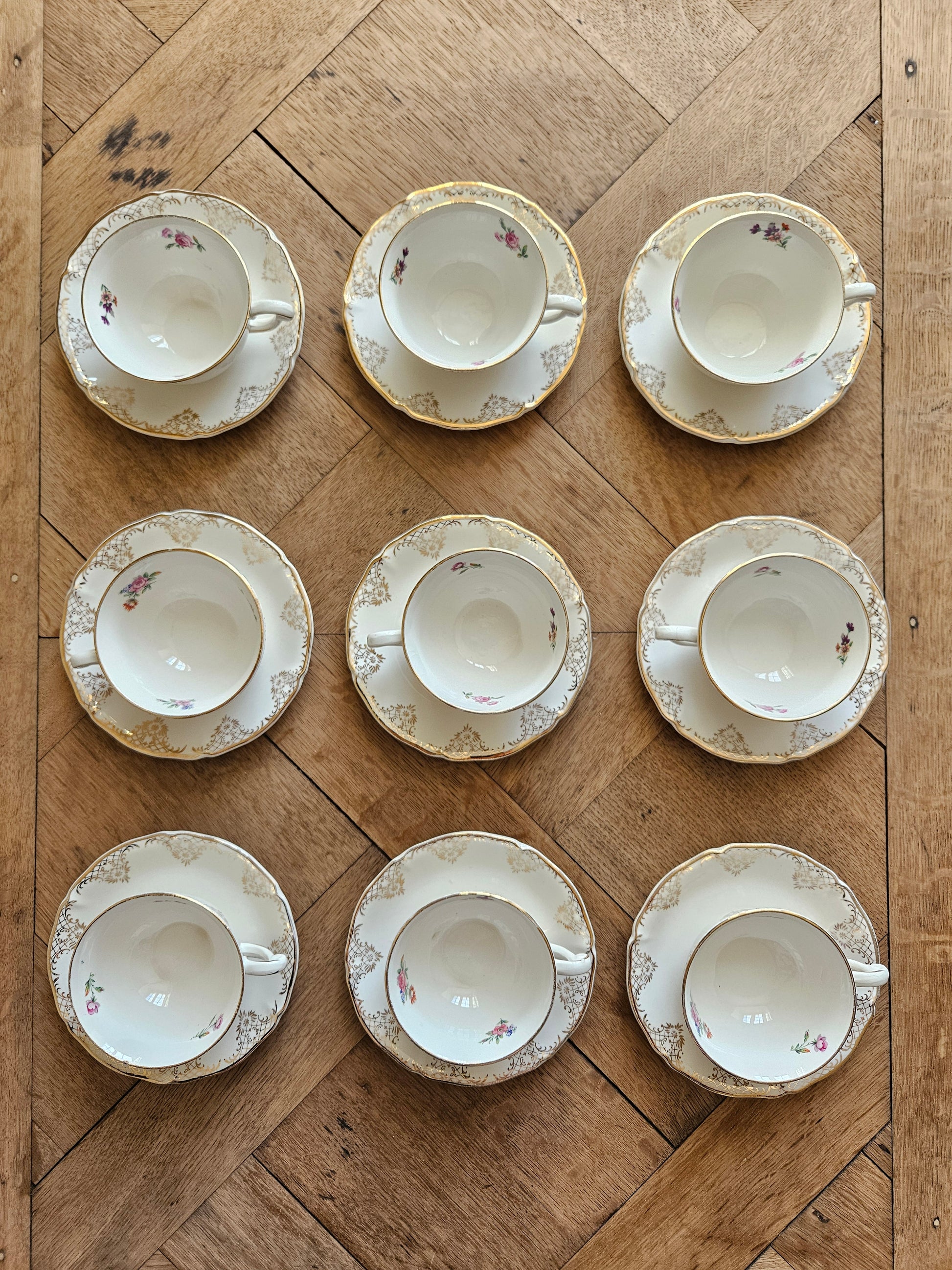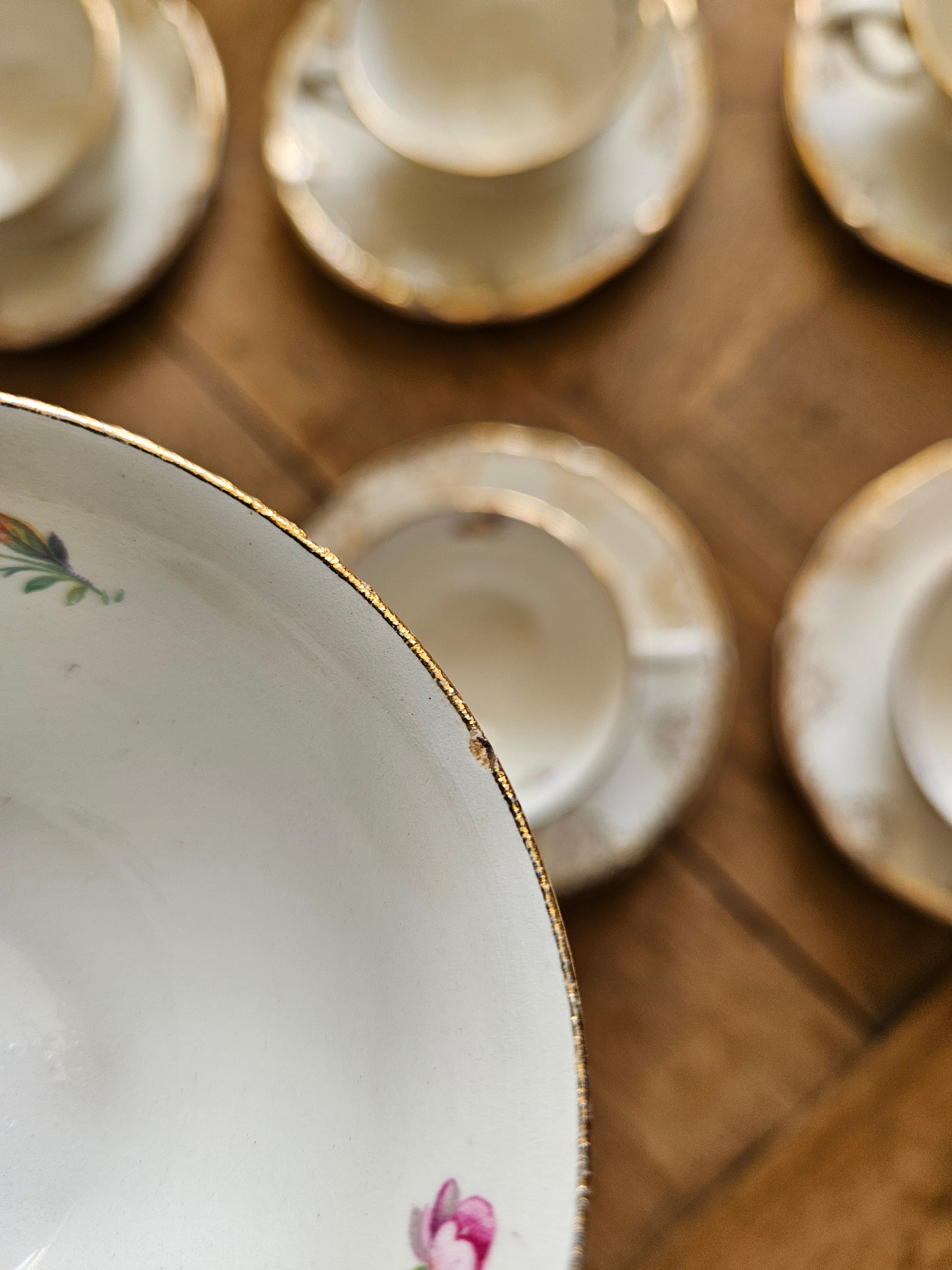 Semi-porcelaine. Bouquets de petites fleurs et dorure. Style shabby chic.