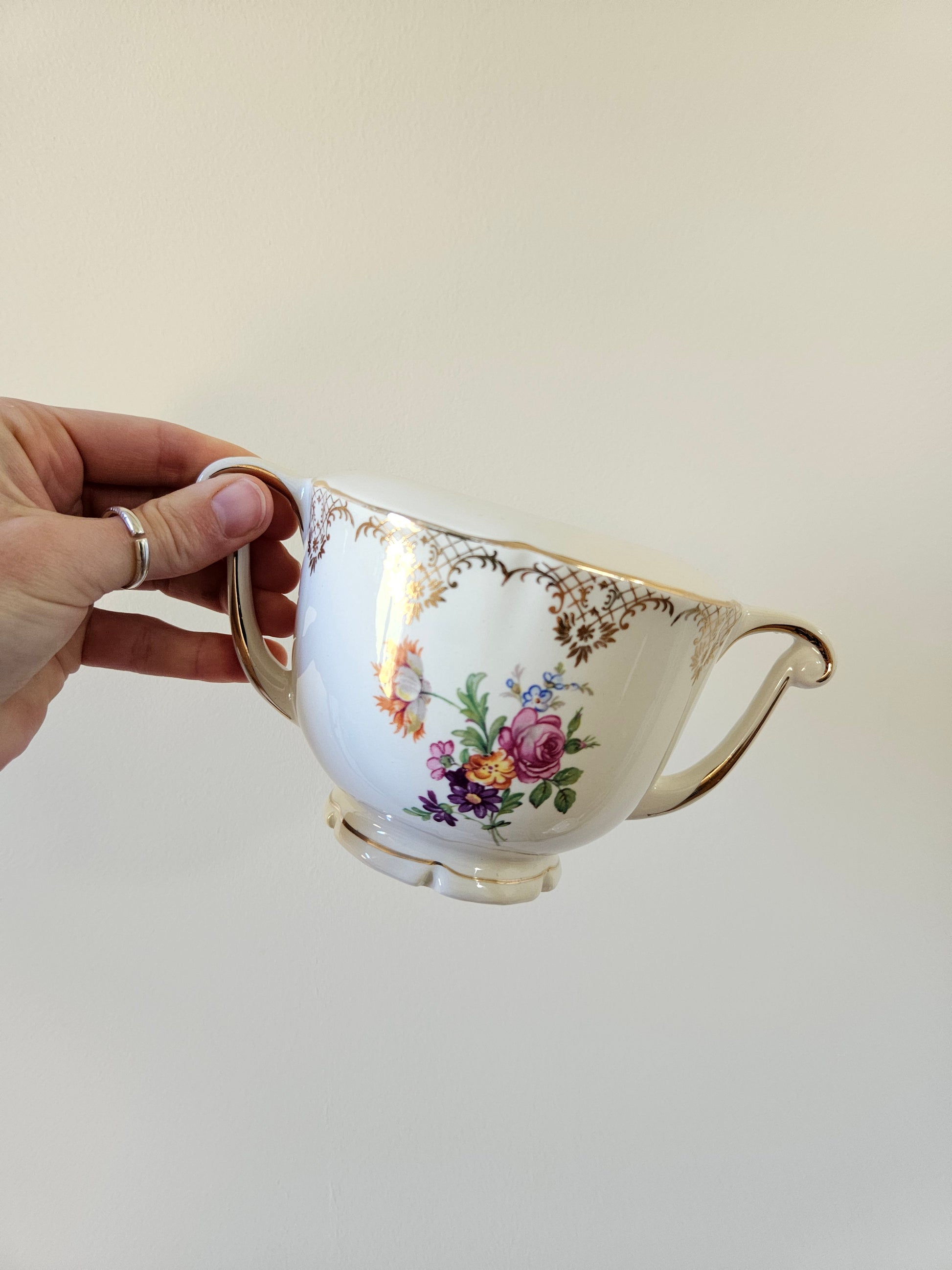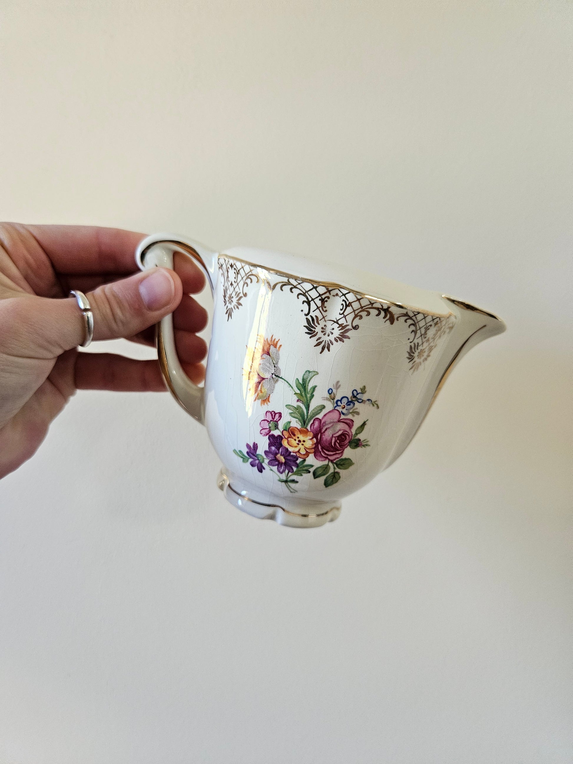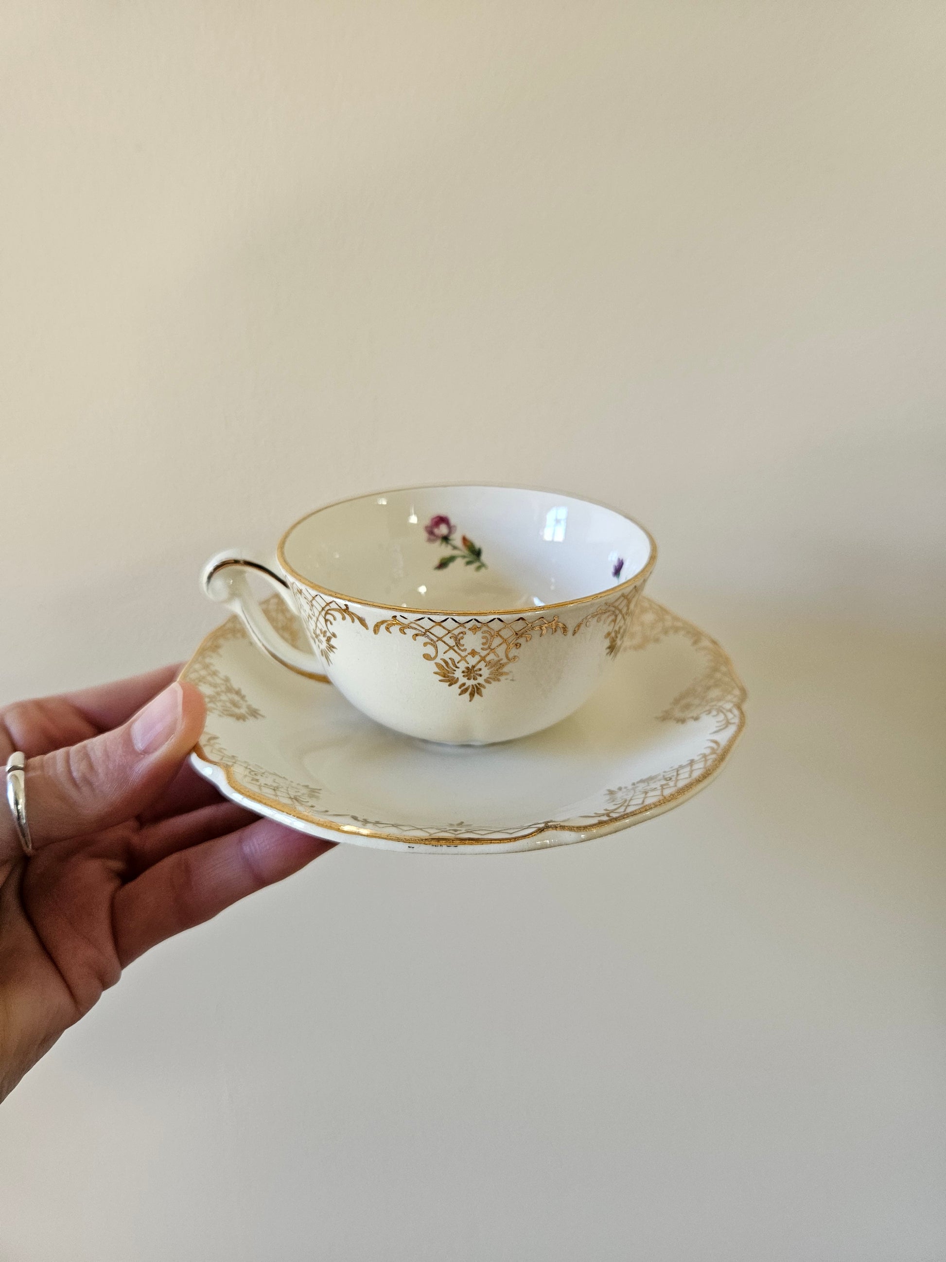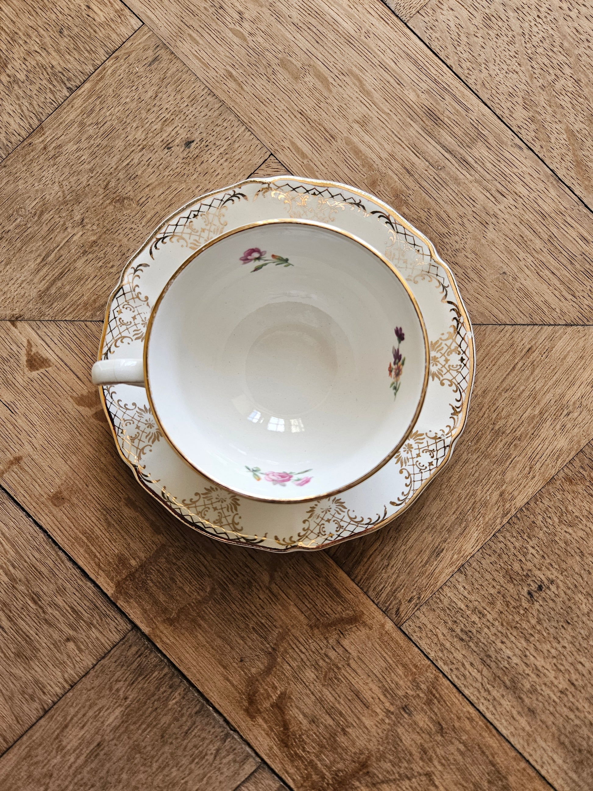 Semi-porcelaine. Bouquets de petites fleurs et dorure. Style shabby chic.