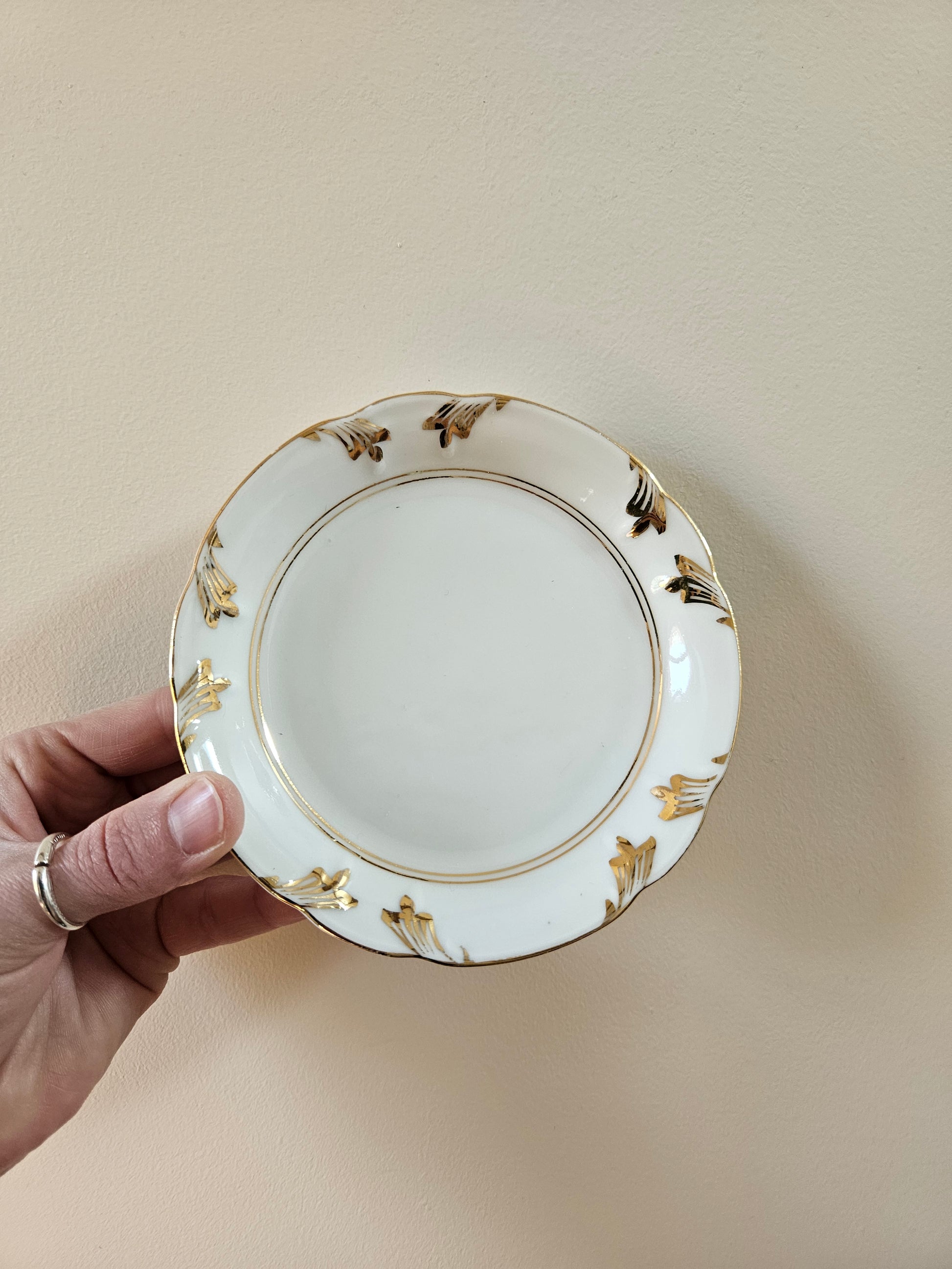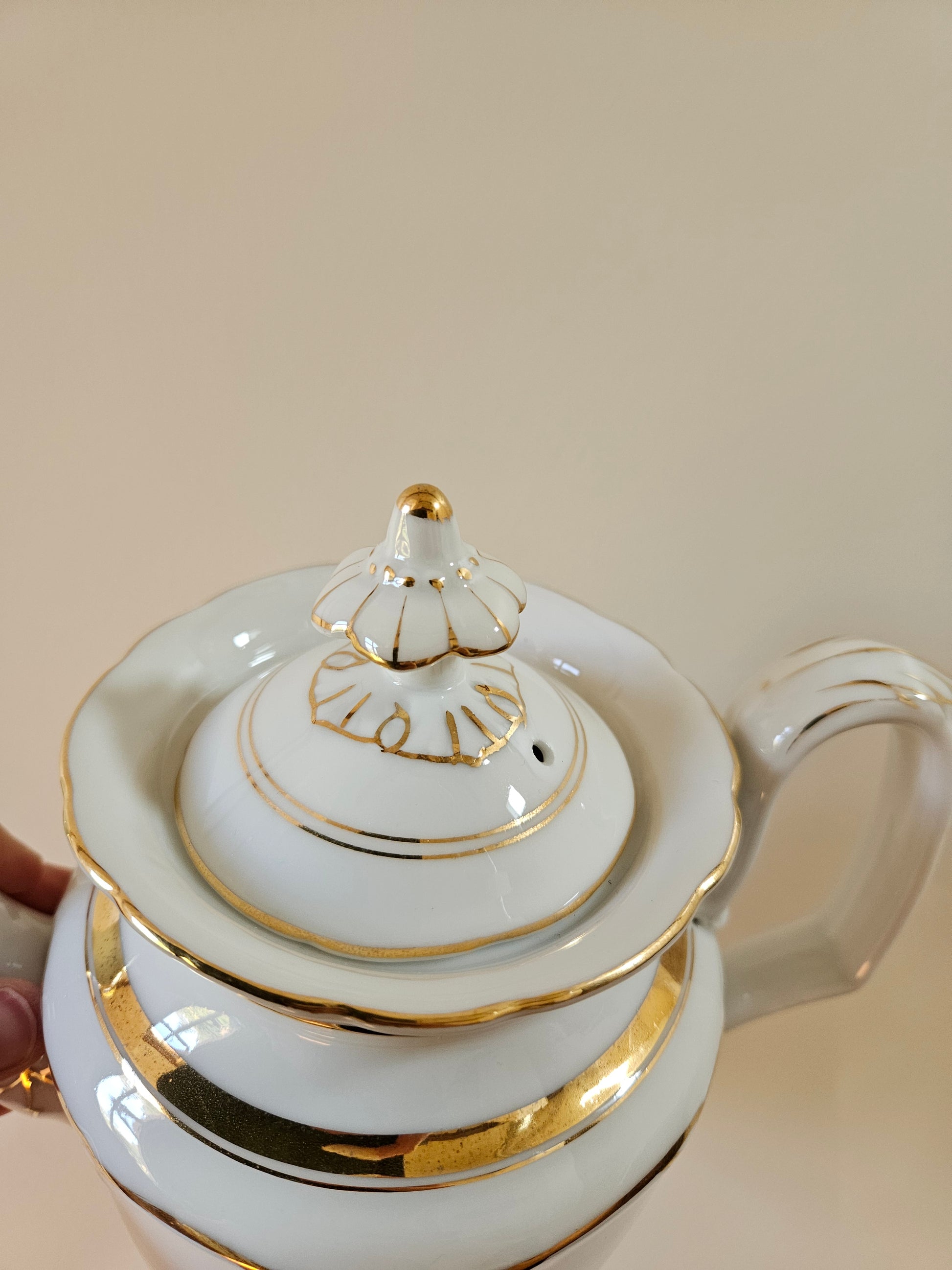 Service à thé / café vintage en porcelaine. Décor blanc et doré.