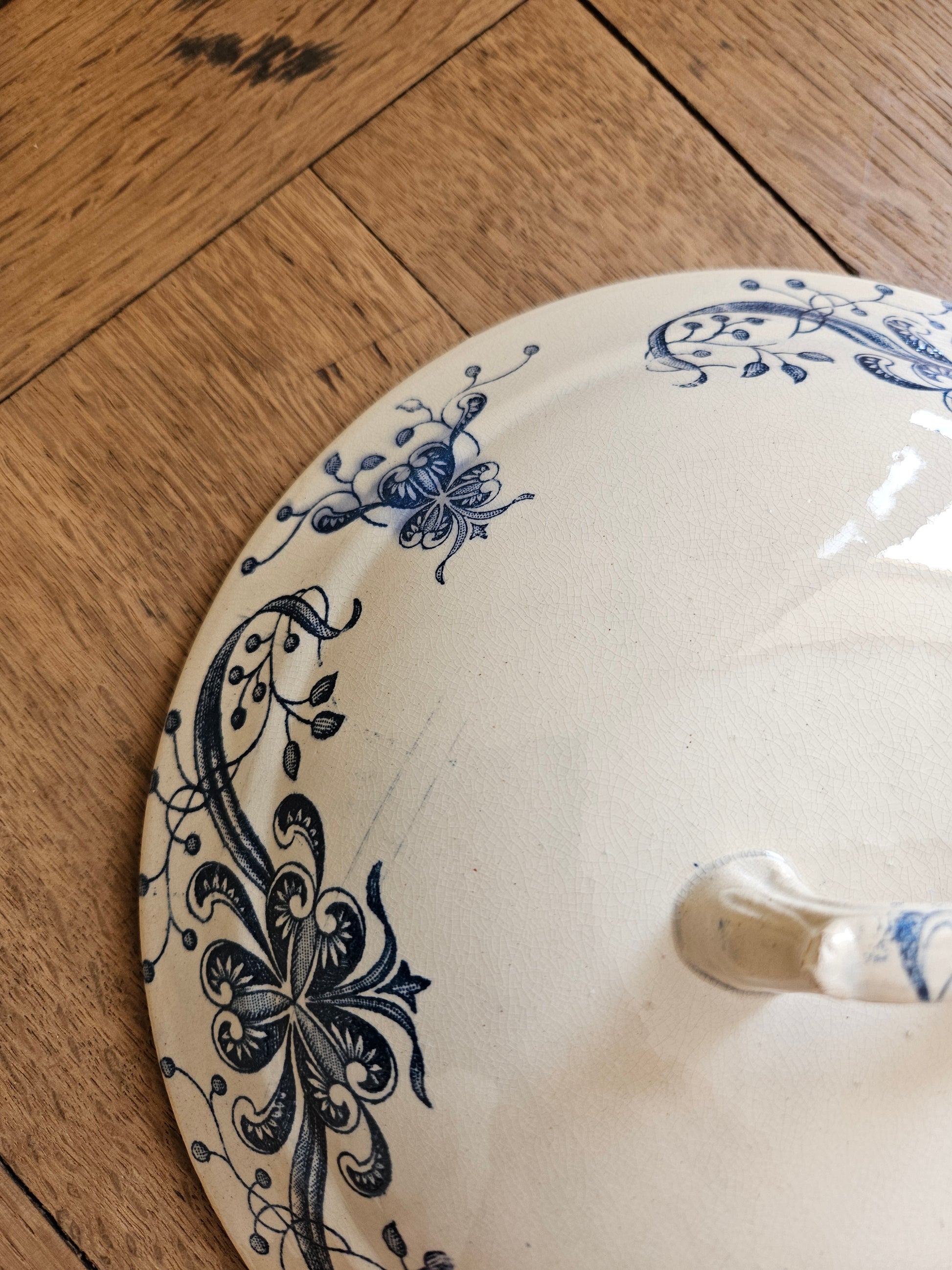 Soupière ancienne de la Faïencerie de Lyon, modèle Joconde.