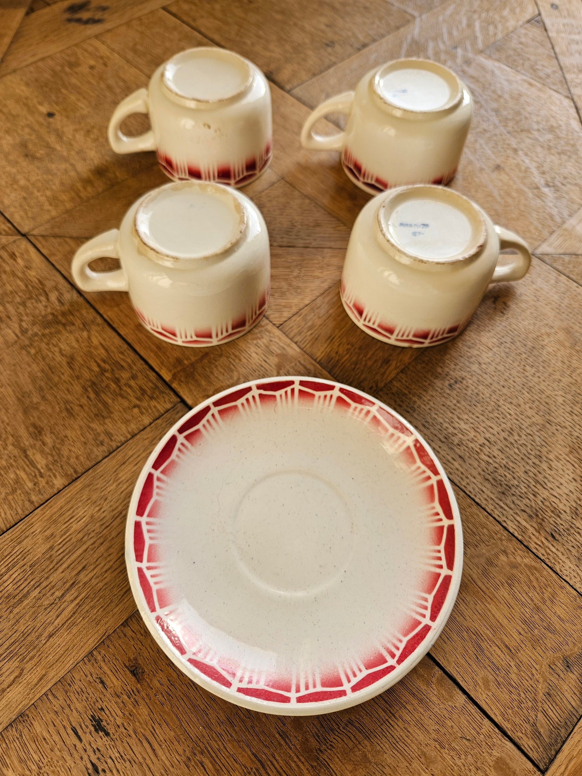 Lot de 4 tasses et 1 sous-tasse St Amand (non estampillées).