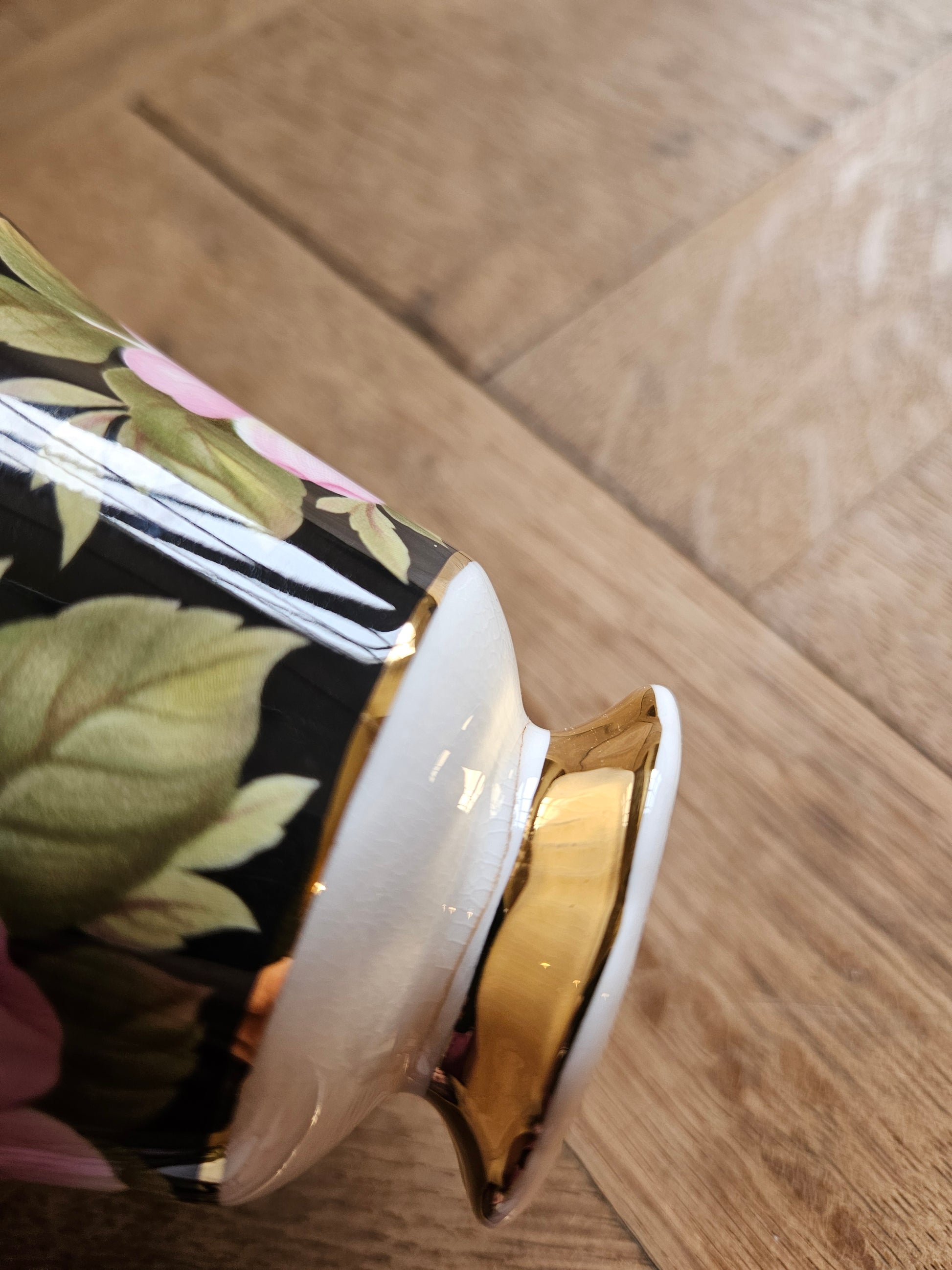 Porcelaine au décor fleuri et dorure.