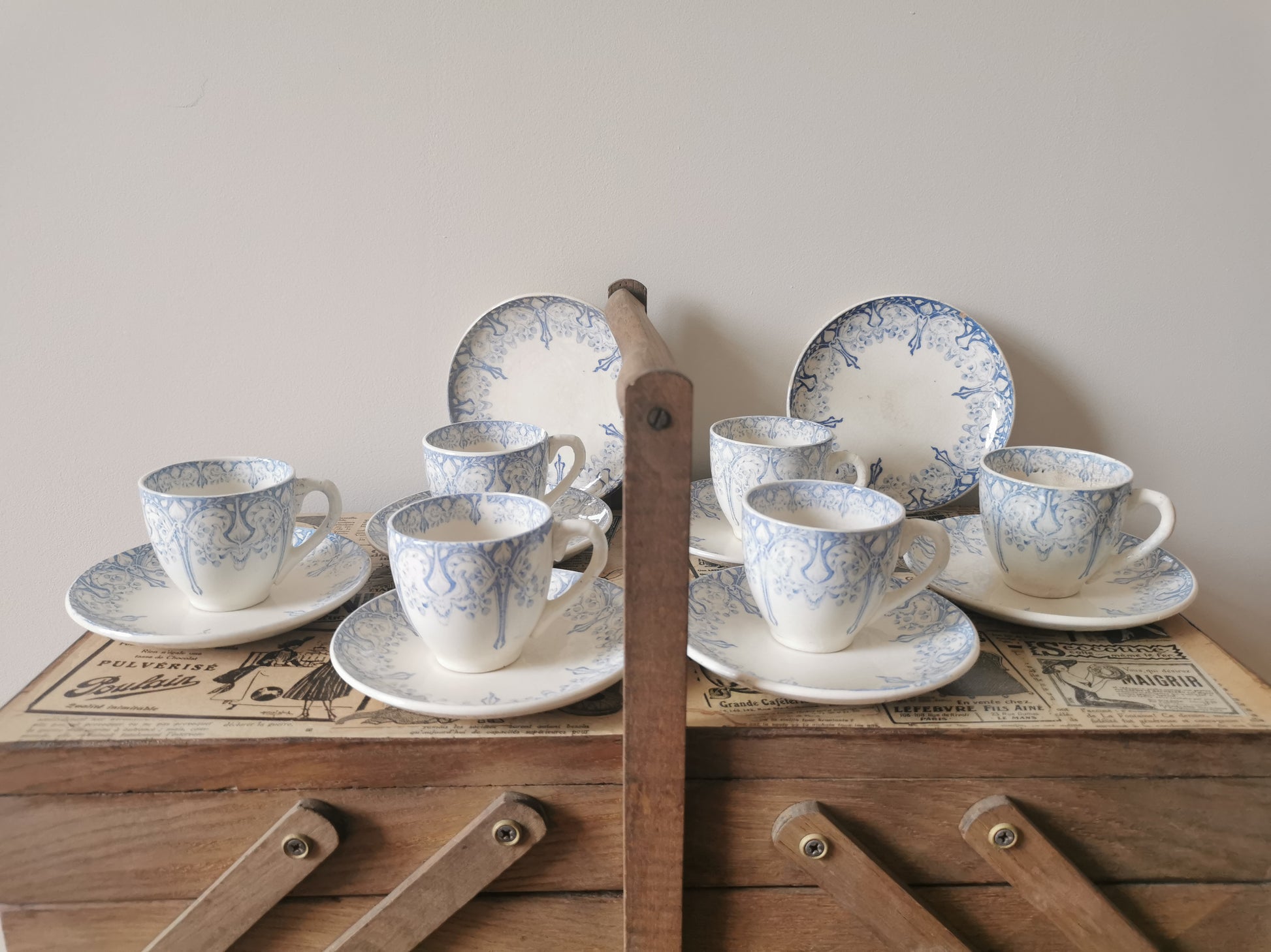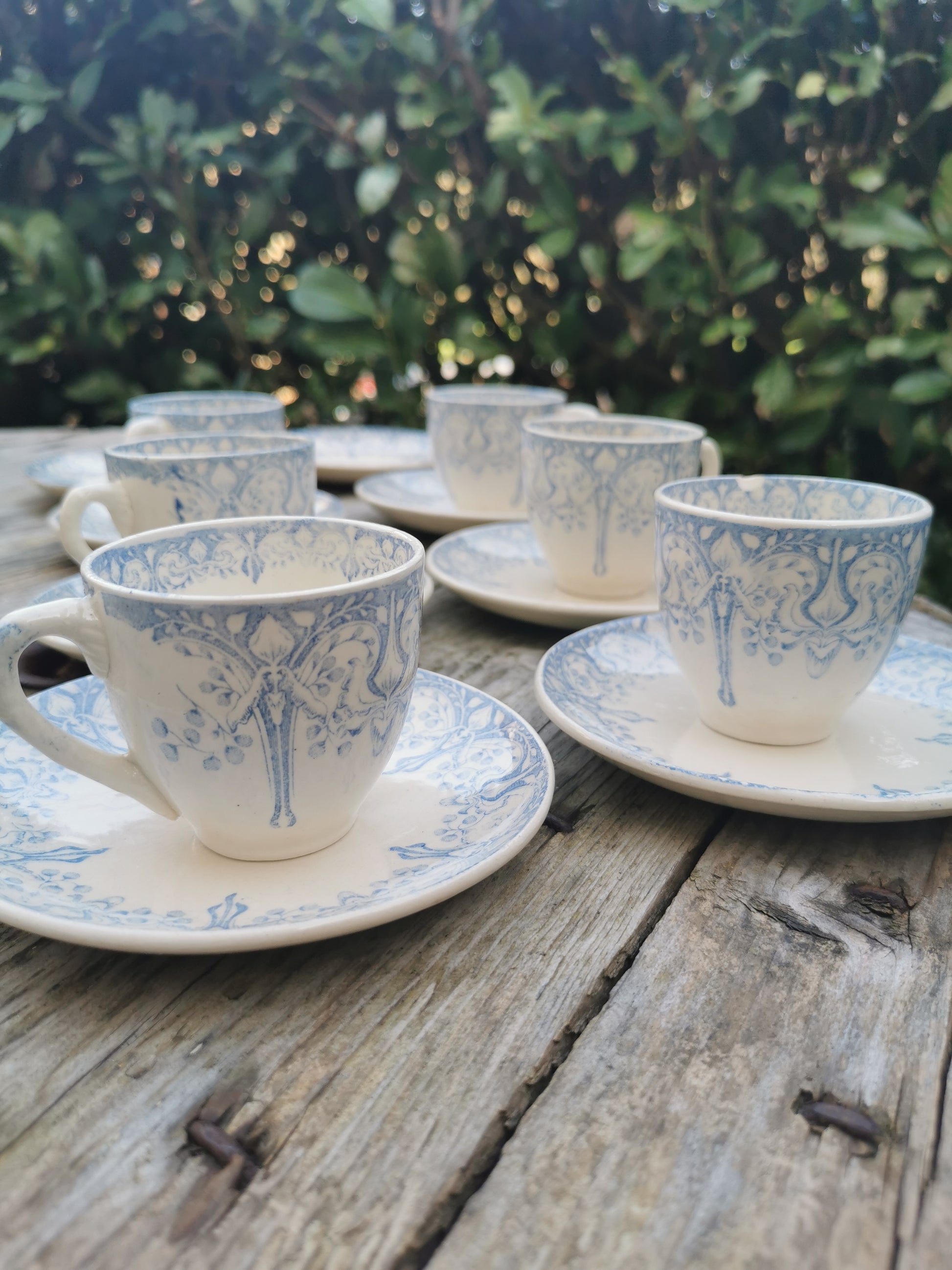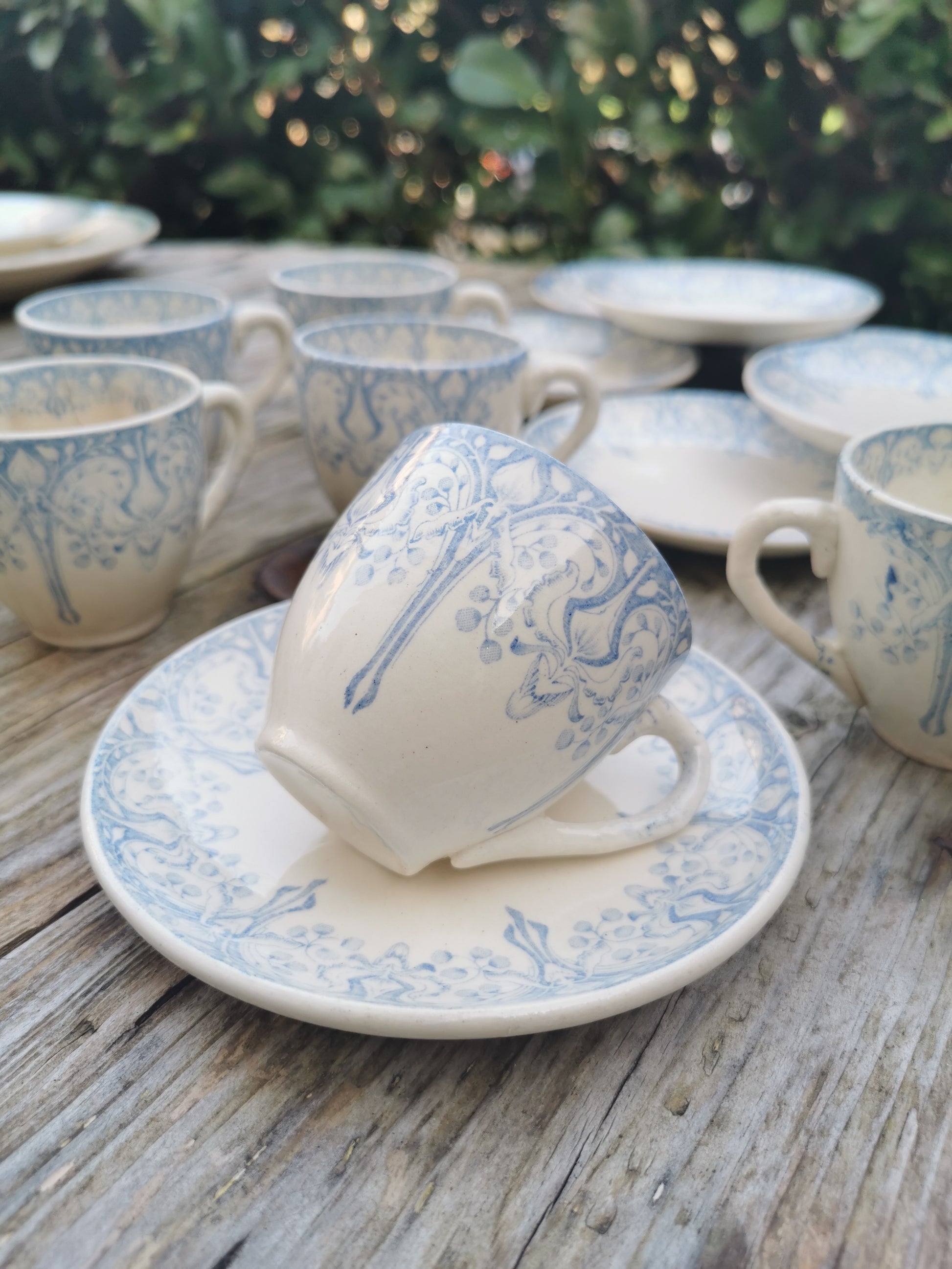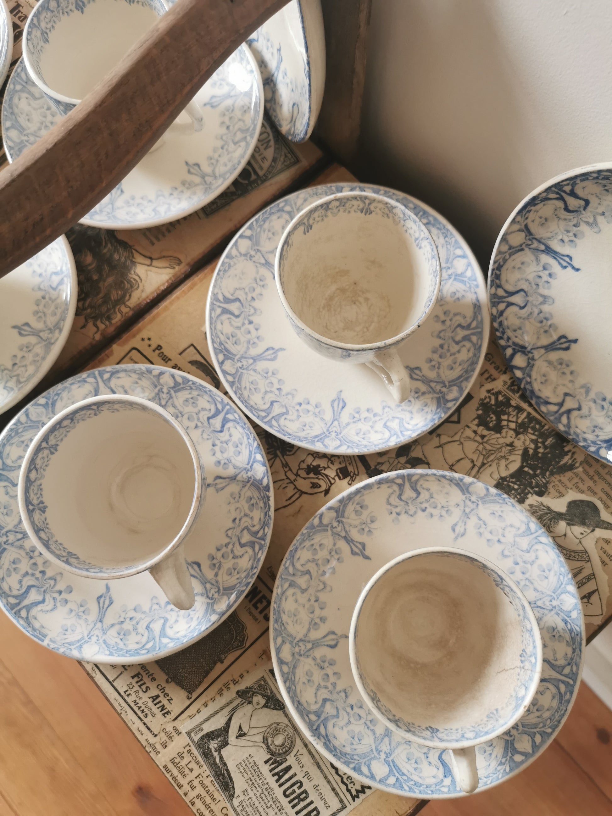 Lot de 6 tasses et 8 sous-tasses anciennes en terre de fer.