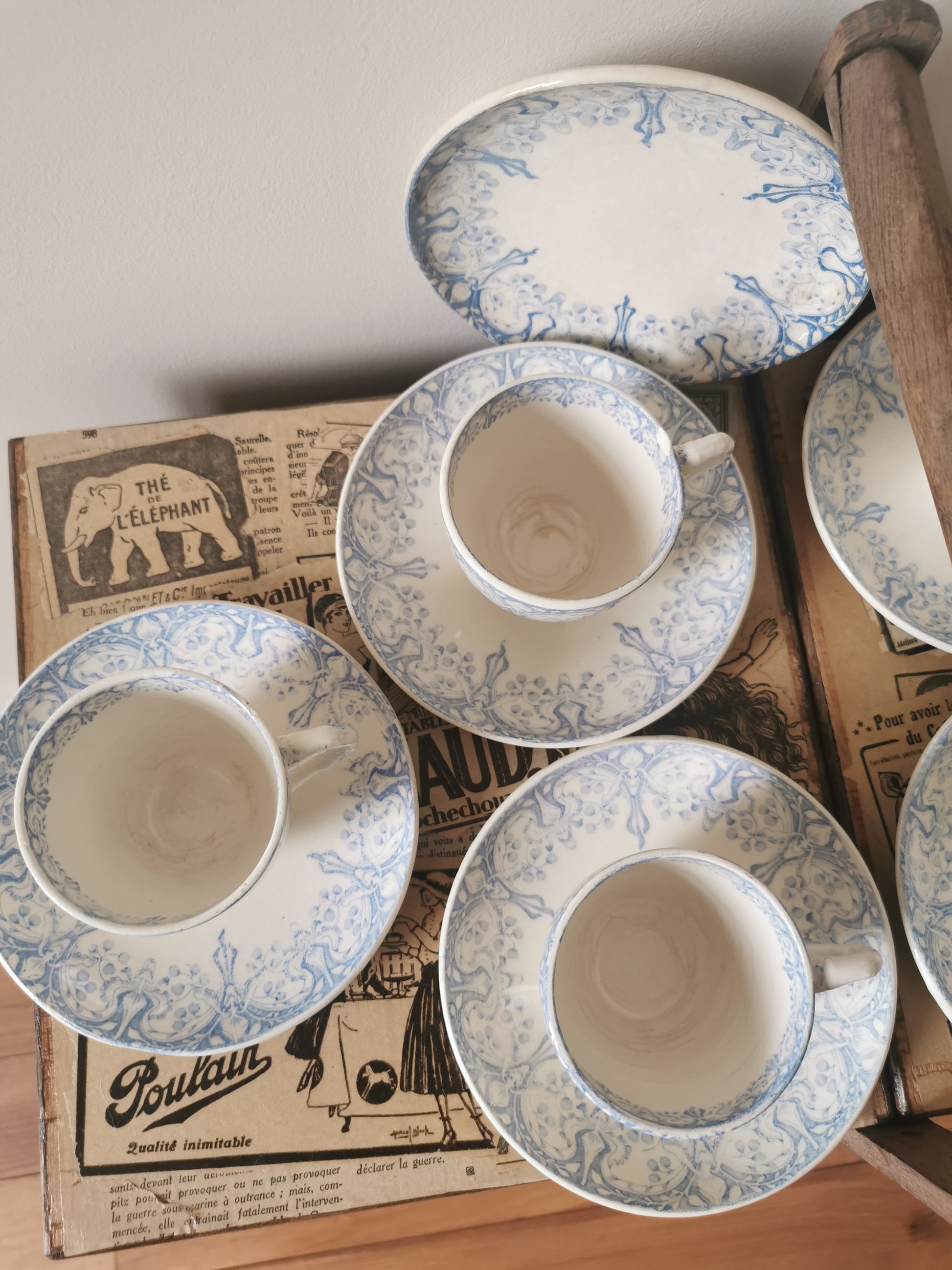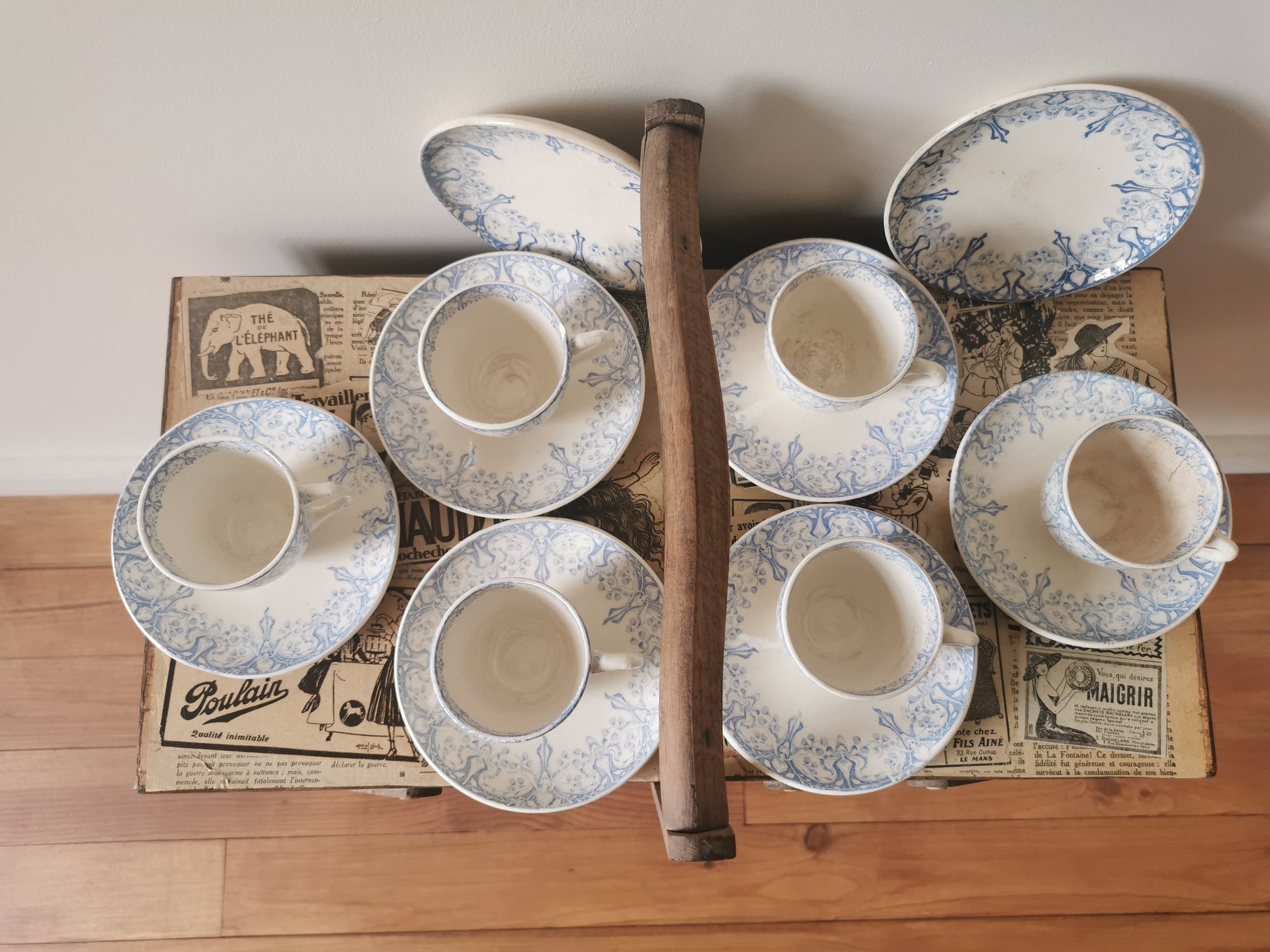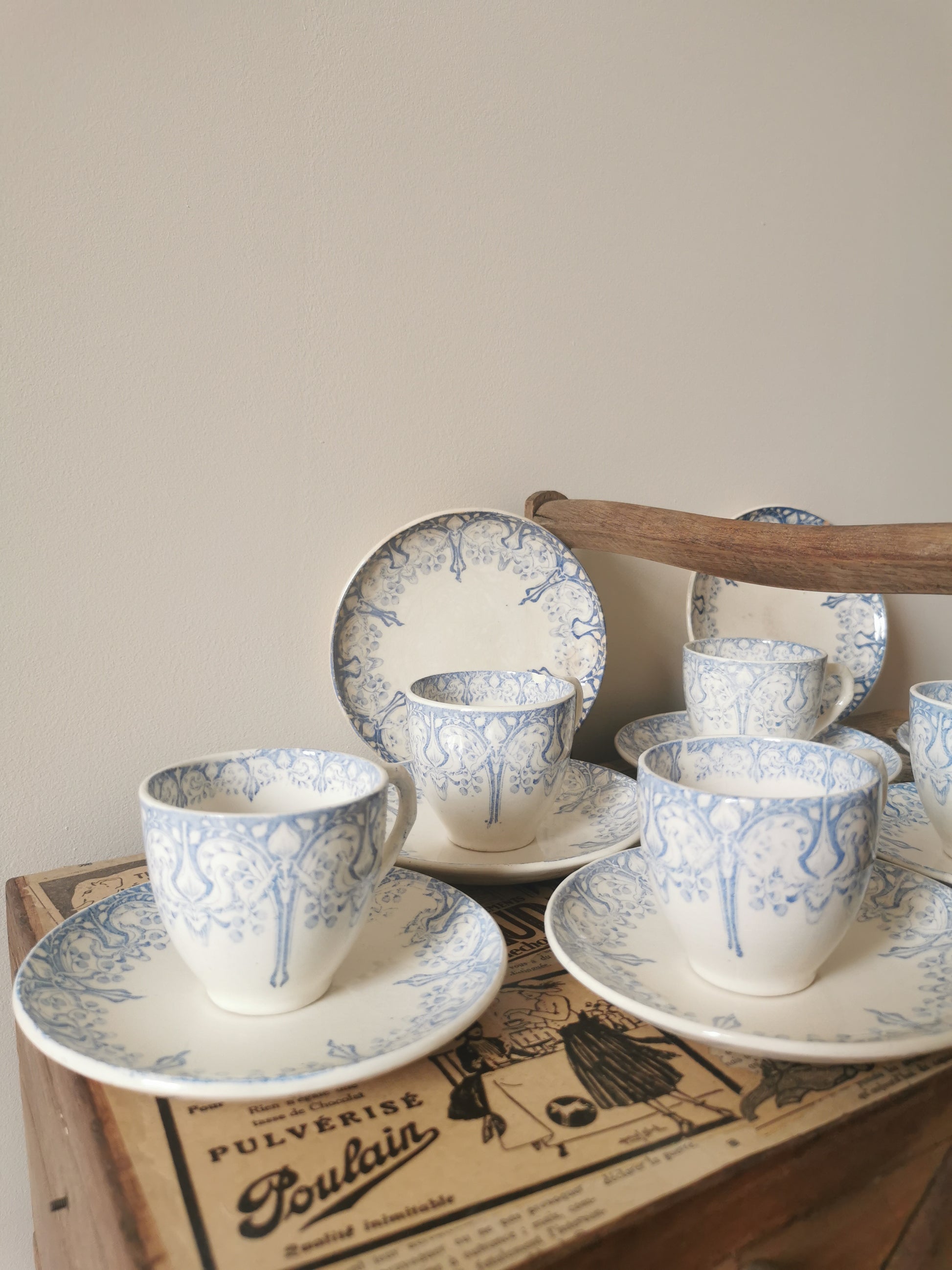 Lot de 6 tasses et 8 sous-tasses anciennes en terre de fer.