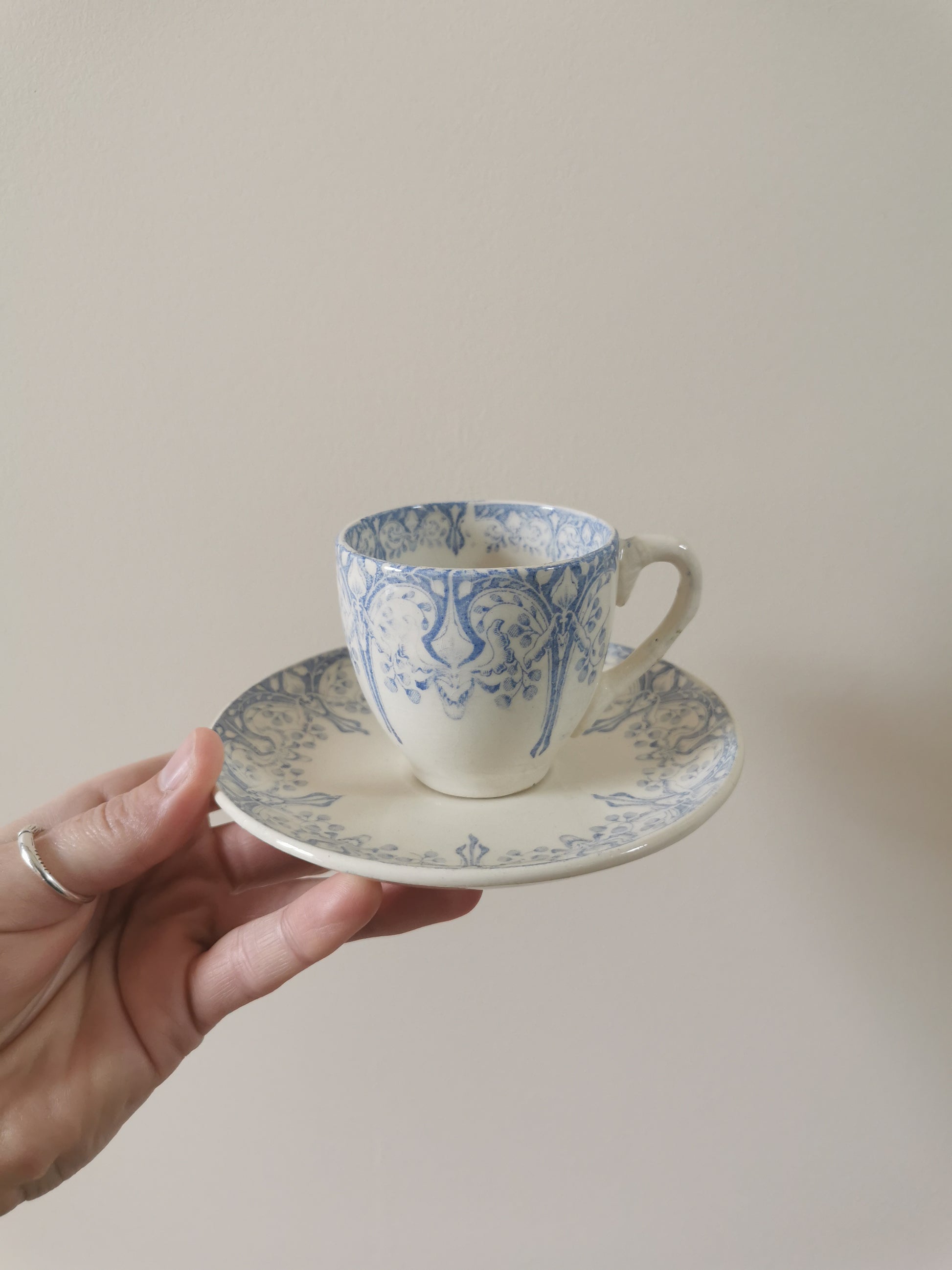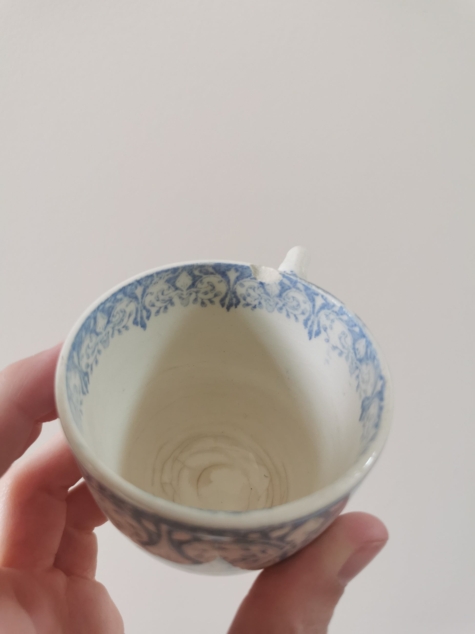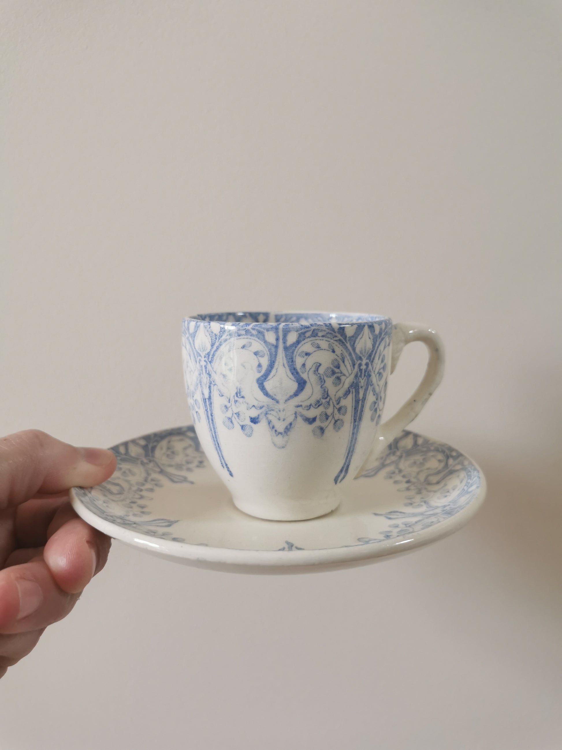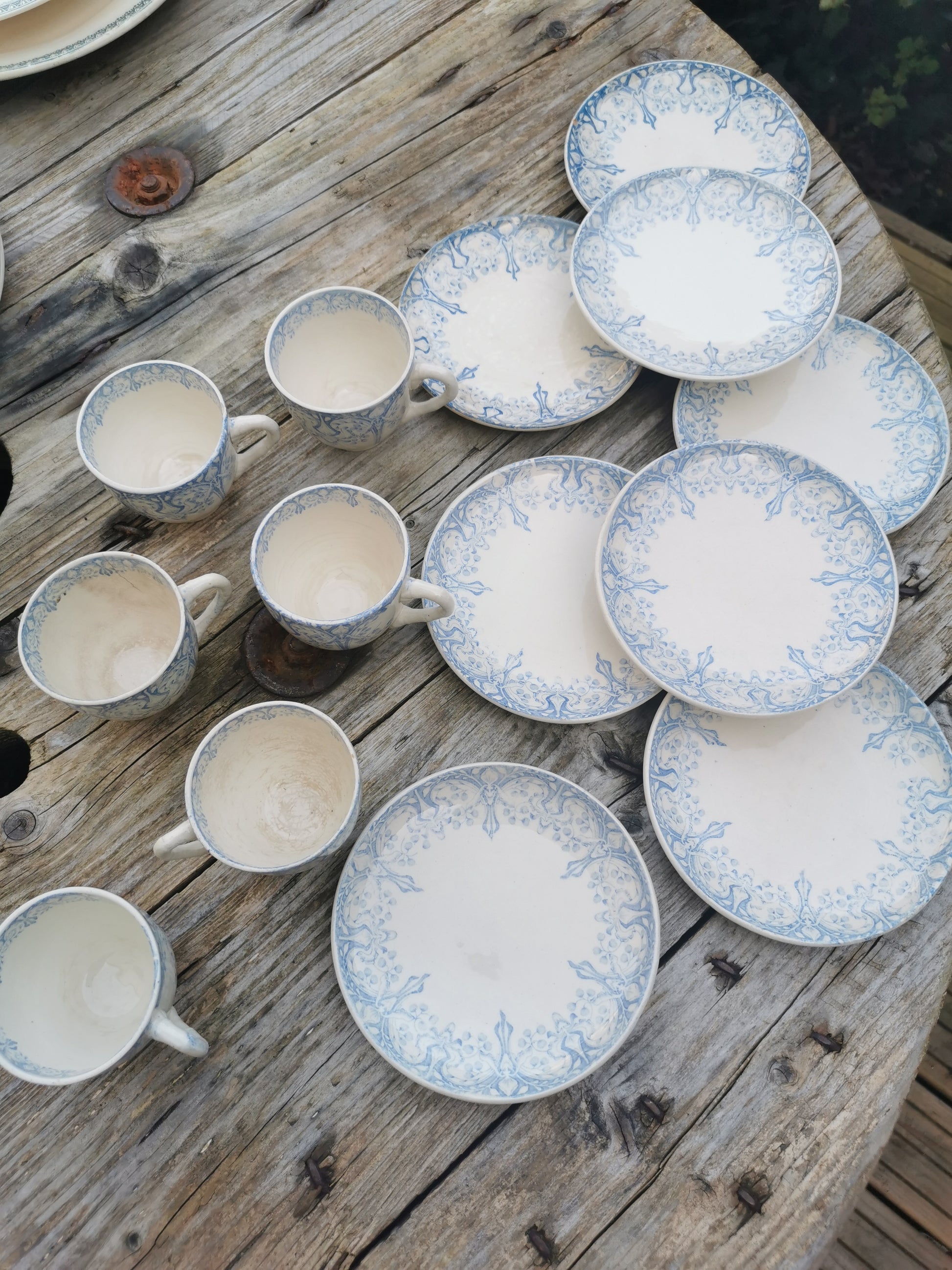 Lot de 6 tasses et 8 sous-tasses anciennes en terre de fer.