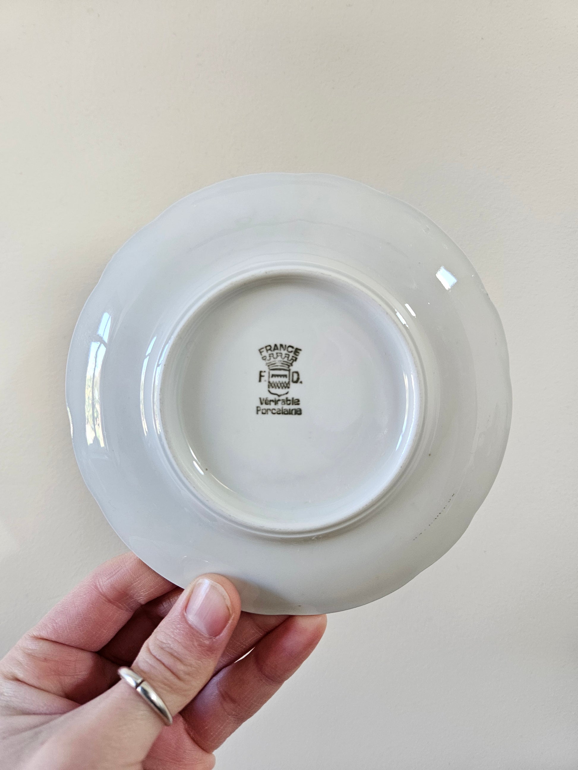 Lot de 6 tasses / sous-tasses et pot à lait vintage en porcelaine F.D.